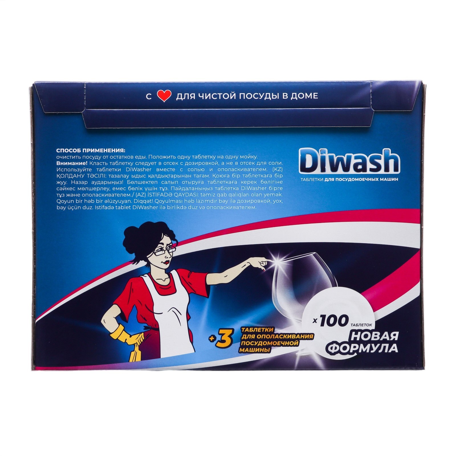 Таблетки для посудомоечных машин diwash, 100 шт.. Средство для мытья посуды в посудомоечных машинах в таблетках. Удаляет сложные и засохшие загрязнения посуды, в том числе пятна крахмала и жира. Отлично очищает посуду и столовые приборы, придавая им блеск. Защищает от накипи и коррозии. Способ применения: очистить посуду от остатков пищи. Положить таблетку на одну мойку. Внимание! Класть таблетку следует в отсек с дозировкой, а не в отсек для соли. Используйте таблетки вместе с солью и ополаскивателем. Меры предосторожности: хранить вдали от пищевых продуктов, в недоступном для детей месте. Хранить в сухом прохладном месте, при температуре не выше 35 С и относительной влажности воздуха не более 95%, предохранять от воздействия прямых солнечных лучей. По истечении срока годности таблетки утилизируют как бытовой отход. Срок годности 2 года с даты изготовления. Состав: 5% кислородосодержащий отбеливатель, активатор таед, 5% неионогенные пав, фосфаты 5-15%, фосфонаты, силикаты, энзимы, поликарбоксилаты, ароматизатор, лимонен. В упаковке, шт.: 100 Ароматизированные: Нет Температурное ограничение: Нет  развернуть описание ▼