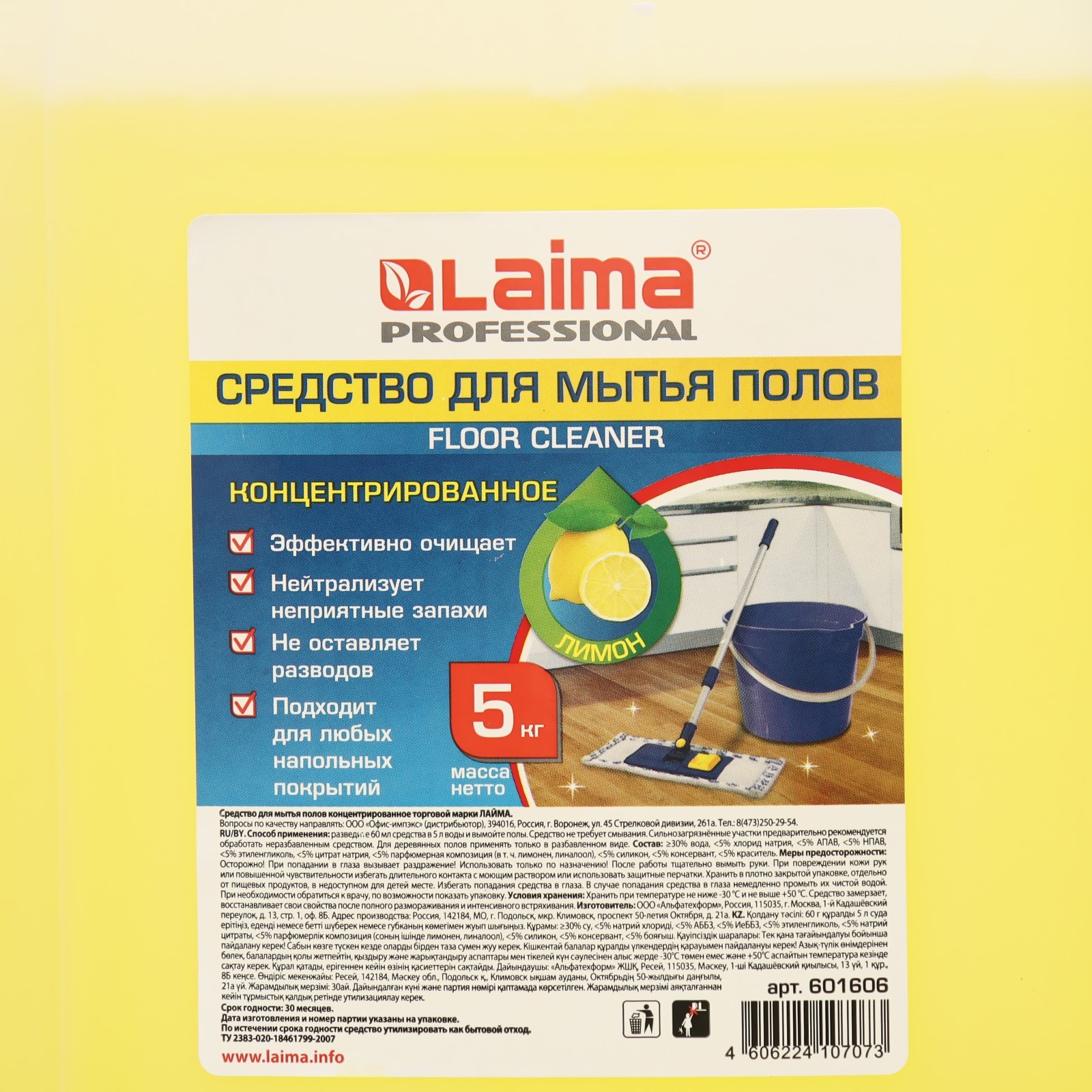 Средство для мытья пола Laima Professional "лимон", концентрат, 5 кг