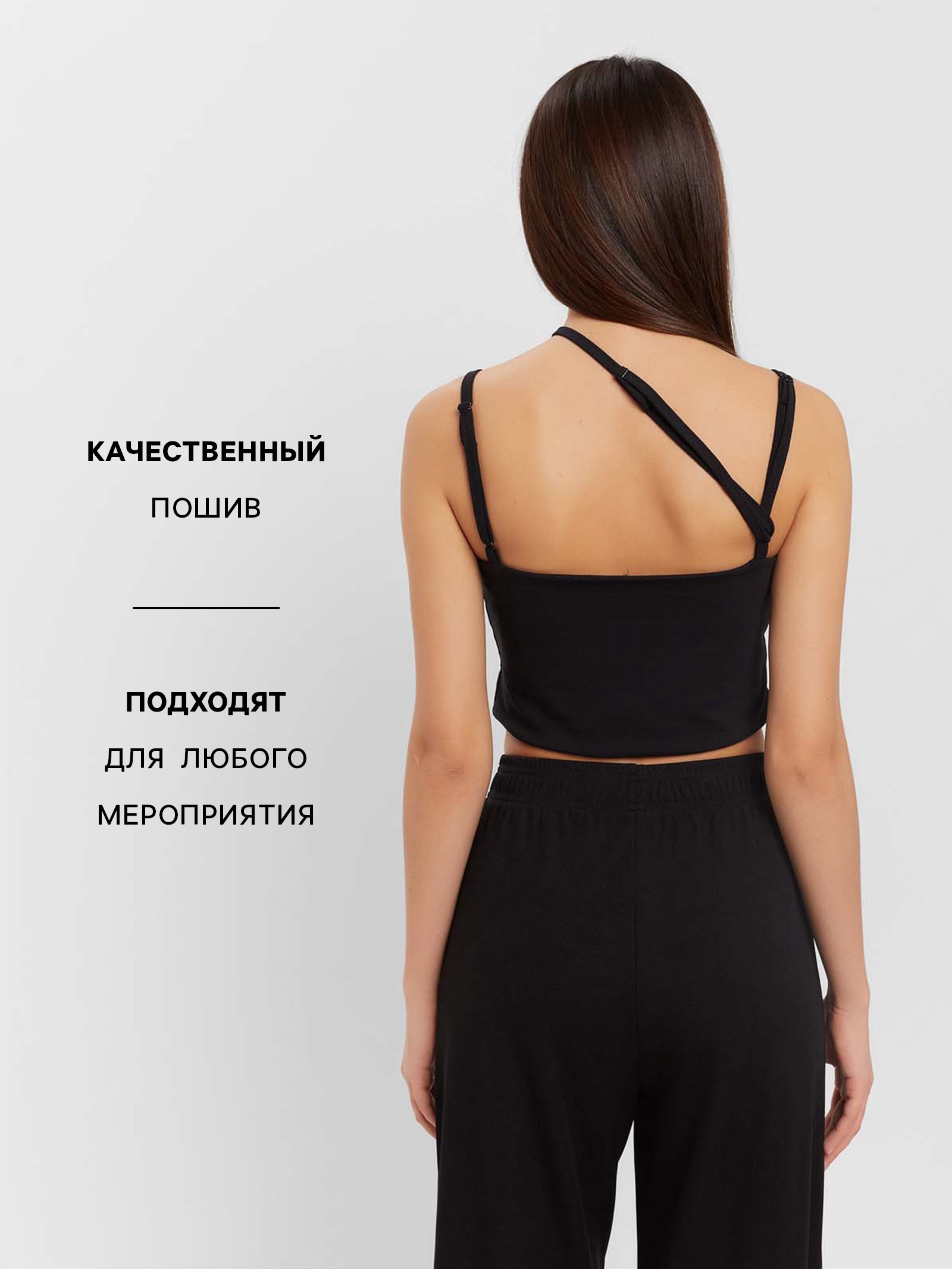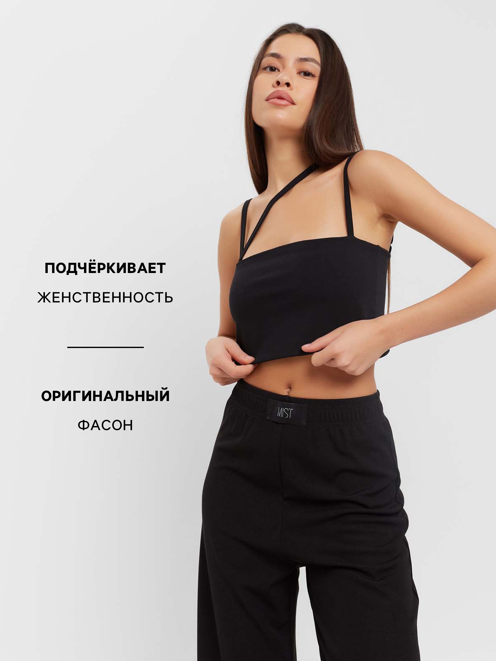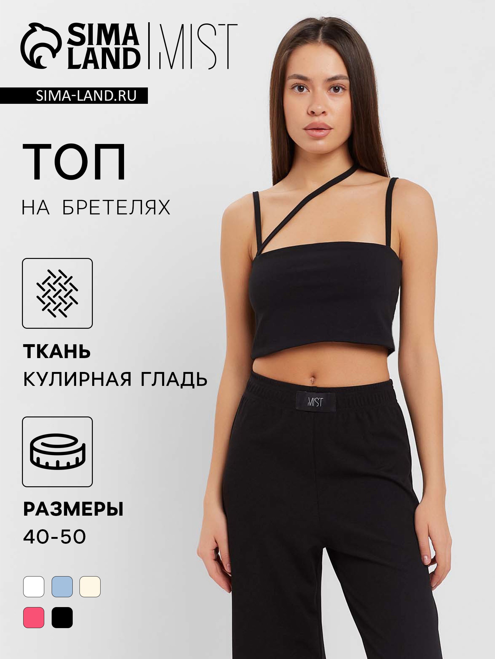 Топ на бретелях женский mist, размер 40-42, чёрный. Цвет:Чёрный|Для кого:Для женщины|Назначение:Повседневная|Ткань:Кулирная гладь|Размер:40|Размер:42|Рост, см:160 - 175|Сезон:Лето|Тематика:Однотонная|Вырез горловины:Бандо|Декоративные элементы:Бретелька|Покрой:Облегающий|Рекомендации по уходу:Стирка при 30 °С|Рекомендации по уходу:Не отбеливать|Рекомендации по уходу:Бережный режим глажки|Вид :Однотонная|Состав ткани:Лайкра|Состав ткани:Хлопок|Длина изделия по спинке, см:18.5|Обхват груди, см:76|Вид бретелей:Тонкие|Страна:Россия  развернуть описание ▼