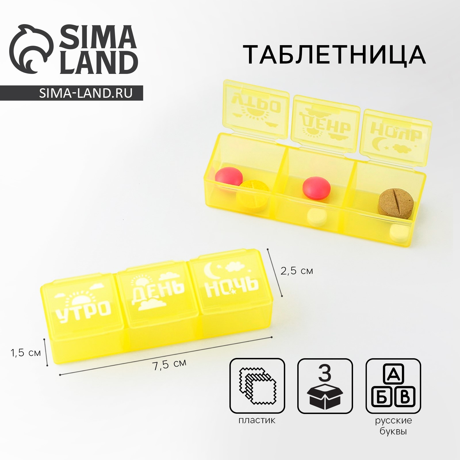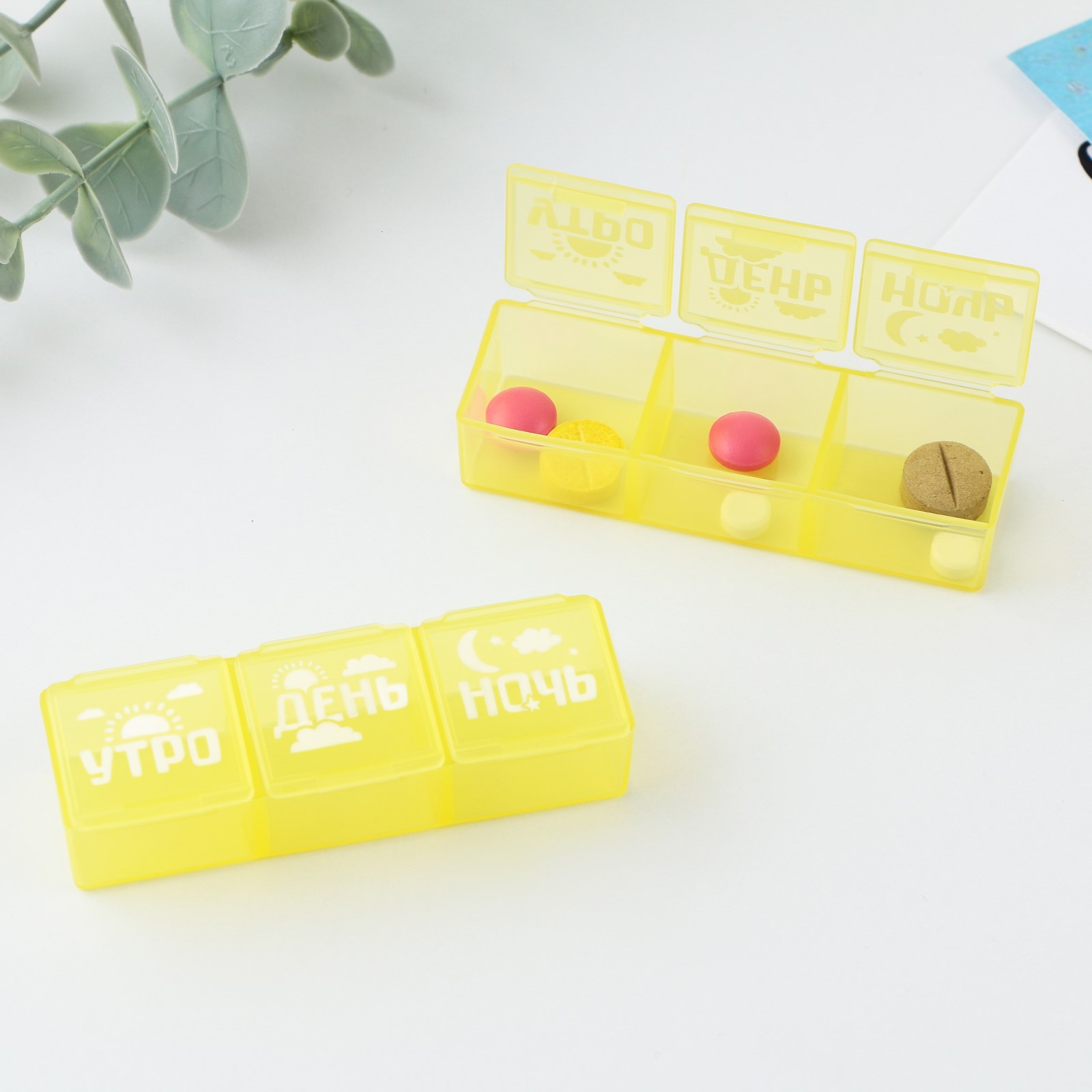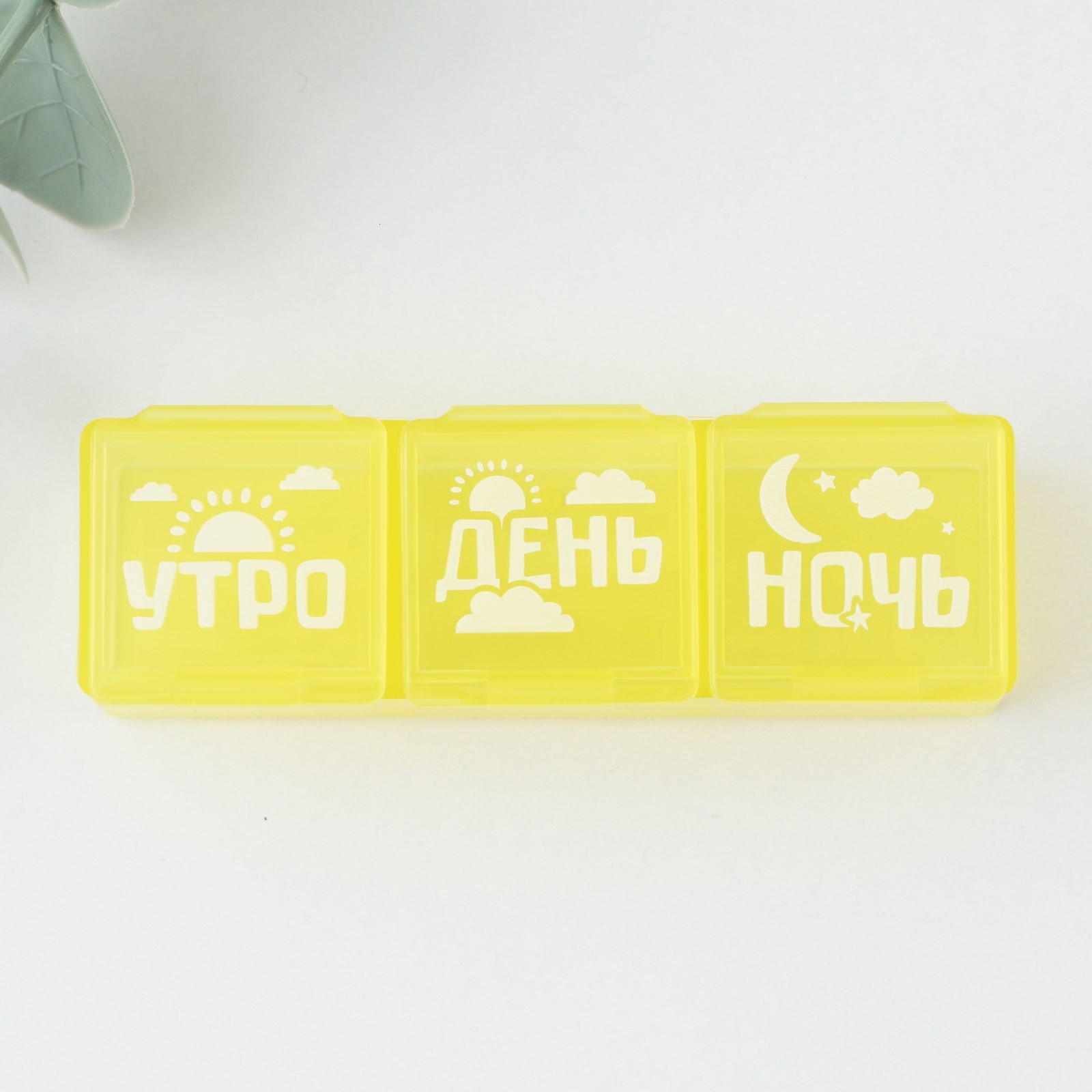 Таблетница «утро, день, ночь», 3 секции, 7,3 см X 1,5 см, жёлтая