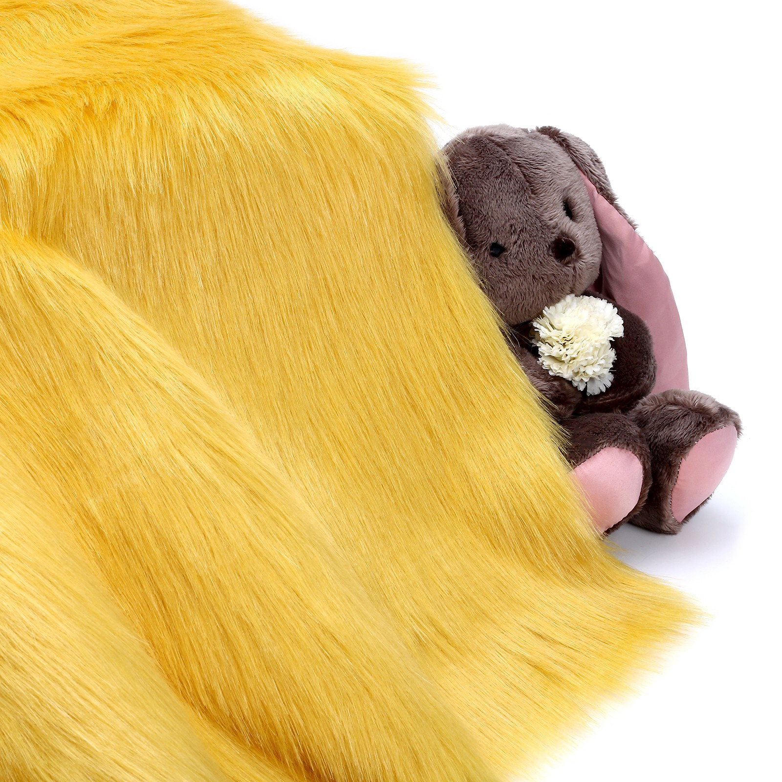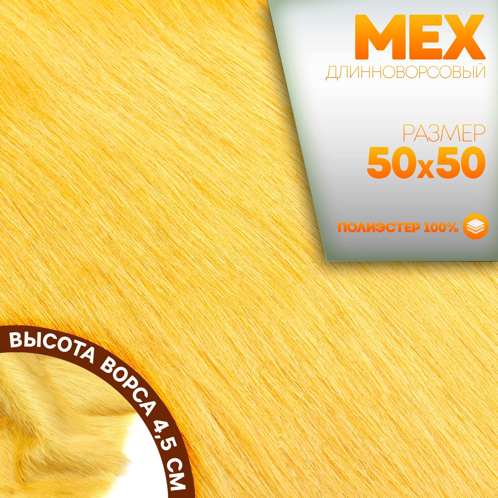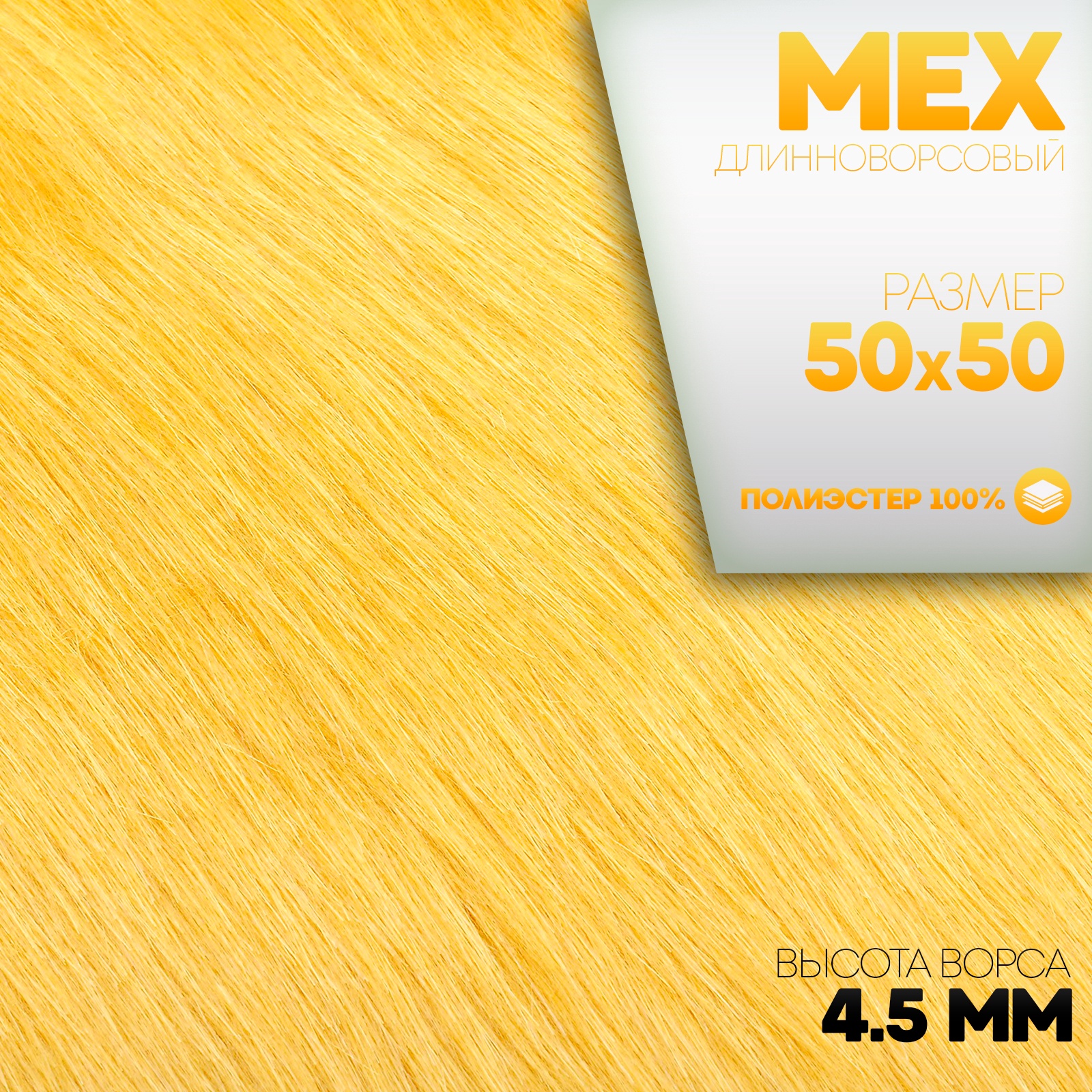 Ткань для рукоделия, мех длинноворсовый на трикотажной основе, желтая, лоскут 50 50 см
