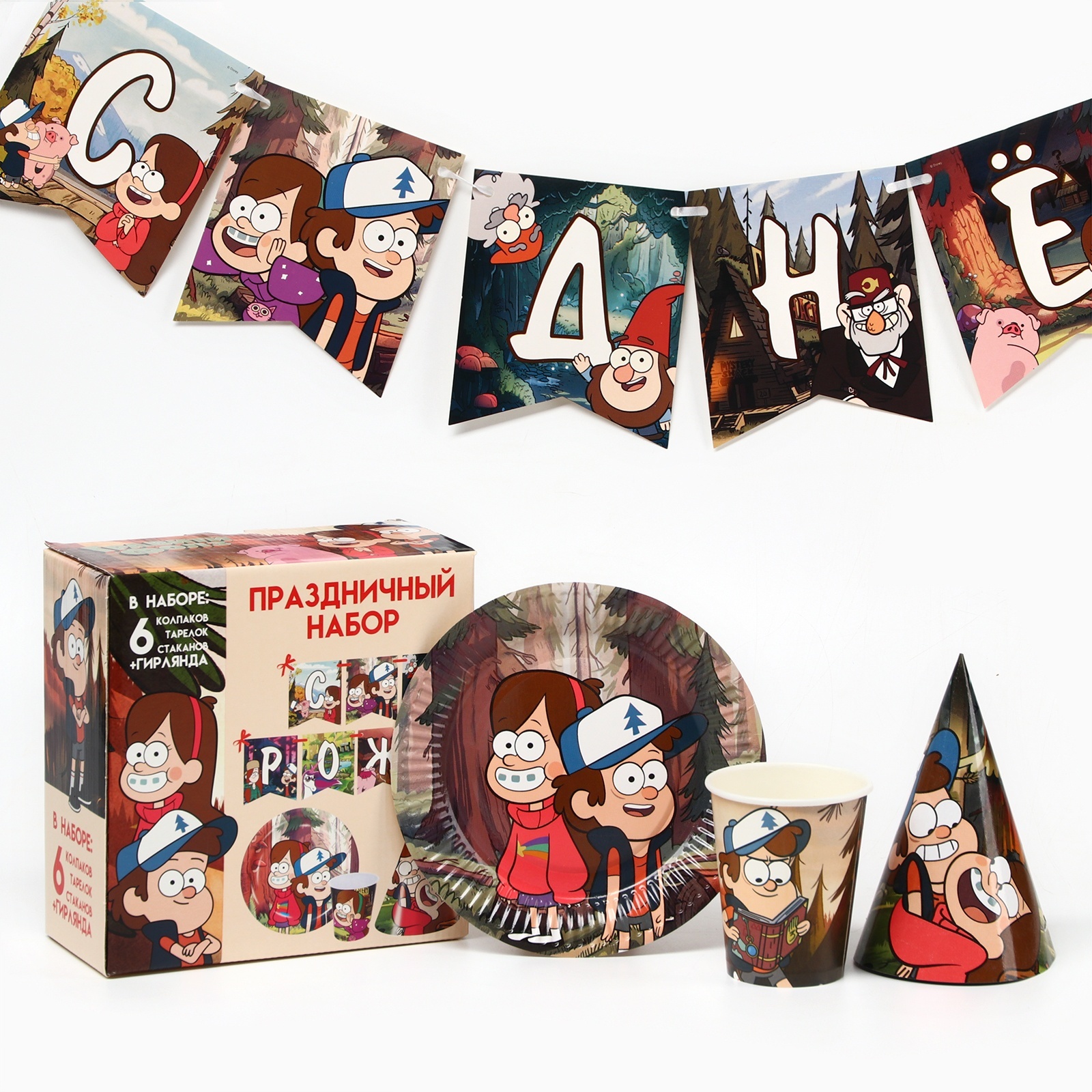 Набор бумажной посуды, на 6 персон "с днем рождения", гравити фолз