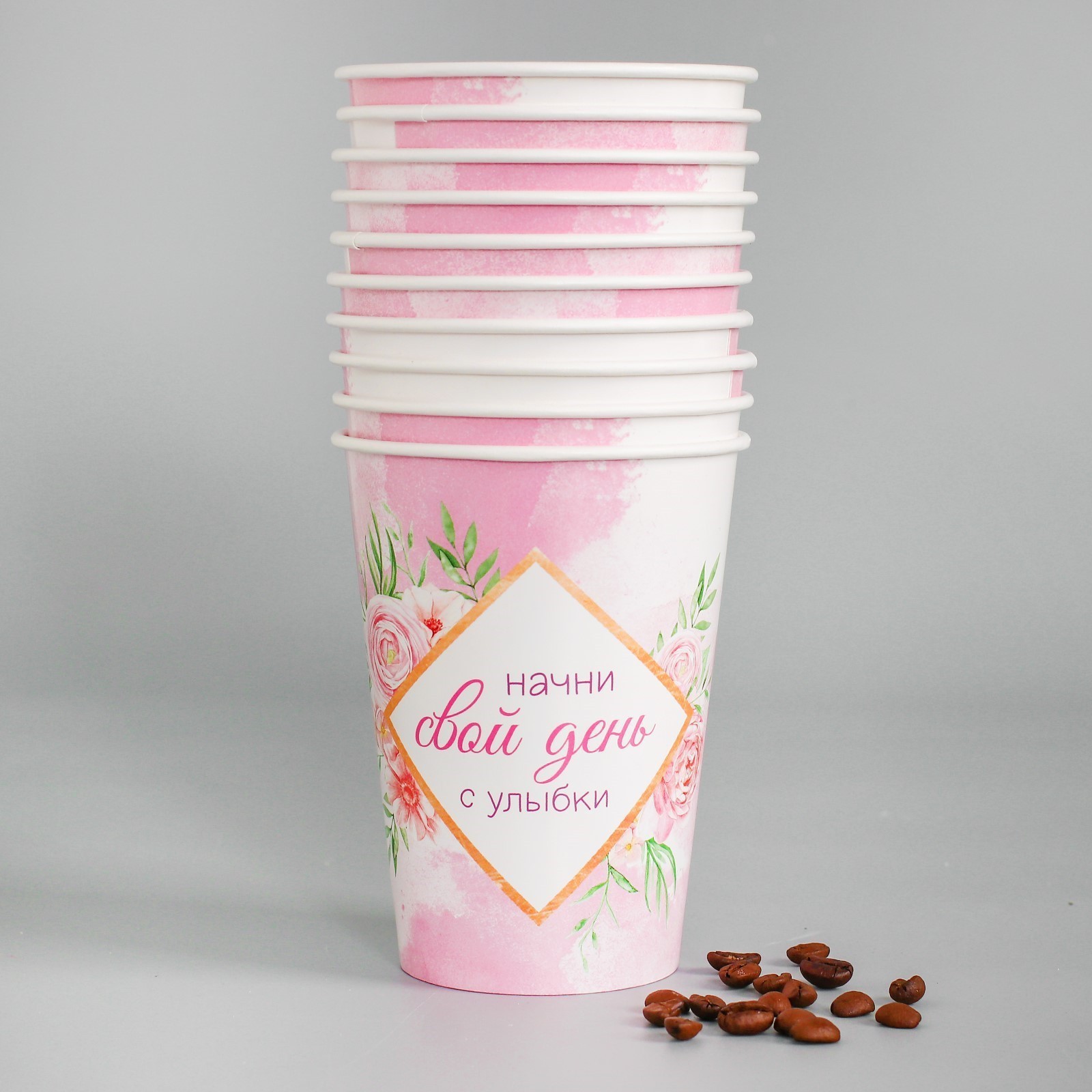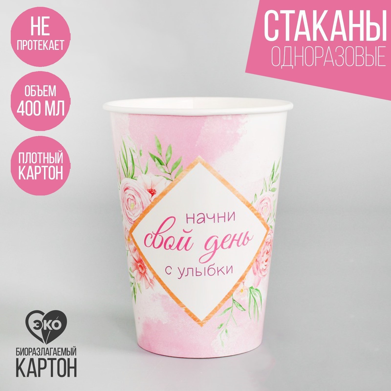 Стакан одноразовый бумажный для кофе "мотивация", 400 мл.    Цвет: Белый Цвет: Розовый Диаметр, см: 9 В наборе, шт.: 1 Количество слоёв: 1 Объём, мл: 400 Материал: Картон Вид: Стакан Температурное ограничение: Нет  развернуть описание ▼
