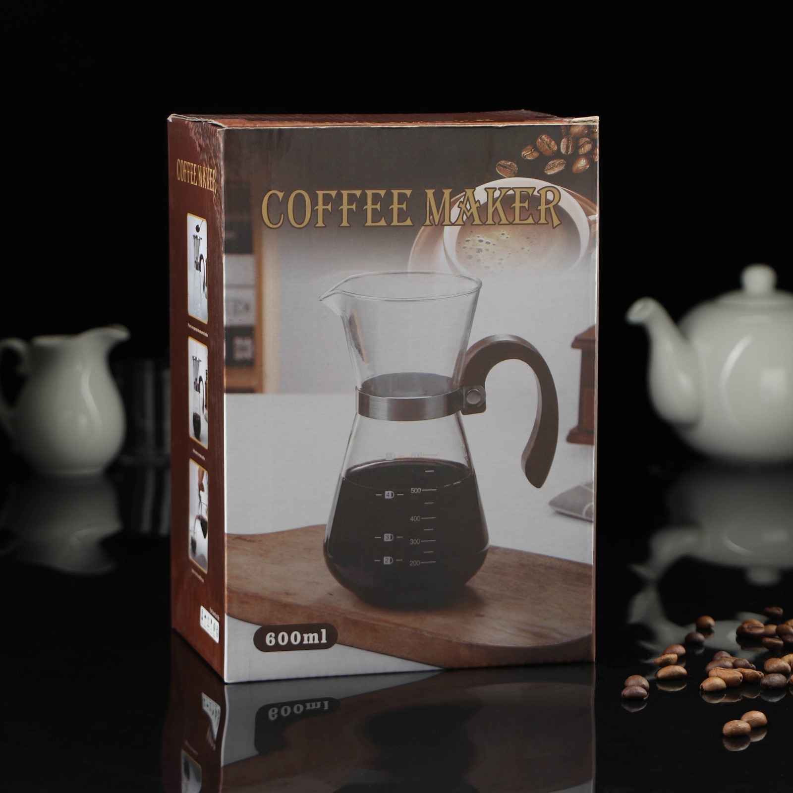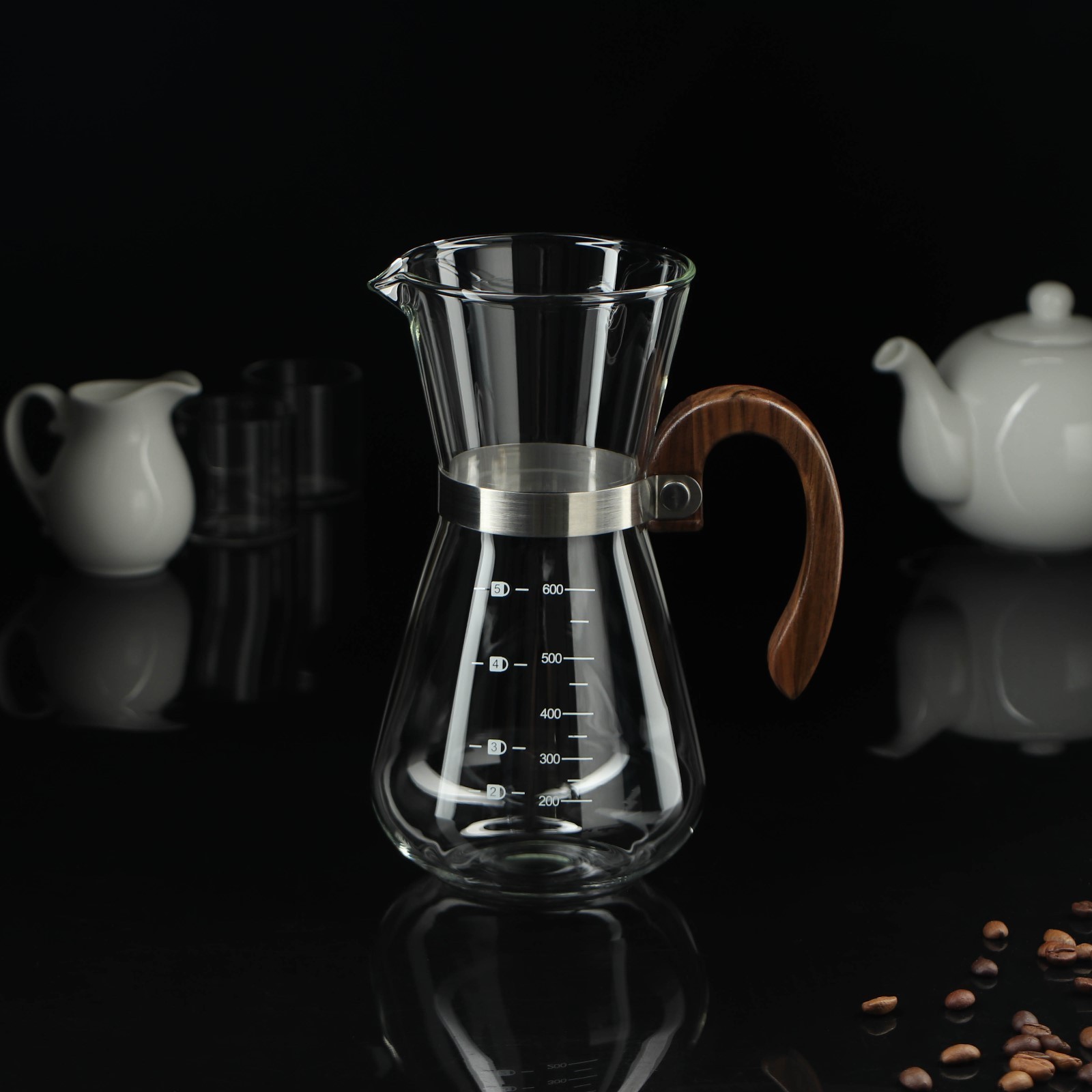 Кемекс стеклянный с мерной шкалой «типика», 600 мл, с деревянной ручкой