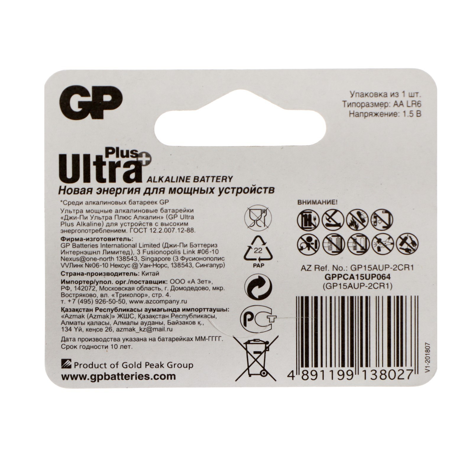 Батарейка алкалиновая Gp Ultra Plus, Aa, Lr6-1bl, 1.5в, блистер, 1 шт.