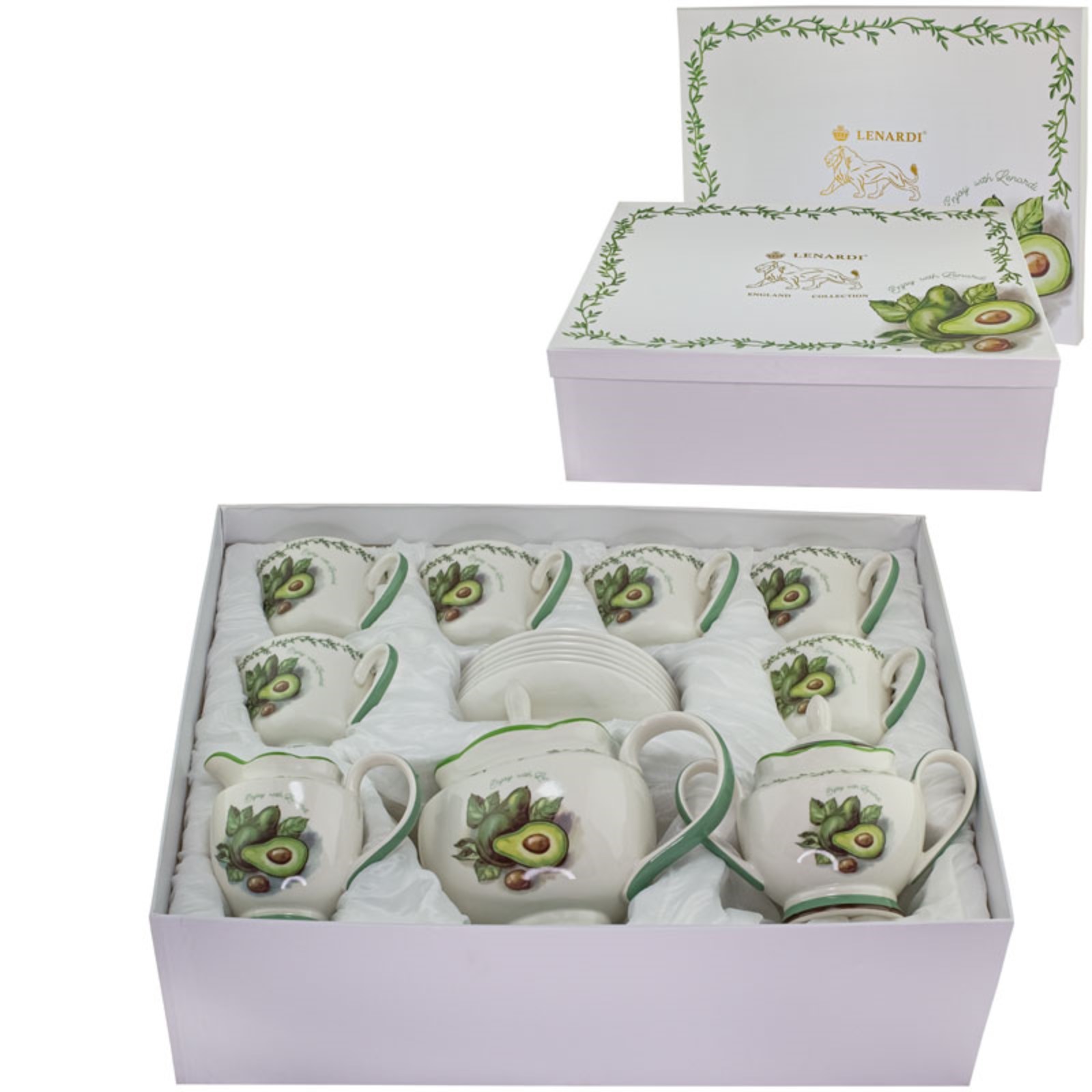 Чайный набор lenardi «авокадо», 12 предметов. Изделие может иметь следующие несущественные дефекты: незначительный скол краски;прерывание и наплыв рисунка;наличие полосы на рисунке;потёртости и наплыв золотой краски на внутренней стороне;небольшие потёртости и царапины на глазури;засорения под глазурью;плотные вздутия глазури на внутренней поверхности;натёк глазури;наличие мушек (чёрных точек);неровность внутреннего отверстия;отклеивание страз;потёртость упаковки в уголках. Данные недостатки не влияют на свойства изделия при использовании. Цвет: Белый Количество персон: 6 В наборе, шт.: 12 Объём, мл: 250 Тематика: Узоры Материал: Фарфор Наличие подставки: Нет Можно мыть в посудомоечной машине: Да Можно использовать в СВЧ-печи: Да Текстура: Гладкая Тип: Чайный сервиз Особенности: Без особенностей Матовая поверхность: Нет Серия: Авокадо Серия: Lenardi Авокадо Запрет реализации по сегментам: 00000000485  развернуть описание ▼