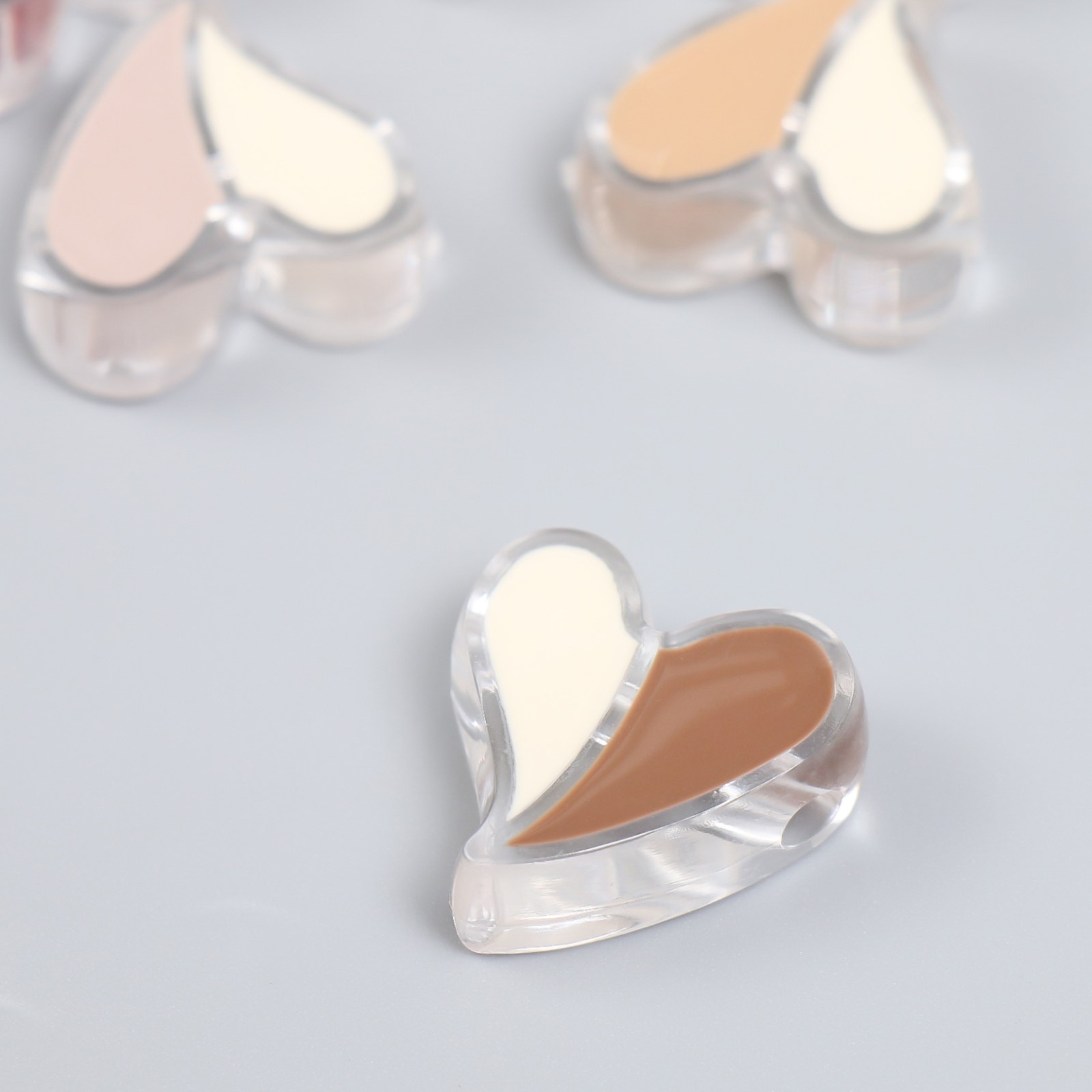 Бусина для рукоделия и плетения «арт узор. кофейный аромат. сердечко. половинки», пластик, глянец, 2.3 2.4 0.9 см, микс