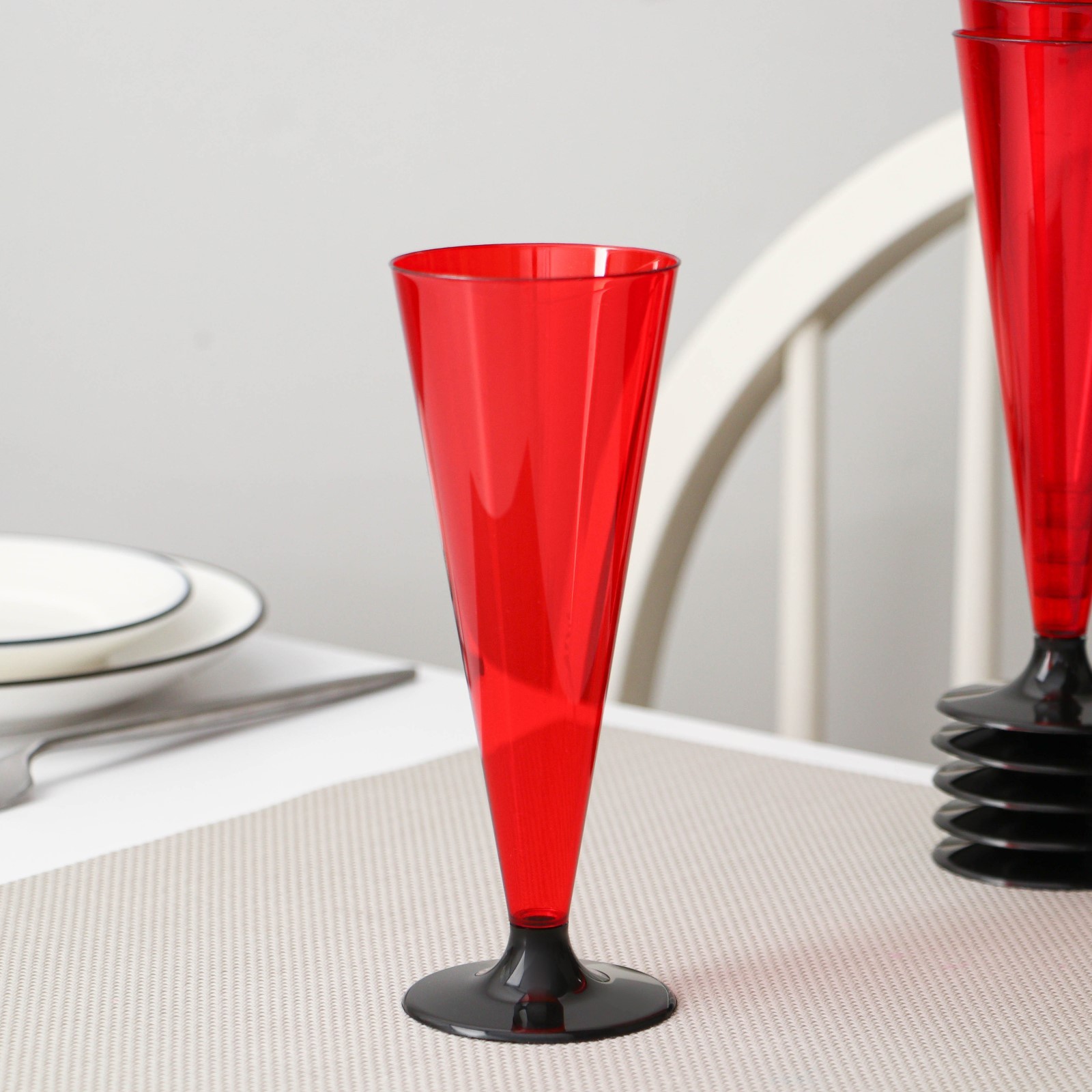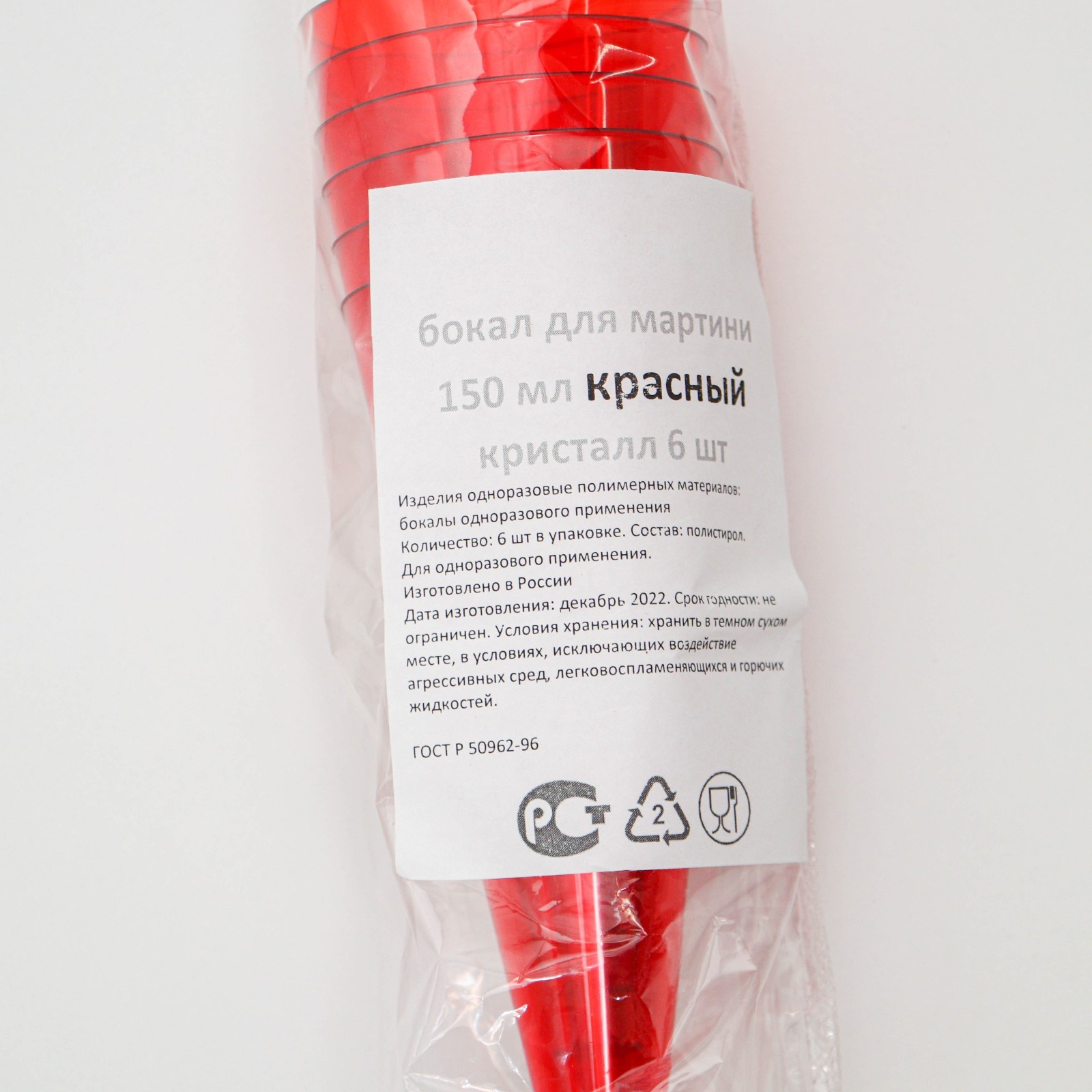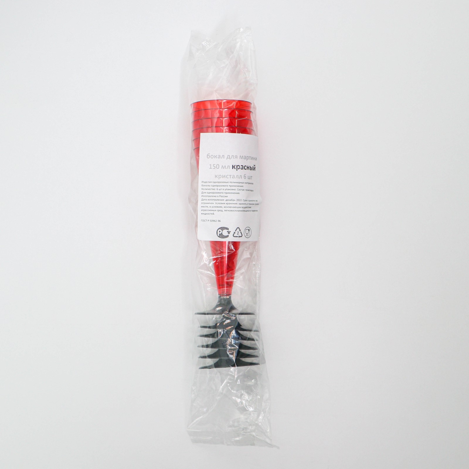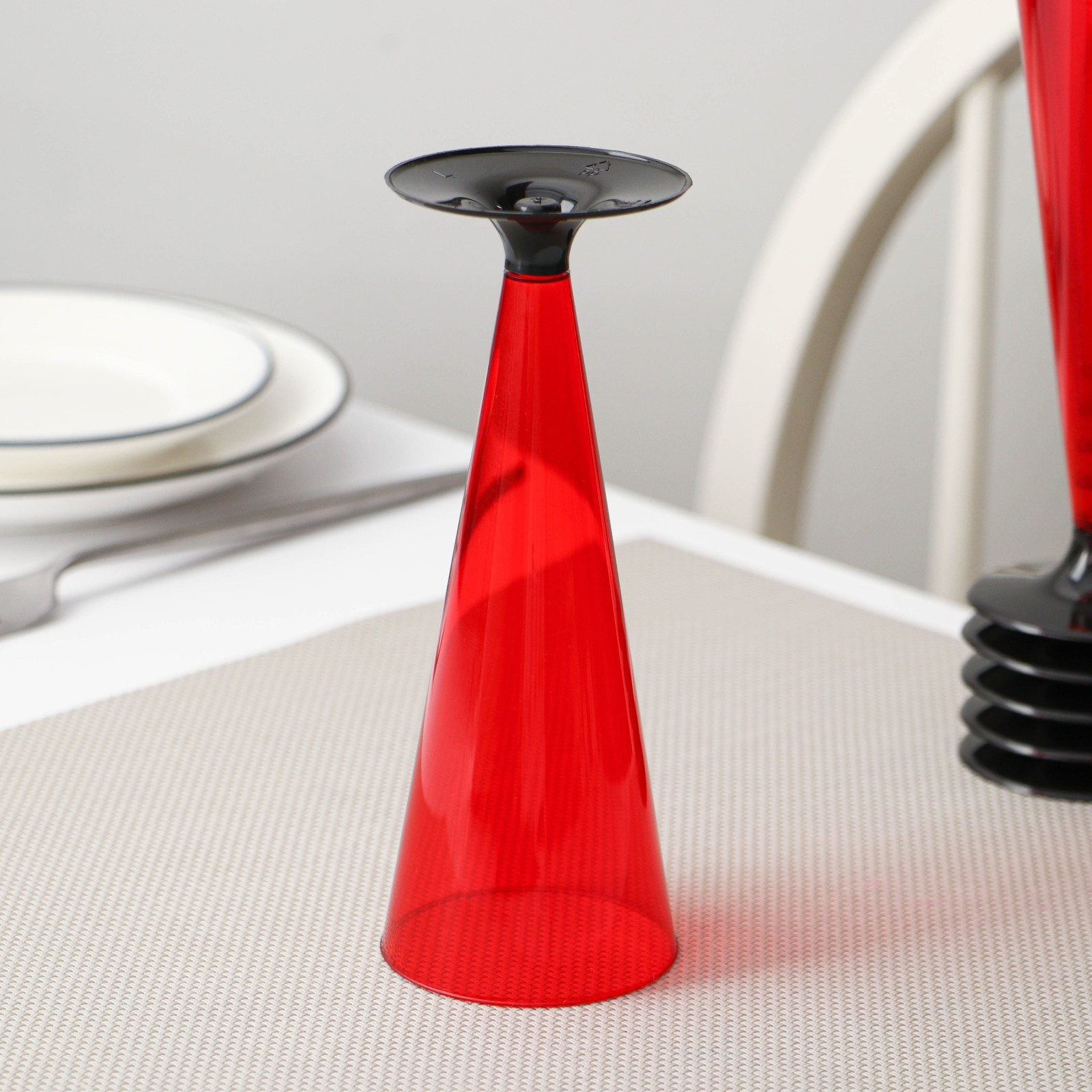 Фужер одноразовый «конус», 150-180 мл, 6 шт в упаковке, цвет красный с чёрной ножкой