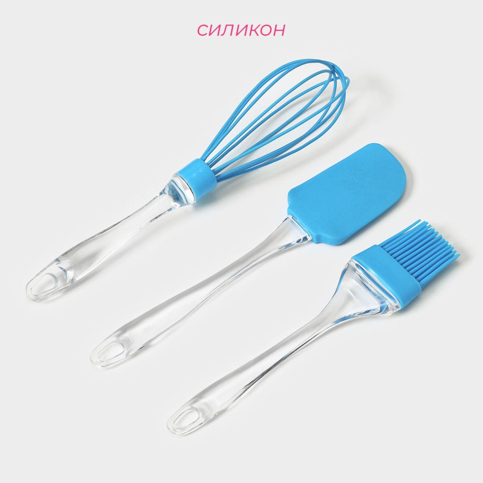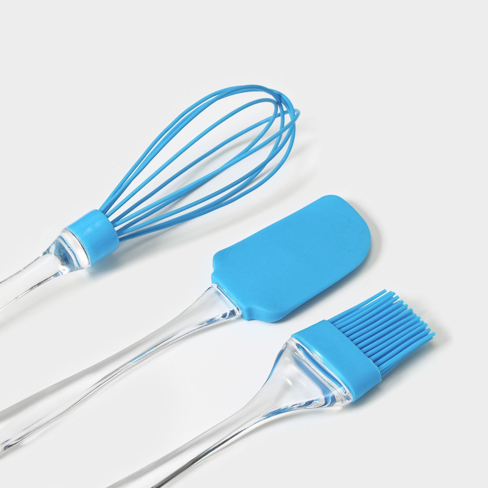 Набор для выпечки доляна «лёд. макси», 3 предмета: лопатка, кисть, венчик, цвет голубой