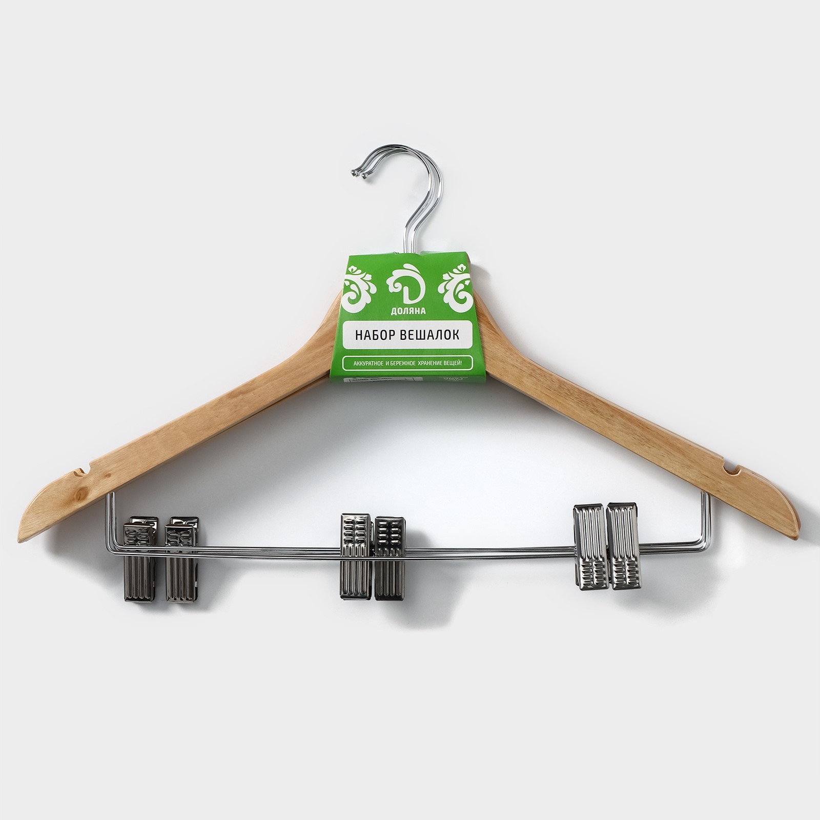 Плечики - вешалки с зажимами для юбок и брюк доляна, 45x27 см, 3 шт, сорт с, цвет светлое дерево