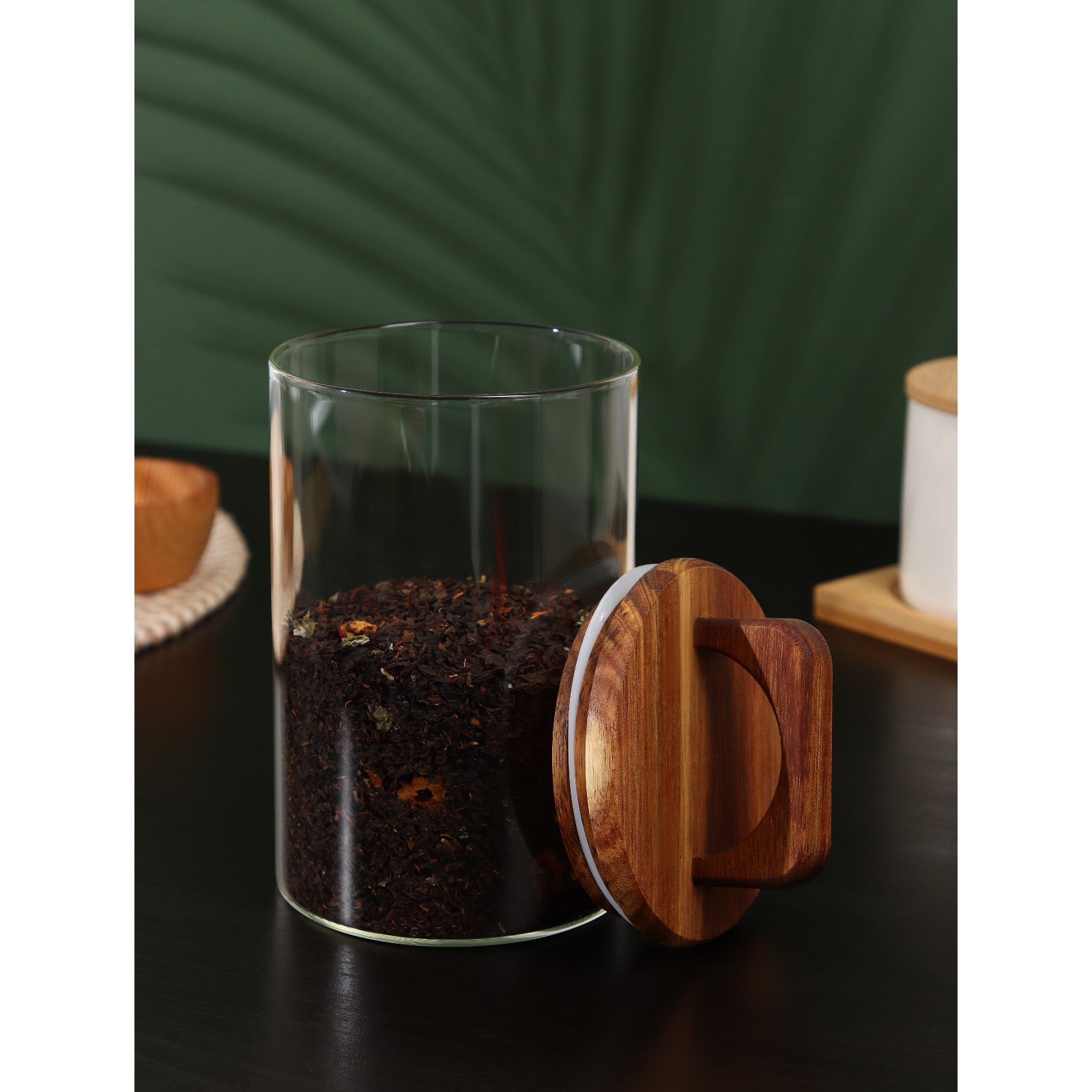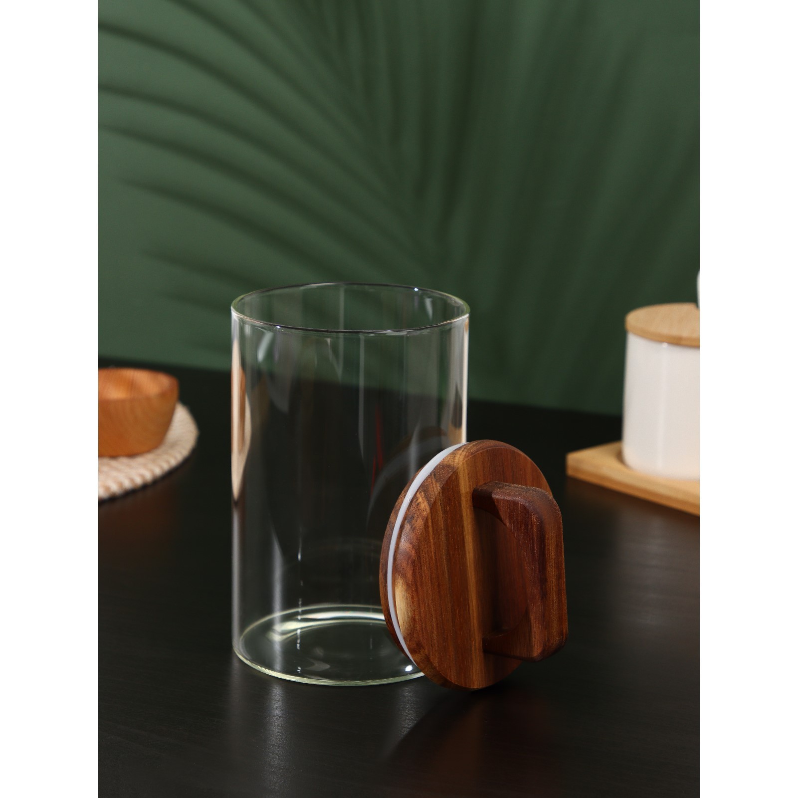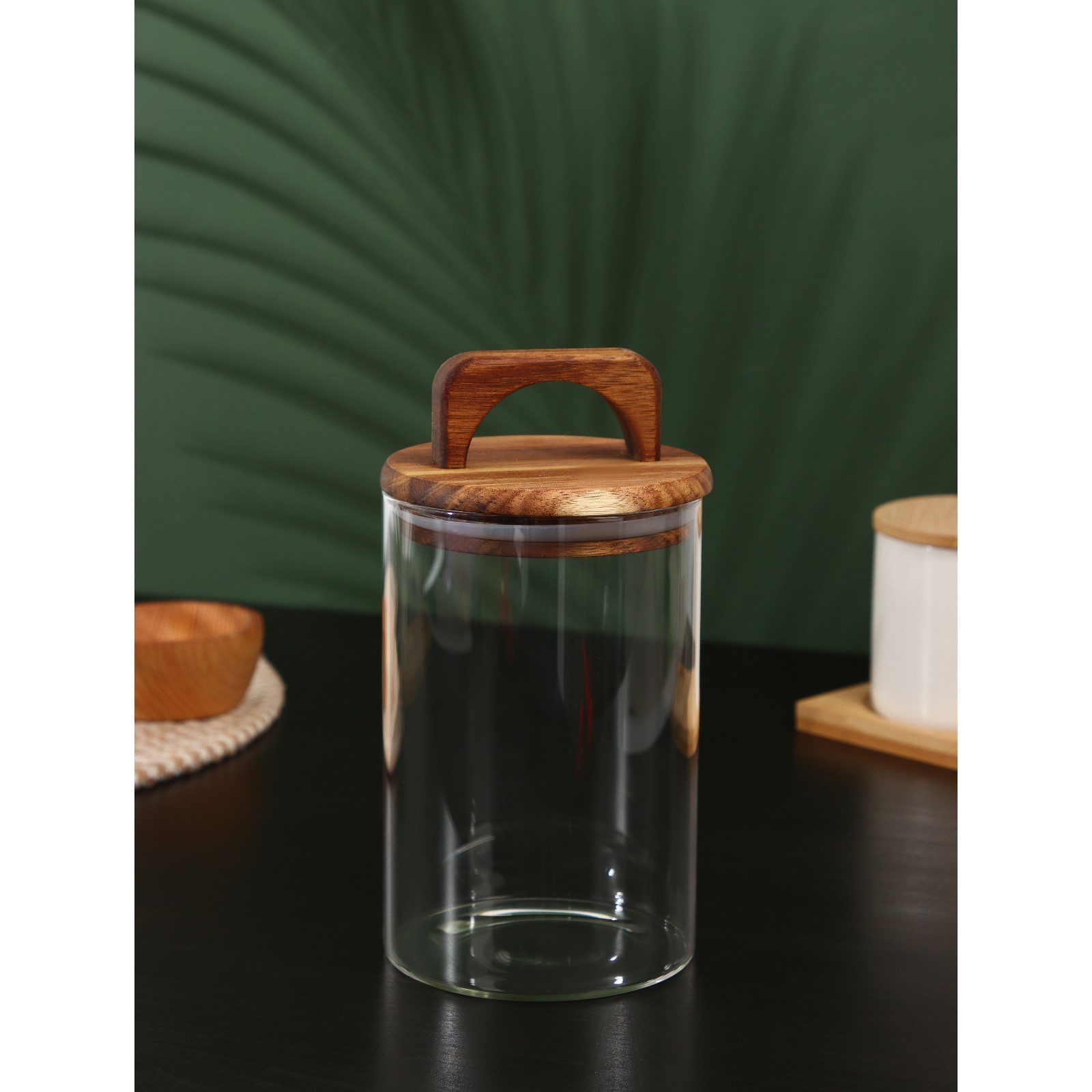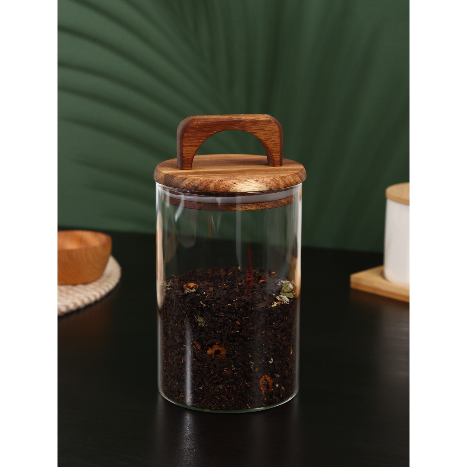 Банка стеклянная для сыпучих продуктов с деревянной крышкой «вуд», 950 мл, 10x20 см