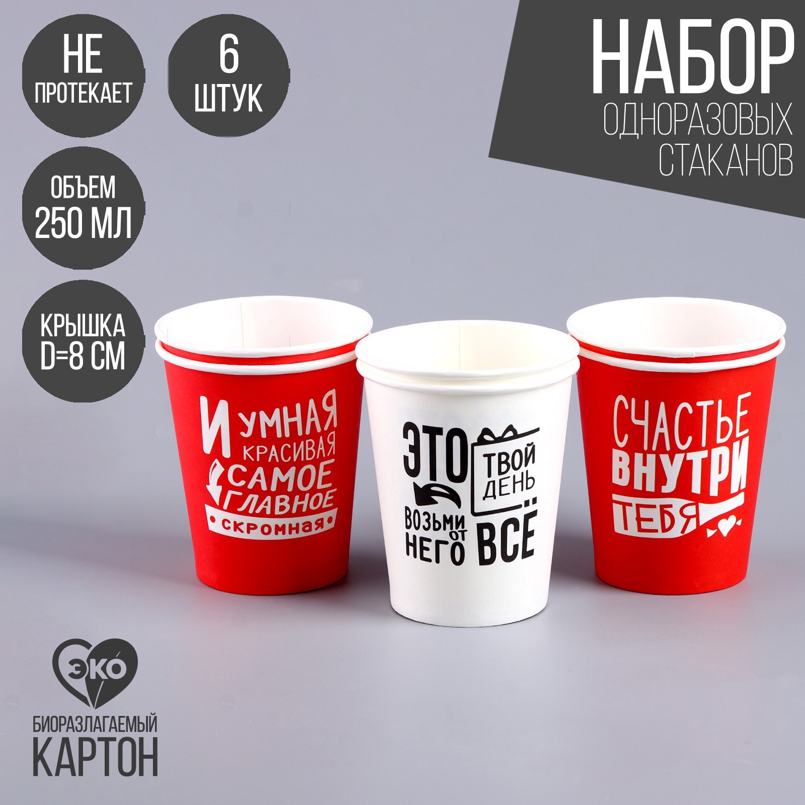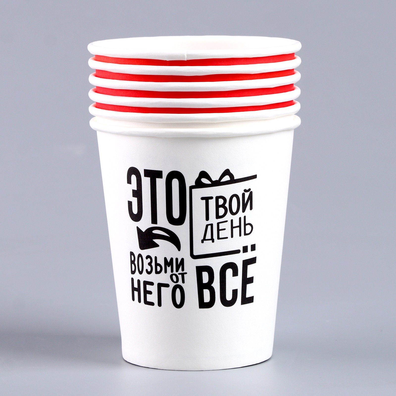Стакан одноразовый бумажный «это твой день», набор 6 шт., 250 мл