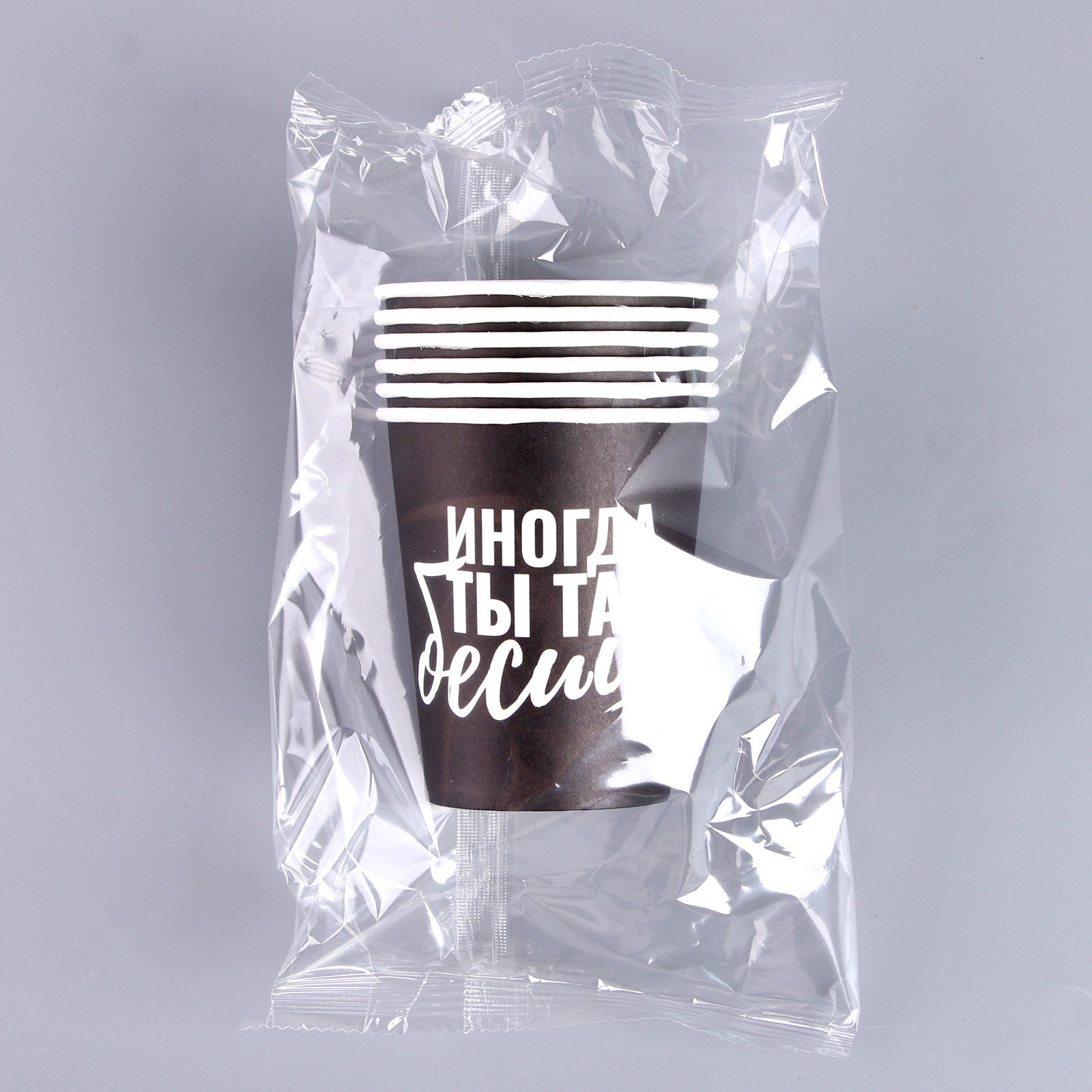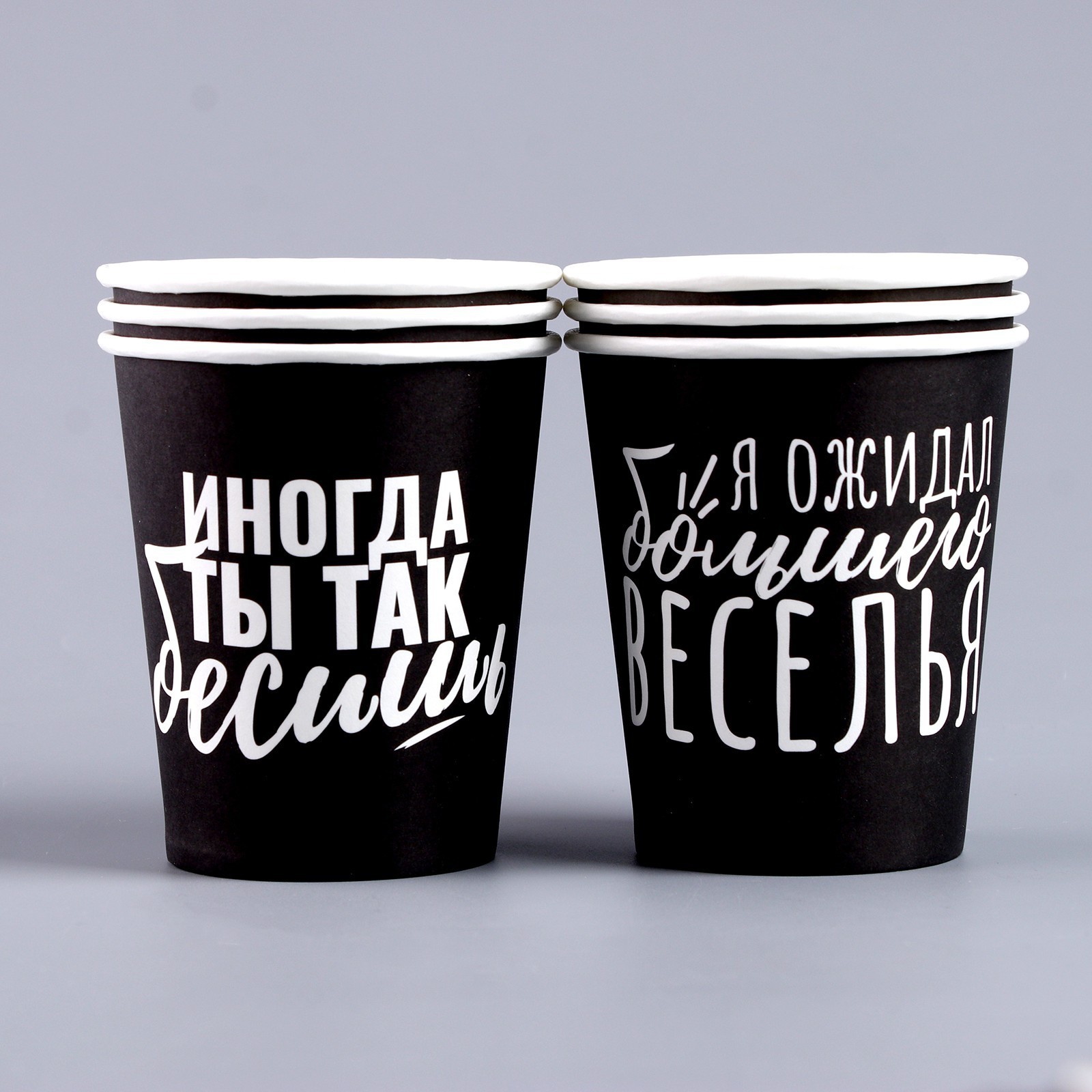 Стакан одноразовый бумажный «бесишь», набор 6 шт., 250 мл