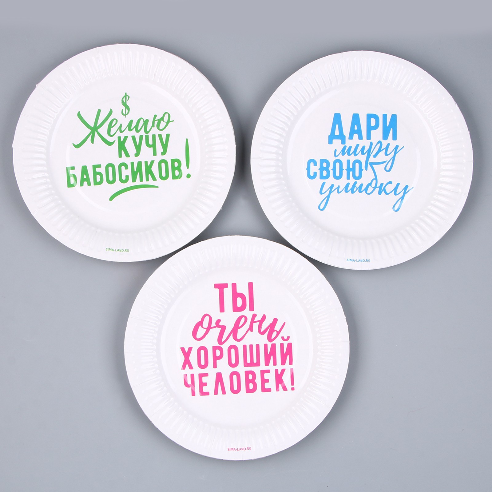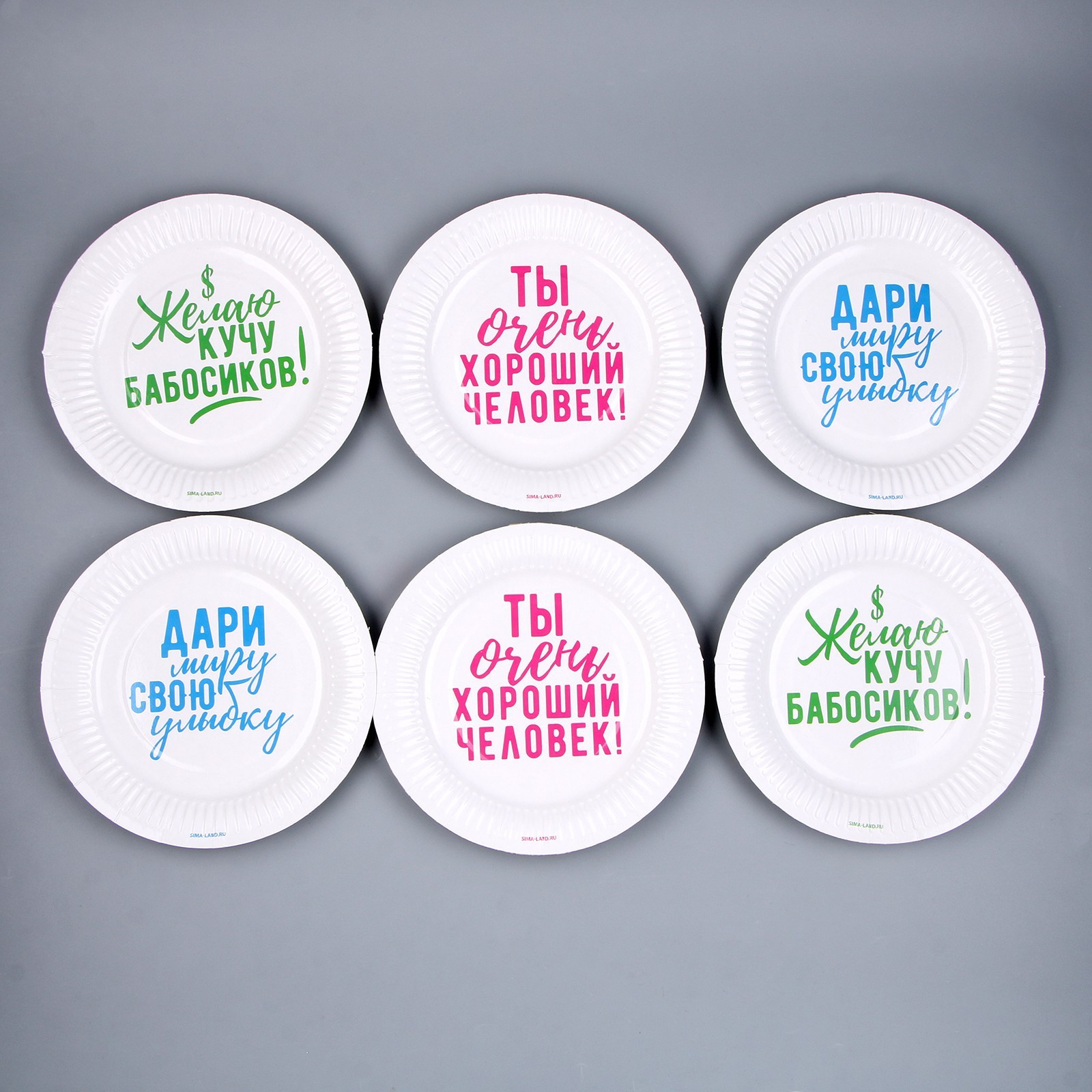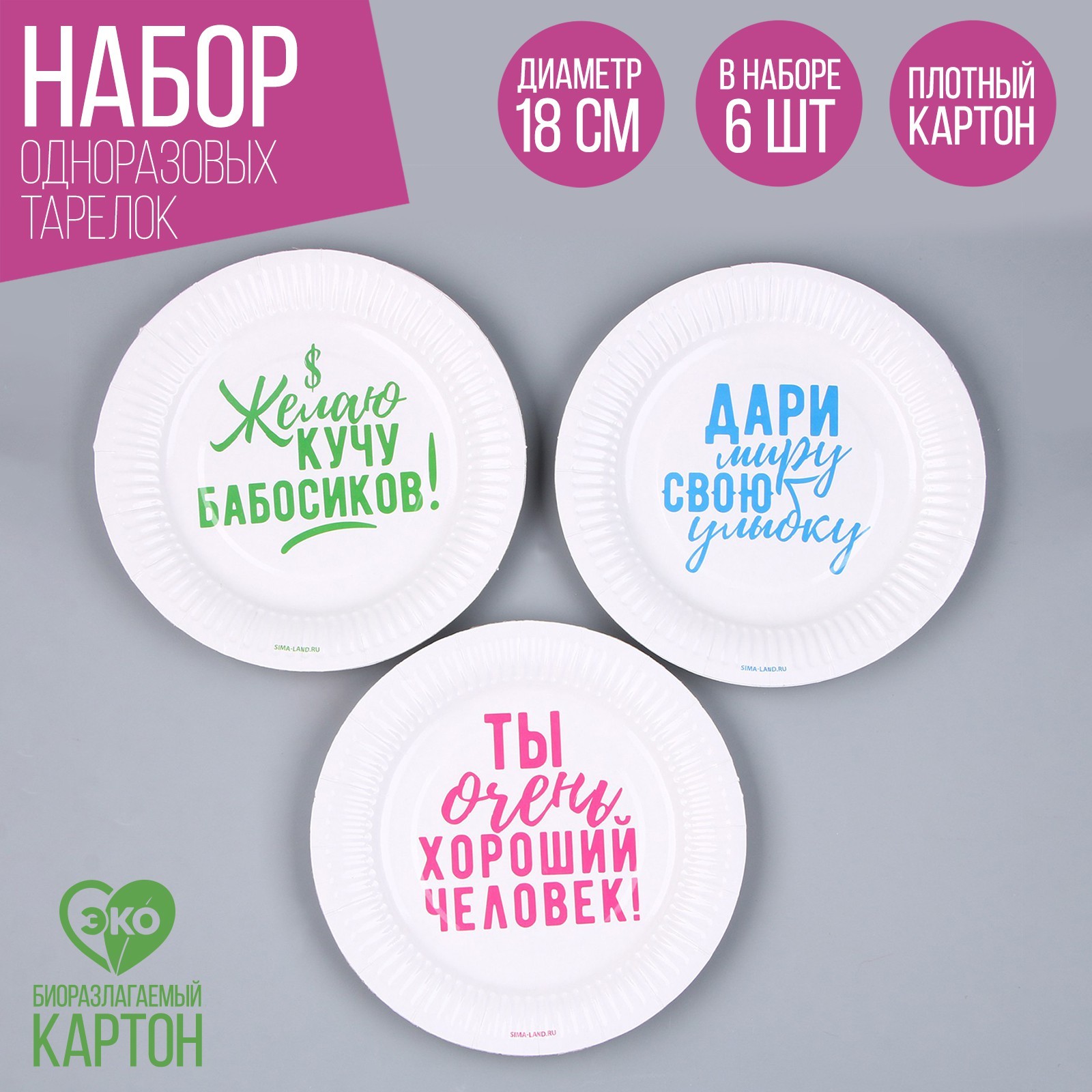 Тарелка одноразовая бумажная «хвалебная», 18 см, набор 6 шт.