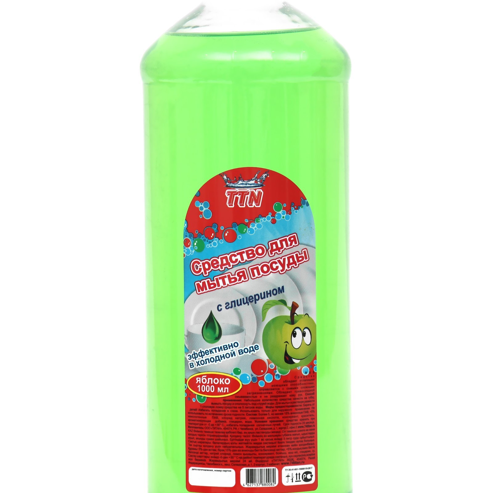 Средство для мытья посуды Titan "яблоко", C глицерином, 1 л