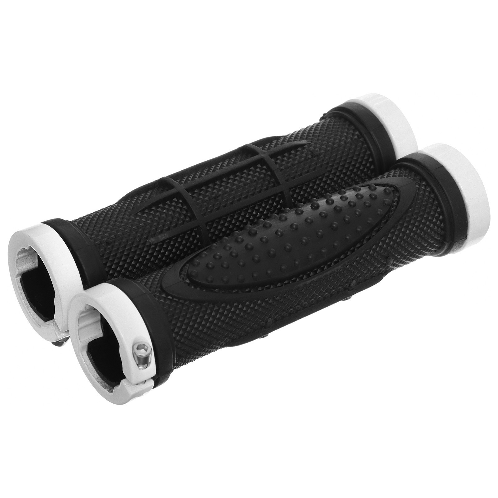 Грипсы 130 мм, lock on, цвет чёрный/белый. Грипсы препятствуют соскальзыванию рук с руля, гасят вибрацию, не натирают ладони и делают поездку более комфортной. Устанавливаются на края руля и их можно менять по мере износа. Цвет: Чёрный Длина, мм: 130 Форма: Классические Тип: Грипсы Мягкие: Нет  развернуть описание ▼