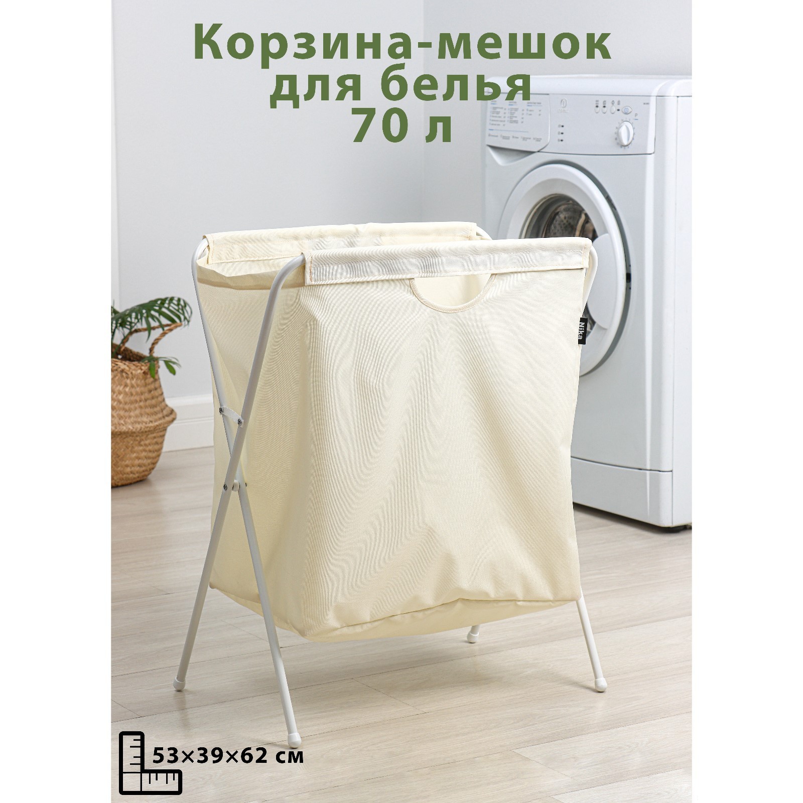 Корзина-мешок для белья на металлокаркасе, 53x39x62 см, цвет бежевый