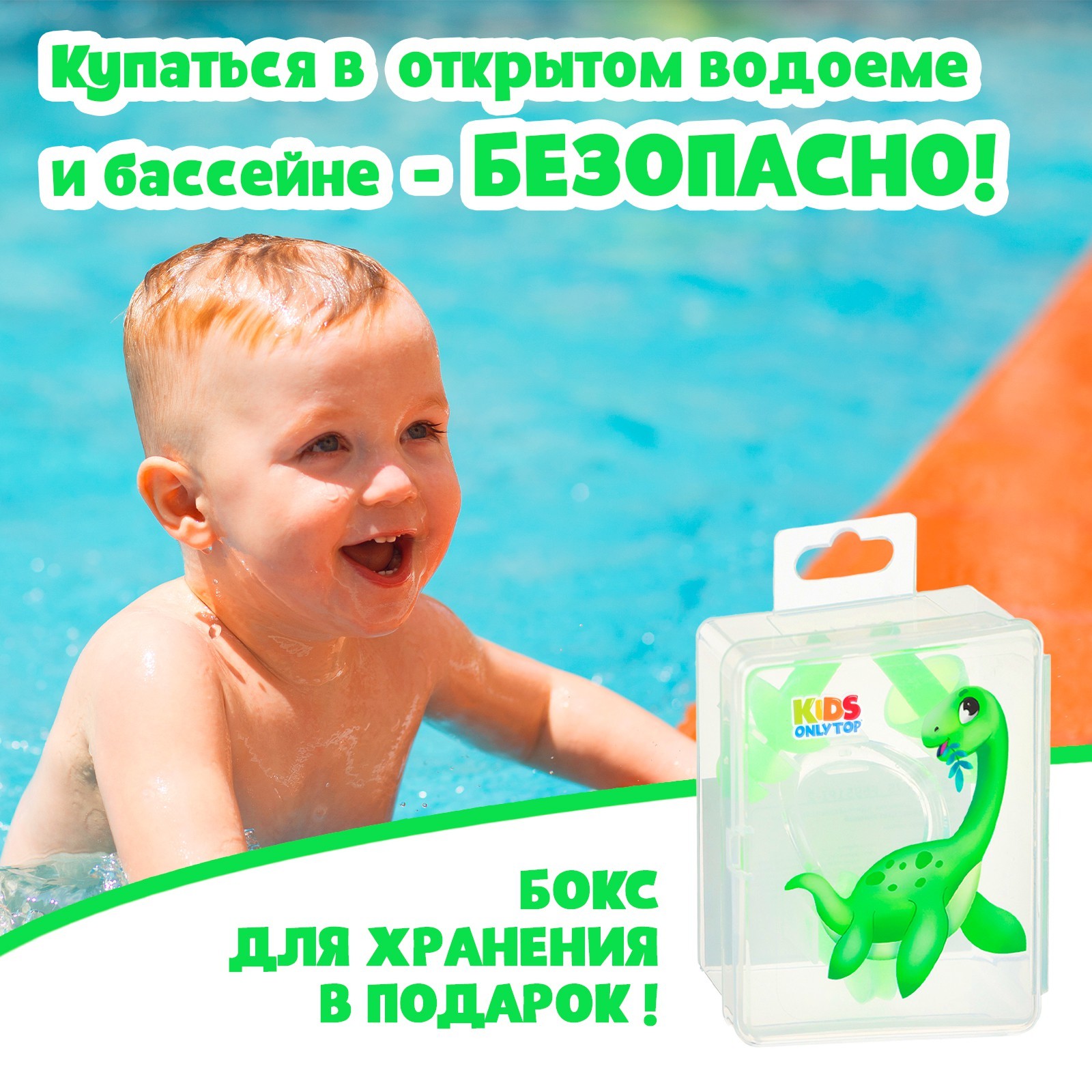 Набор для плавания onlytop «динозаврик»: зажим для носа, беруши, цвет зелёный. Набор предназначен для предотвращения попадания воды и микроорганизмов в уши во время плавания. За счёт эргономичной формы затычки плотно вставляются, а зажим хорошо прилегает к носу и не слетает. Футляр для хранения входит в комплект. Цвет: Зелёный Материал: Силикон Материал: Пластик  развернуть описание ▼