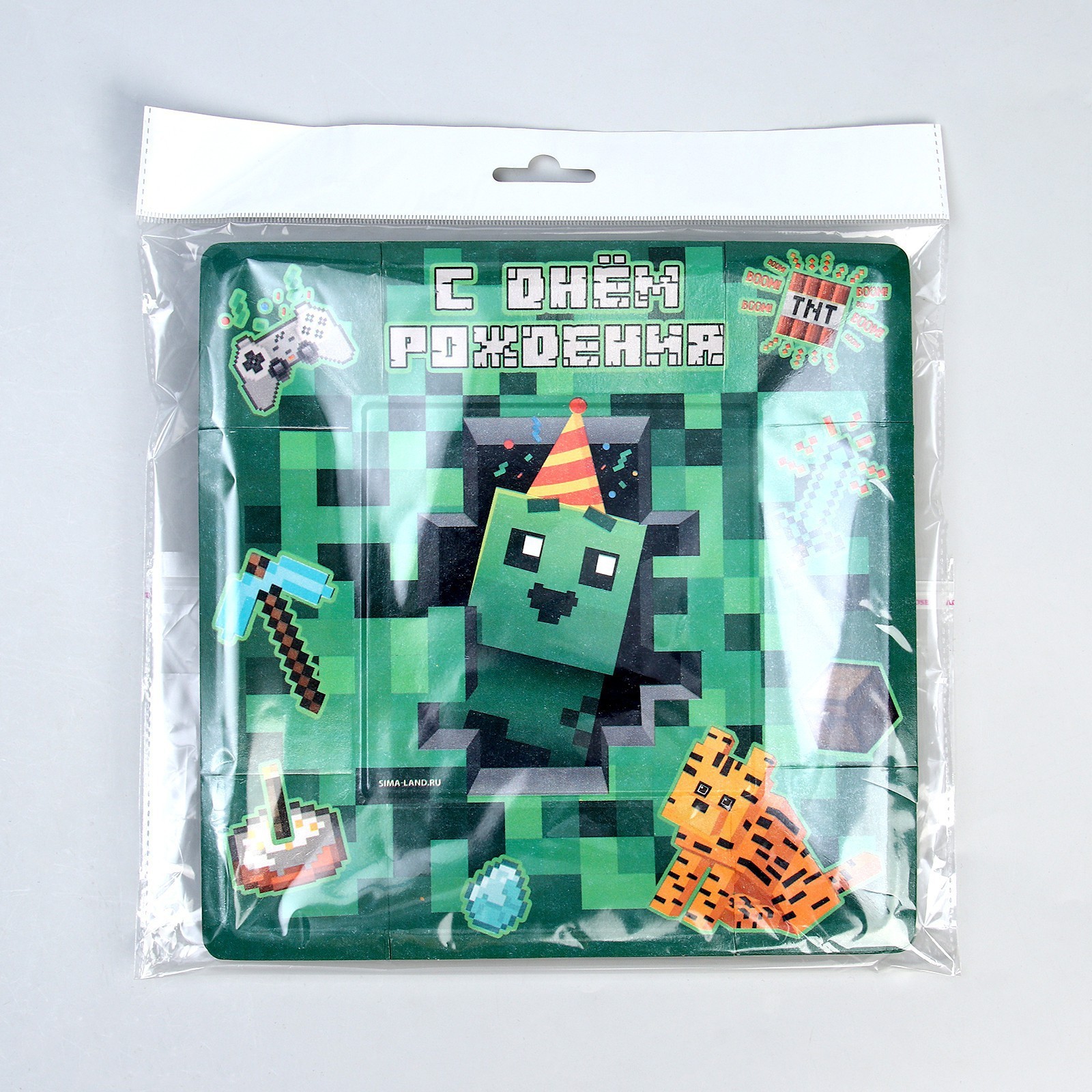 Тарелка одноразовая бумажная квадратная " пиксели ",21 см