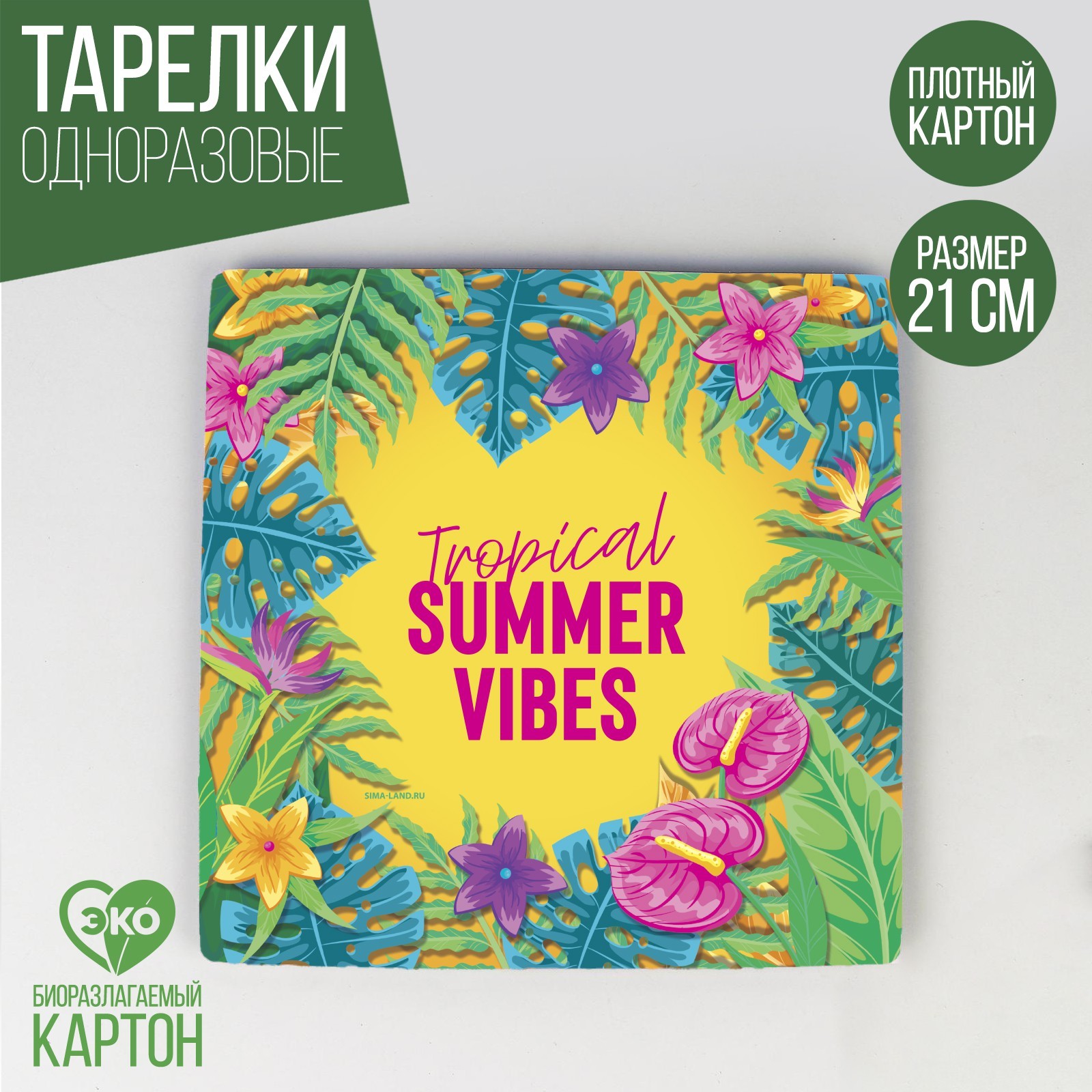Тарелка одноразовая бумажная квадратная "тропики",21 см