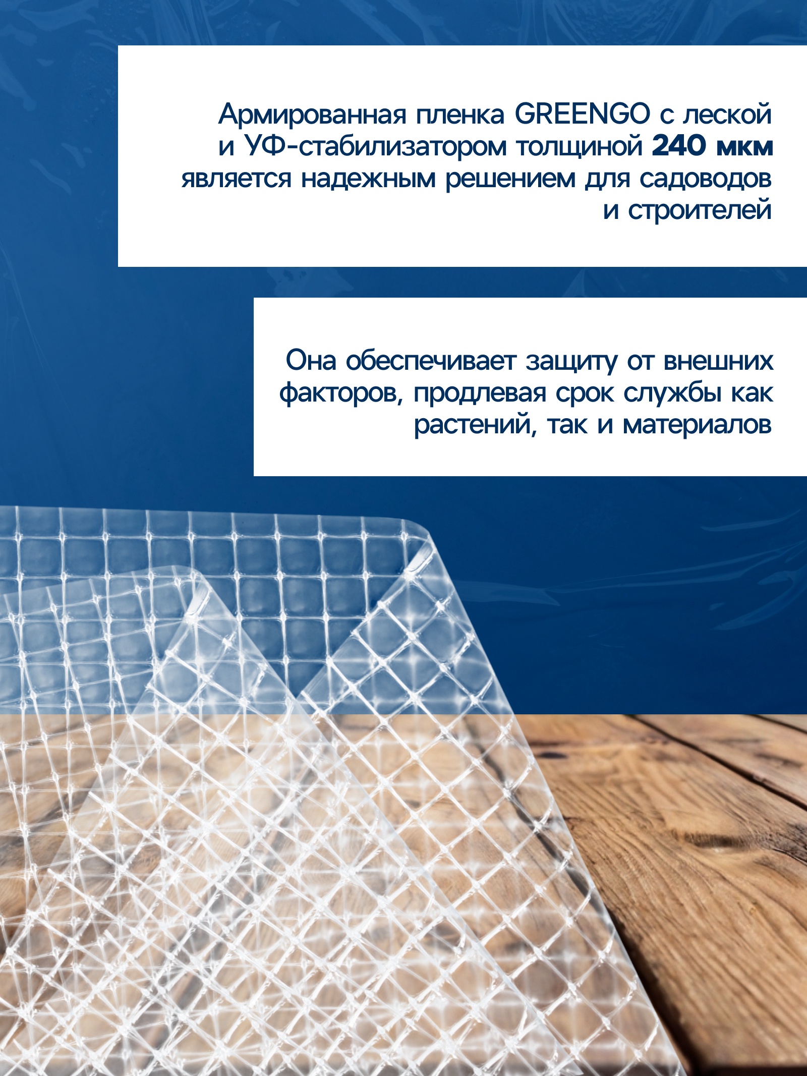 Плёнка армированная Greengo, полиэтиленовая с леской, 10 2 м, толщина 240 мкм, уф-стабилизированная