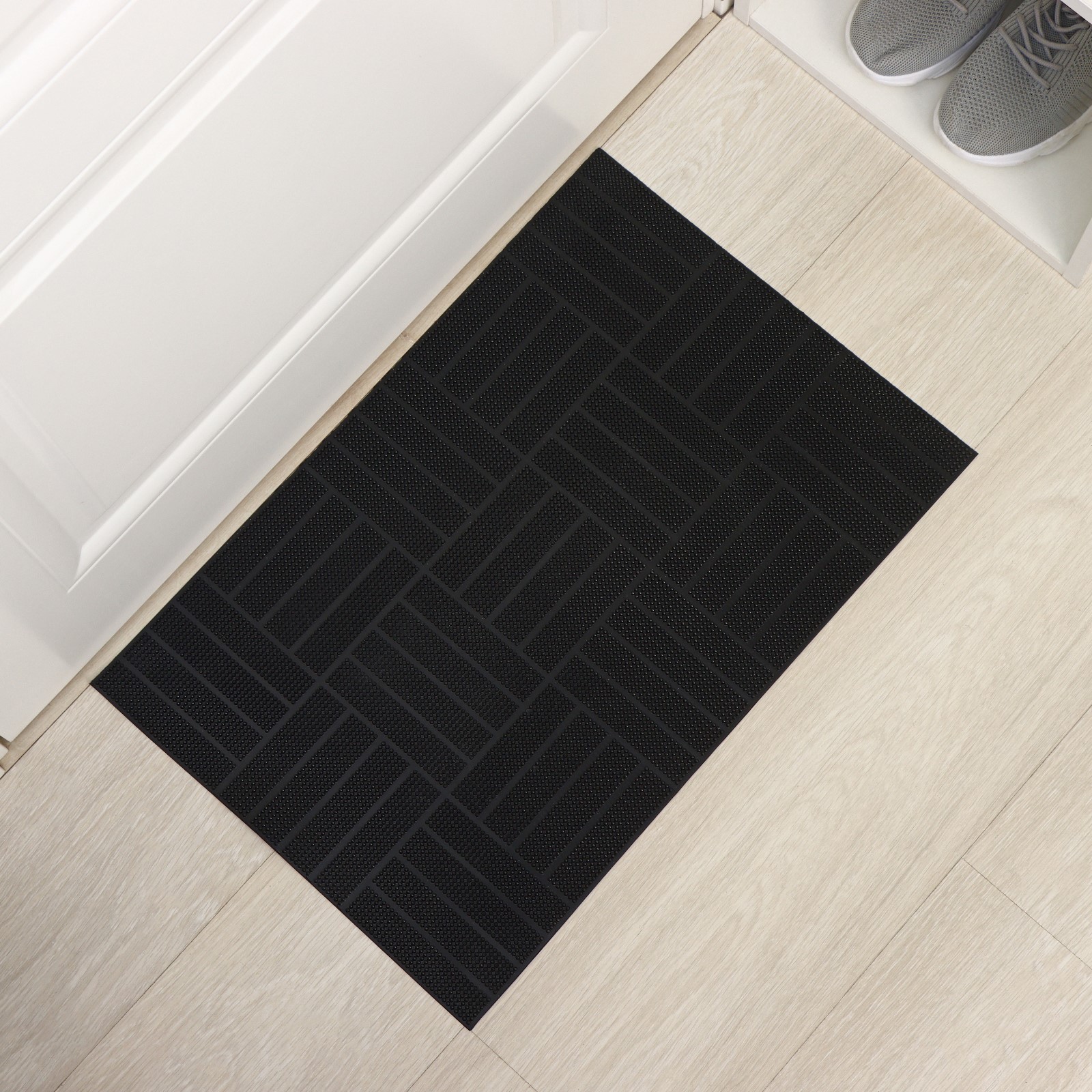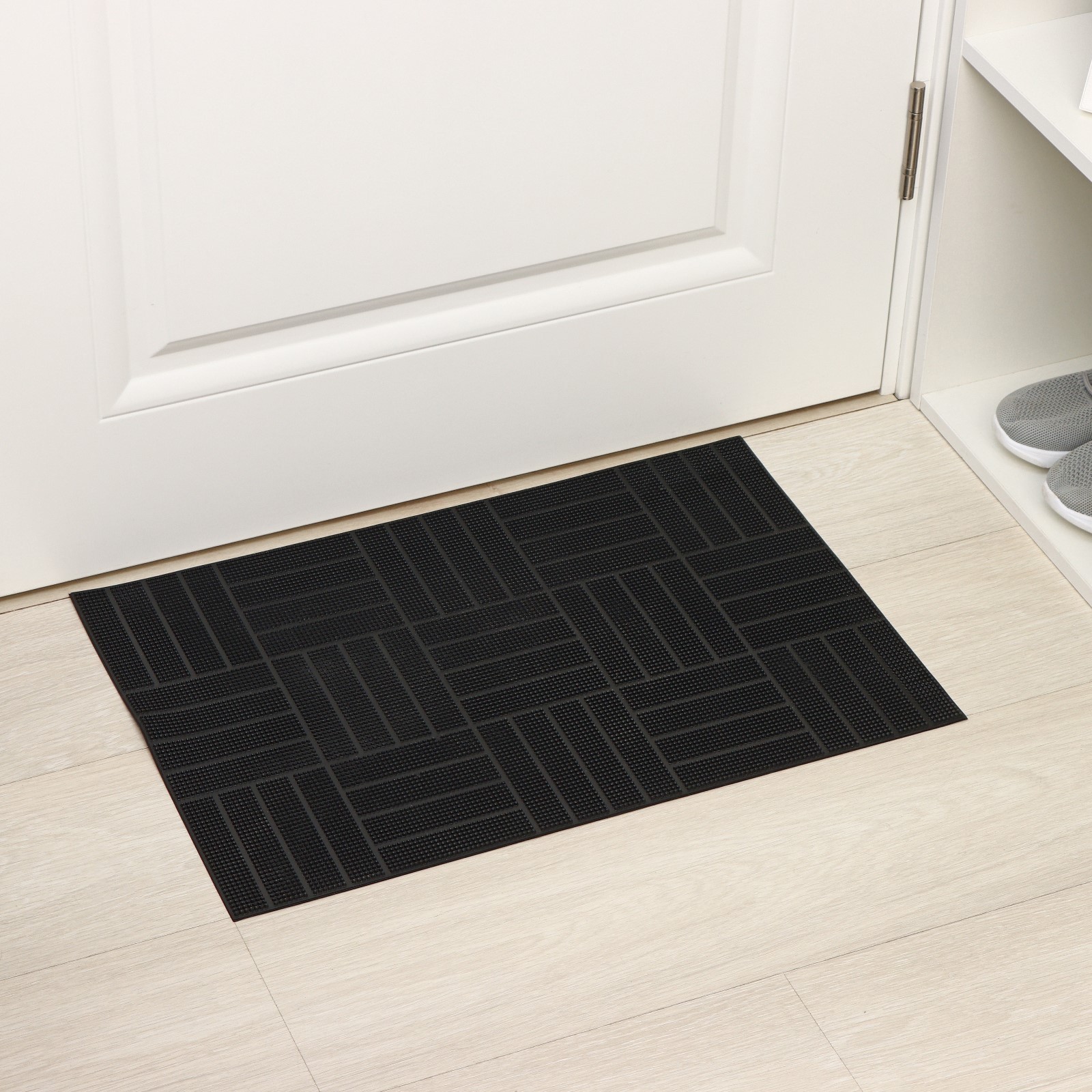 Коврик придверный резиновый «паркет», 40x60 см, цвет чёрный. Добиться идеальной чистоты в прихожей удивительно просто! Достаточно разместить у порога качественный придверный коврик. Резиновый коврик надёжно защитит ваш дом от мусора и грязи. Изделие задерживает влагу при входе в помещение, а также очищает обувь от мусора и грязи. Придверный коврик в прихожей дополнит интерьер вашего дома и создаст прекрасное чувство комфорта. Цвет: Чёрный Форма: Прямоугольная Длина, см: 40 Ширина, см: 60 Тематика: Однотонная Материал: Резина Вид покрытия коврика: Литой Температурное ограничение: Нет Форма: Прямоугольник  развернуть описание ▼