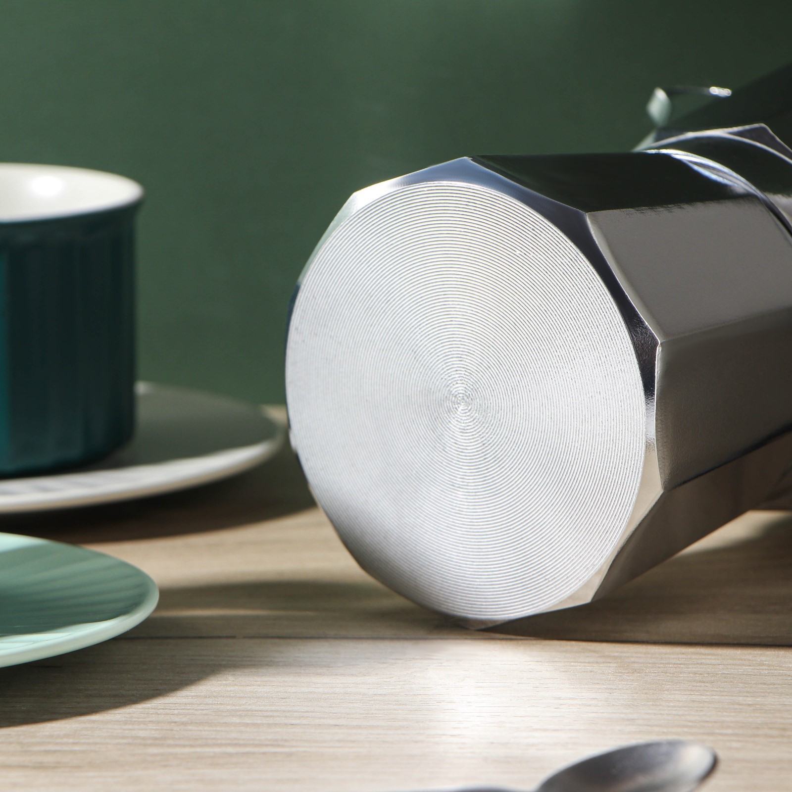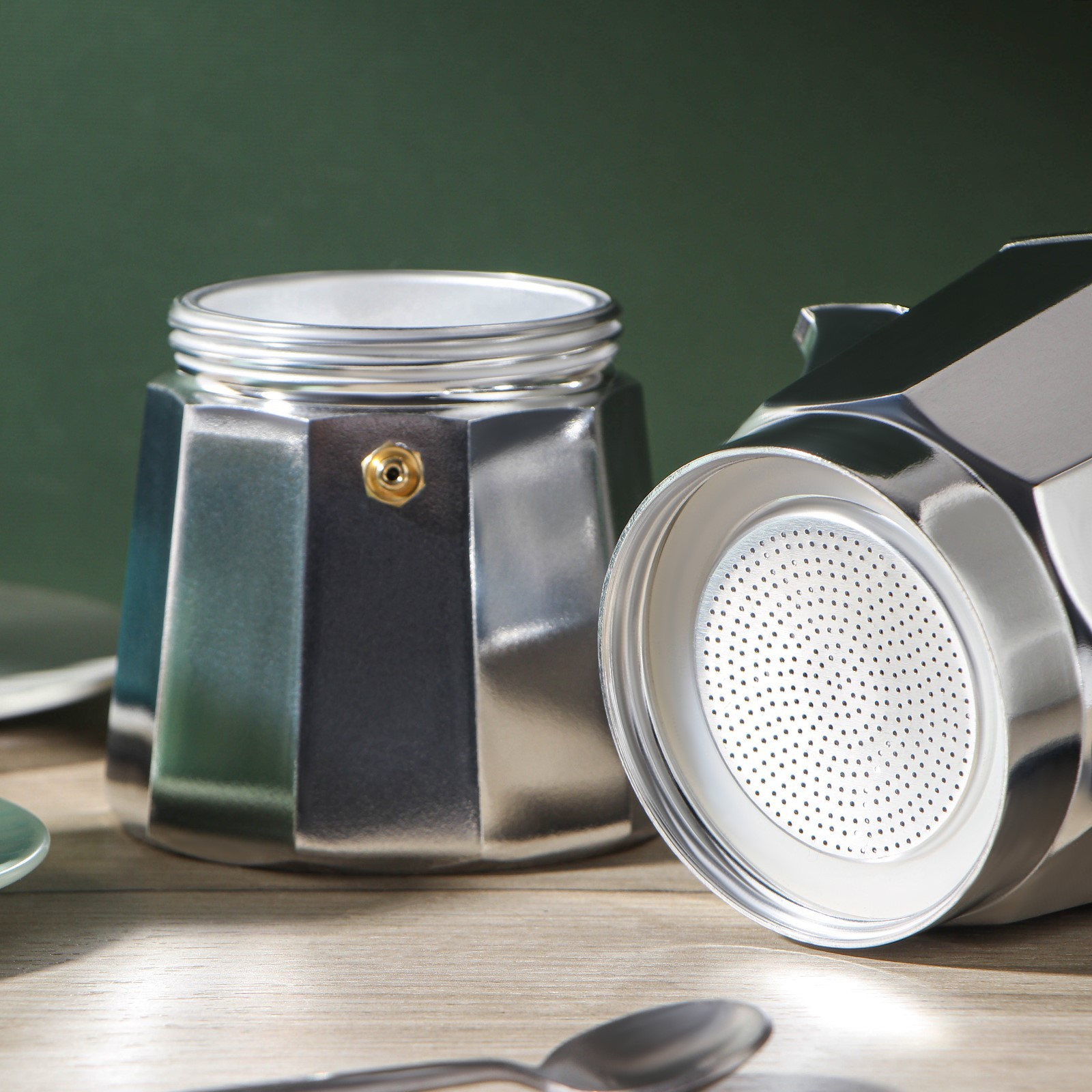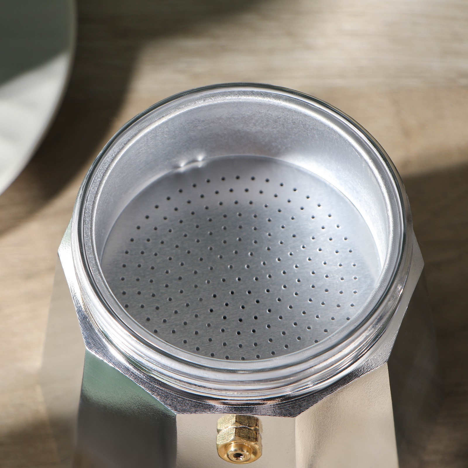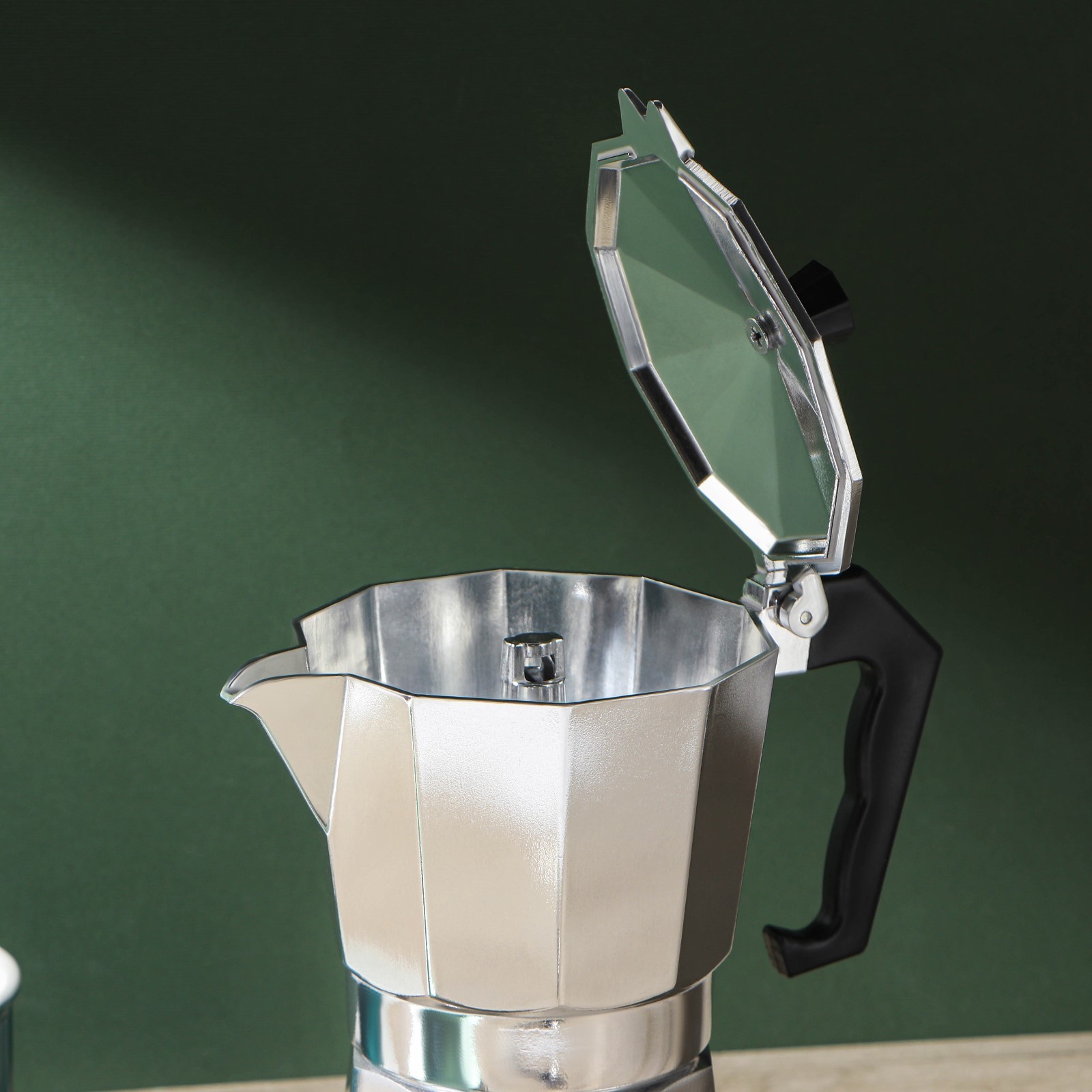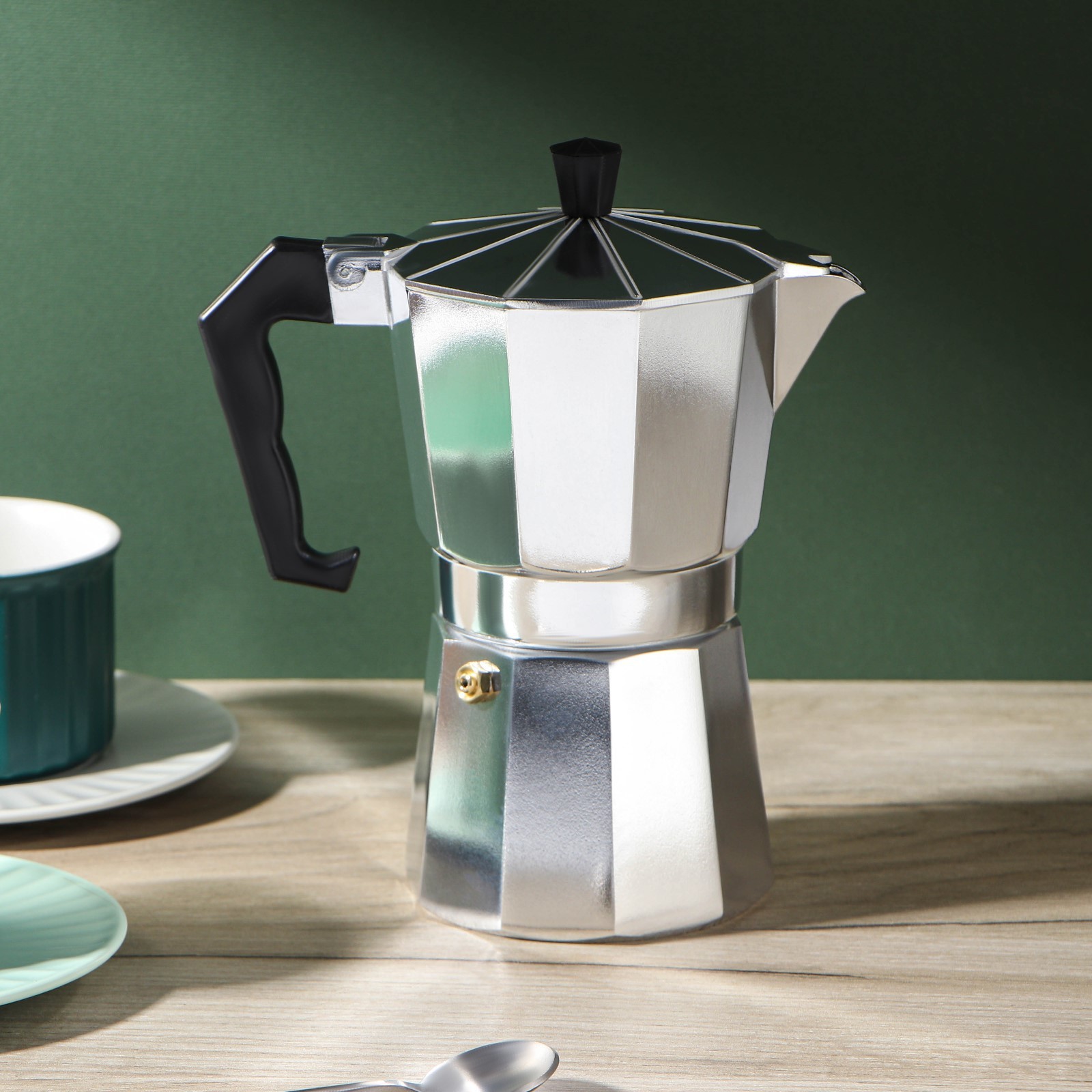 Кофеварка гейзерная доляна alum, на 6 чашек, 300 мл. Как приготовить самый вкусный кофе в гейзерной кофеварке? Для начала отвинтите верхнюю часть и достаньте фильтр-воронку. Налейте в нижний резервуар воды до уровня предохранительного клапана. Важно: клапан должен остаться над водой – это нужно для того, чтобы в случае перегрева кофеварки давление в нижнем резервуаре не превысило критической отметки. Наполните воронку молотым кофе. Обязательно учитывайте, что необходим помол именно для гейзерной кофеварки. Вставьте воронку в нижний резервуар, уберите излишки кофе с бортиков, чтобы они не прилипли к уплотнителю, и крепко прикрутите верхнюю часть на место. Поставьте кофеварку на плиту. Маленький секрет: варите кофе на медленном огне – лучше подождать на пару минут дольше, но получить идеальный кофе. Когда вы увидите, что кофе полностью вышел в верхний резервуар, а из столбца выходит уже не кофе, а жидкая пена, снимите кофеварку с огня. Ваш свежесваренный и ароматный кофе готов! С ним утро будет по-настоящему добрым. Цвет: Серебристый Количество чашек: 6 Объём, мл: 300  развернуть описание ▼