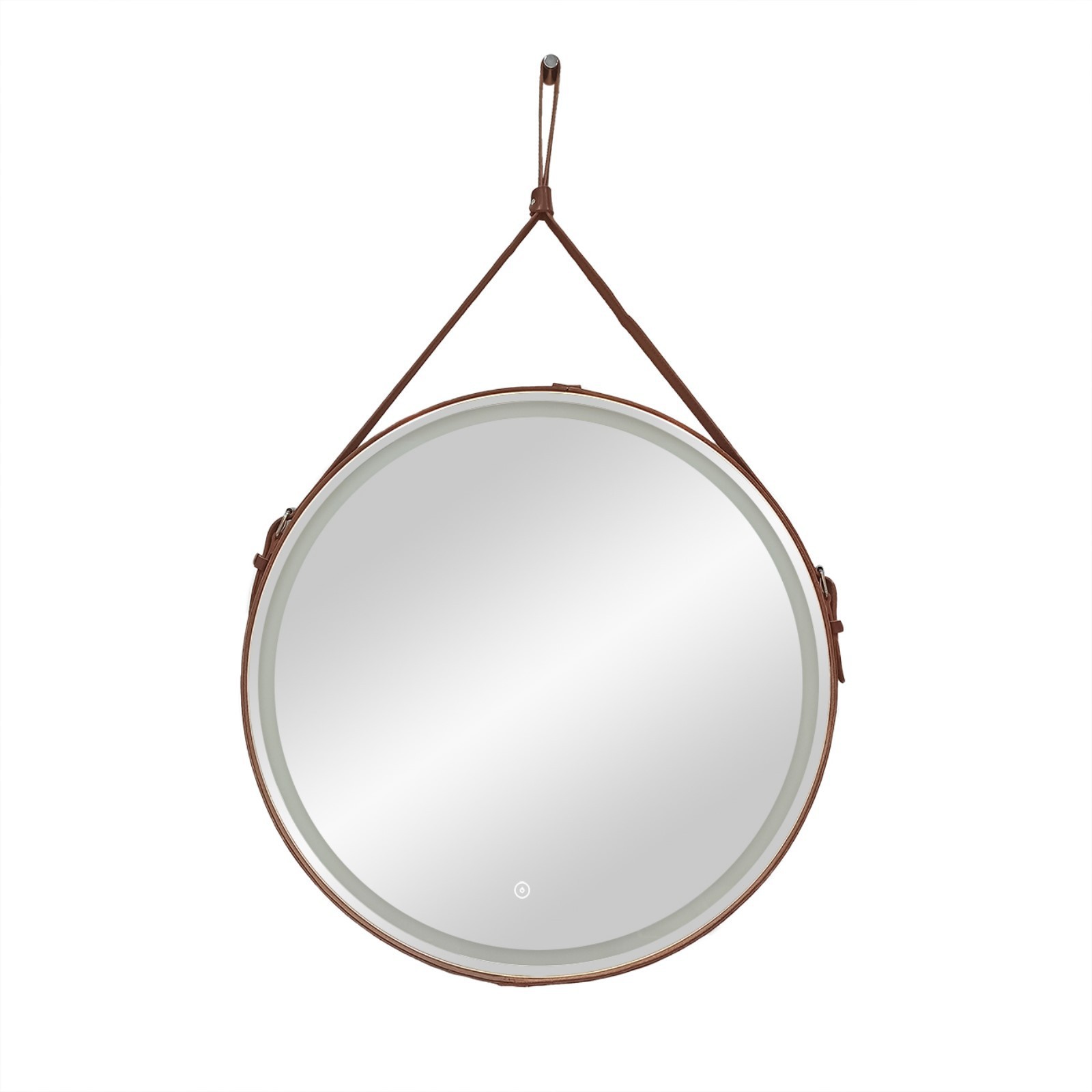 Зеркало Uperwood Round, 80 см, Led подсветка, сенсор, коричневый ремень