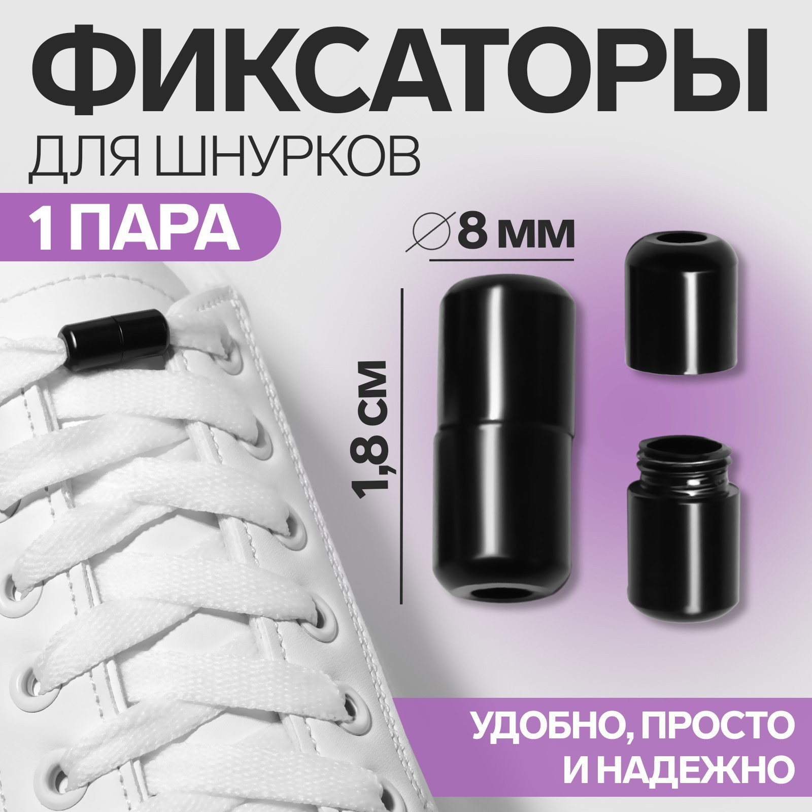 Фиксатор для шнурков, пара, D = 8 мм, 1,8 см, цвет чёрный