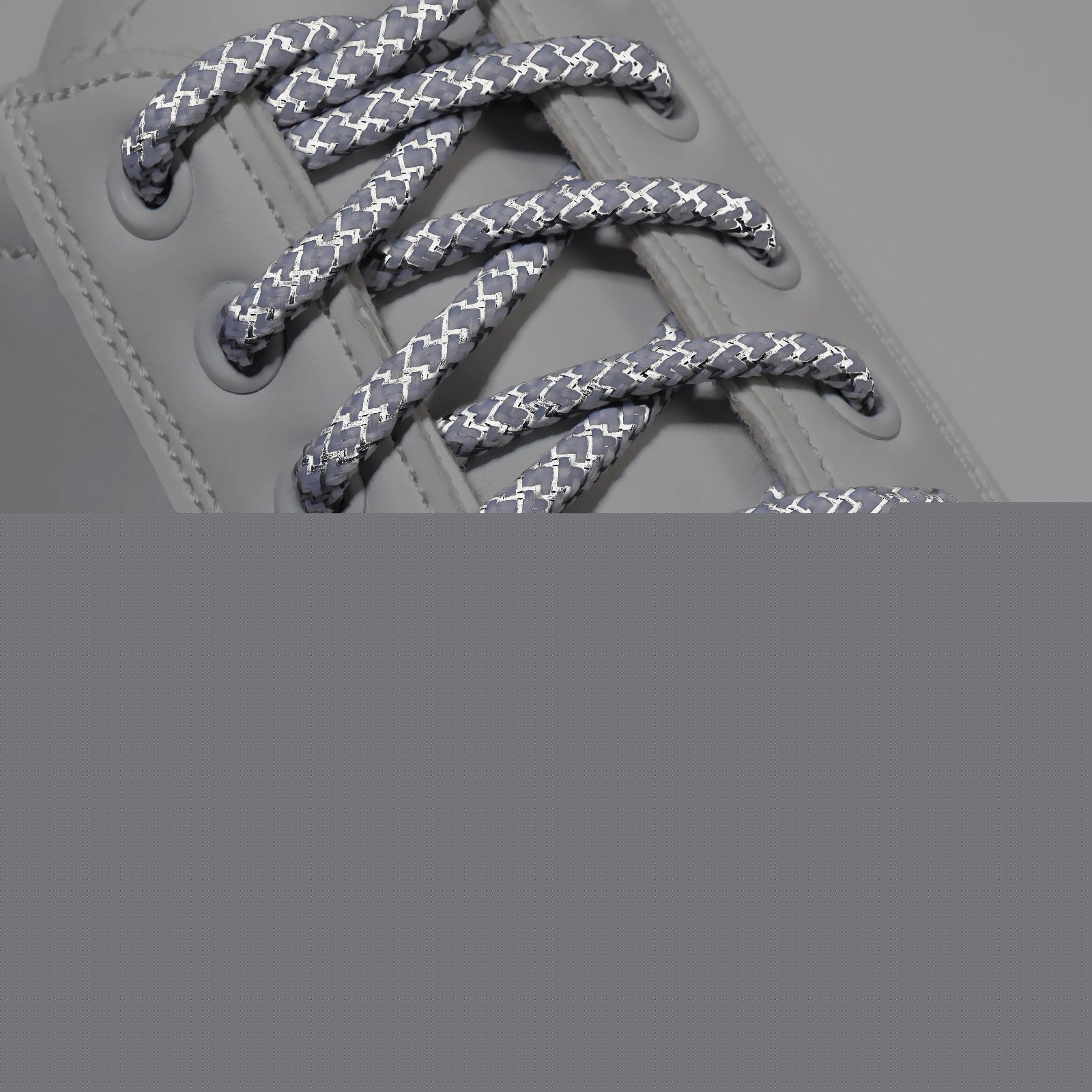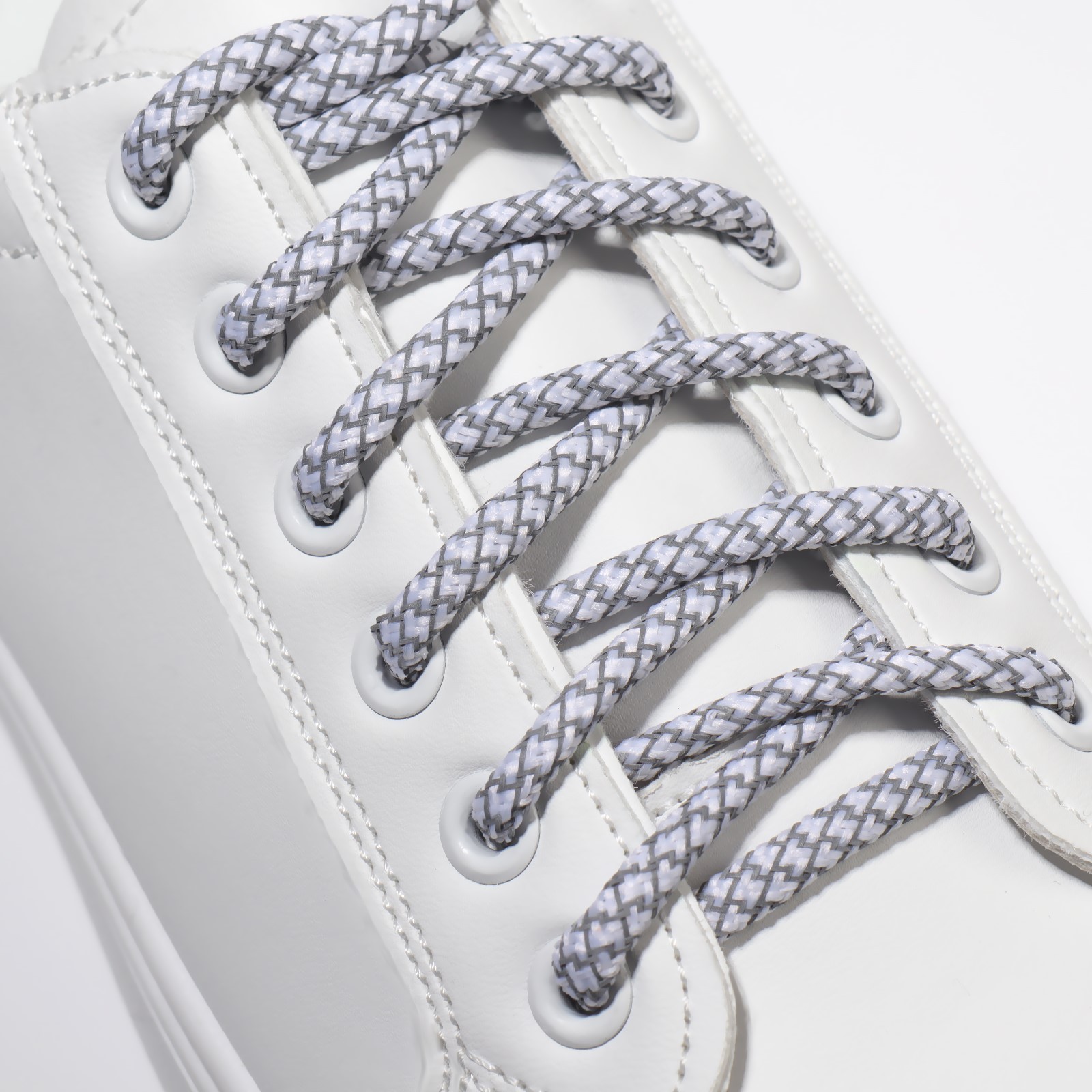 Шнурки для обуви, пара, круглые, со светоотражающим узором, D = 6 мм, 120 см, цвет белый/серый