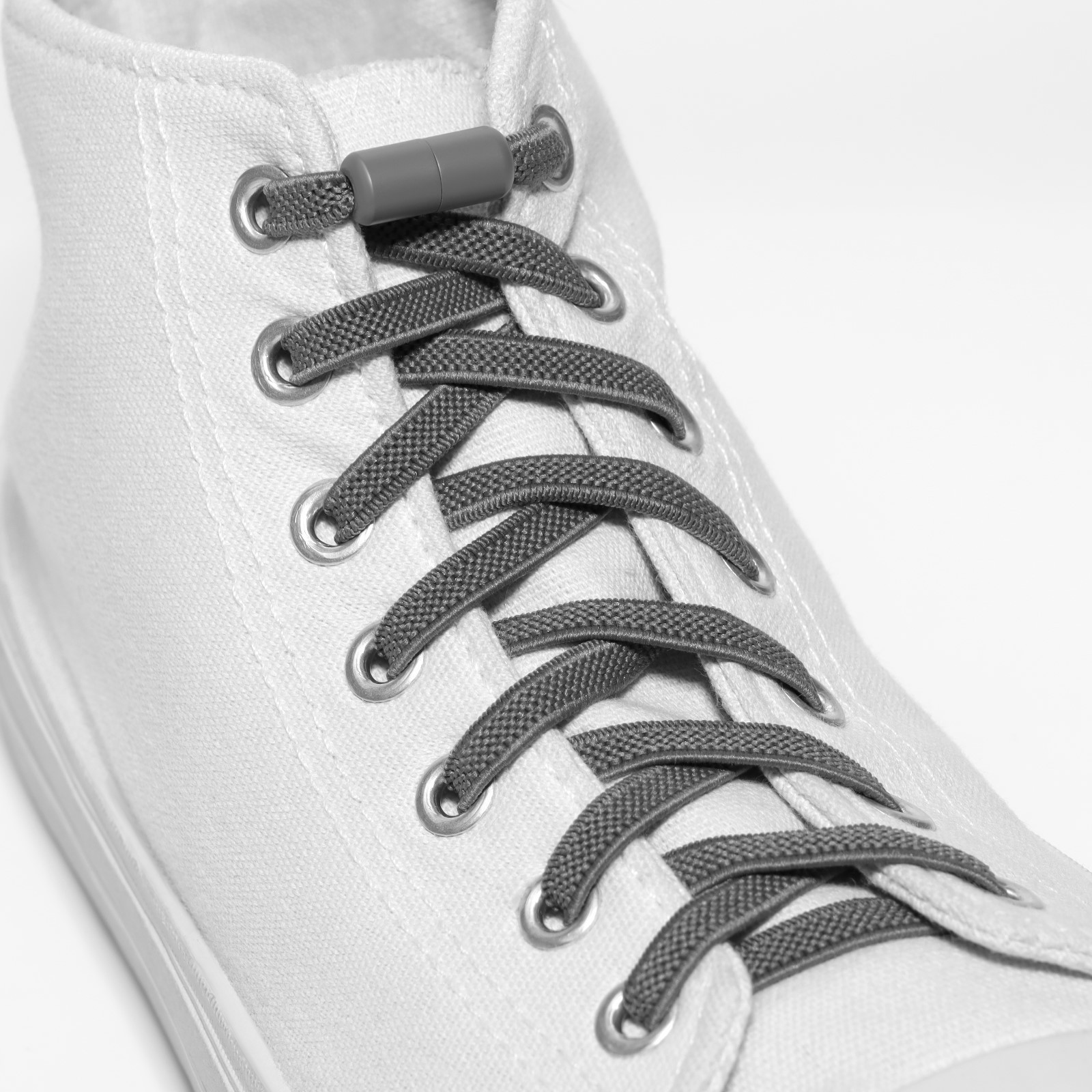 Шнурки для обуви, пара, плоские, с фиксатором, эластичные, 6 мм, 100 см, цвет серый