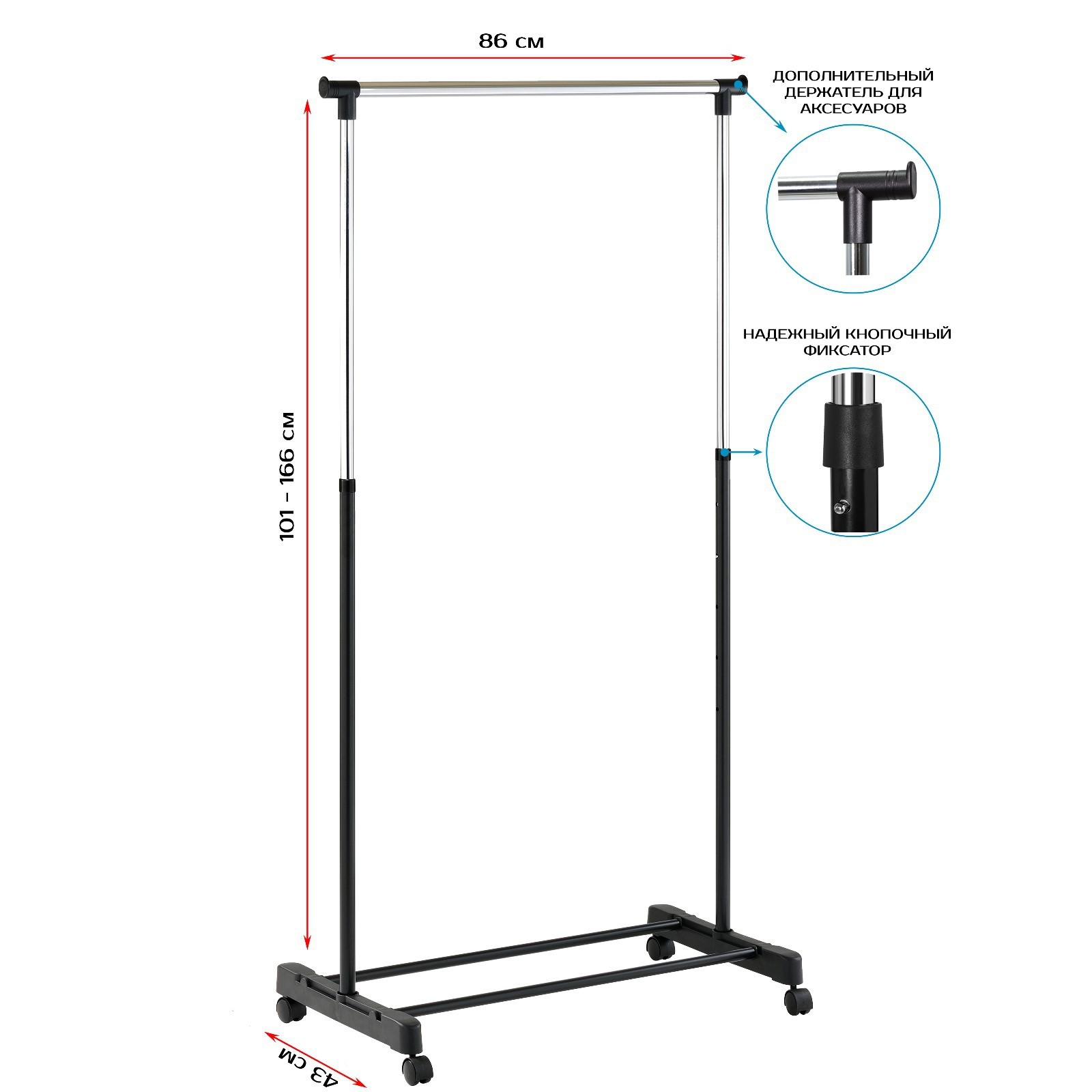 Стойка для одежды Classic, 860 X 425 X 1010(1660) мм, на колёсиках