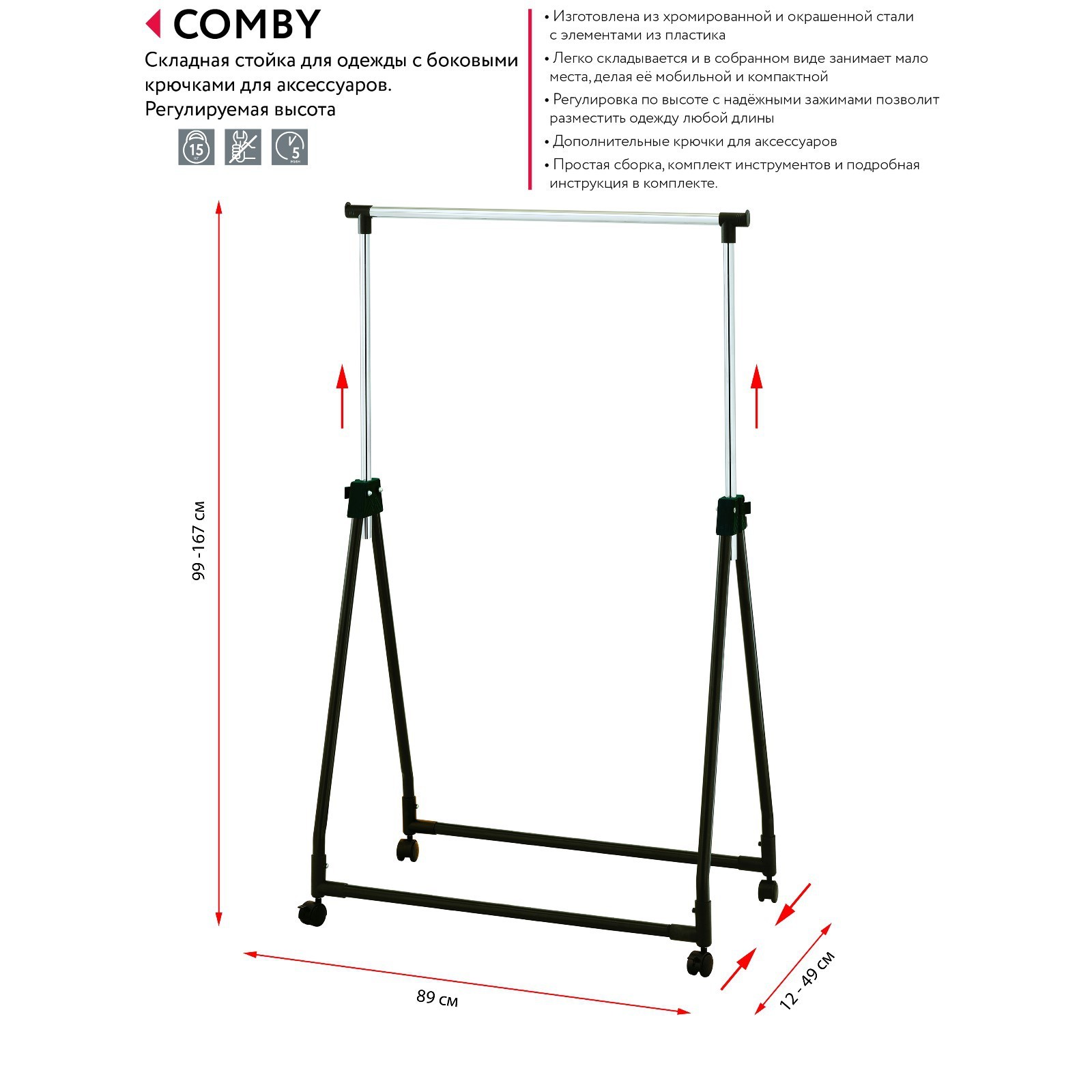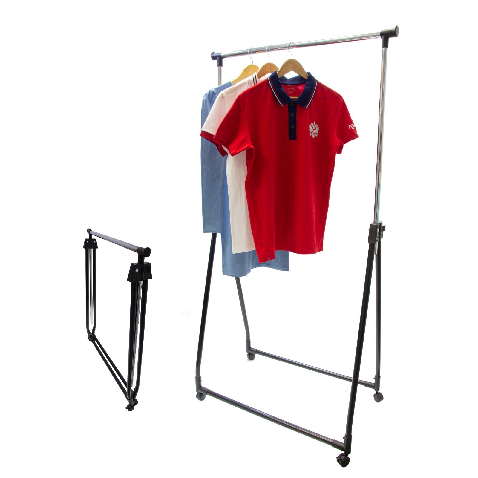 Складная стойка для одежды Comby, 890 X 490 X 990(1670) мм, на колёсиках