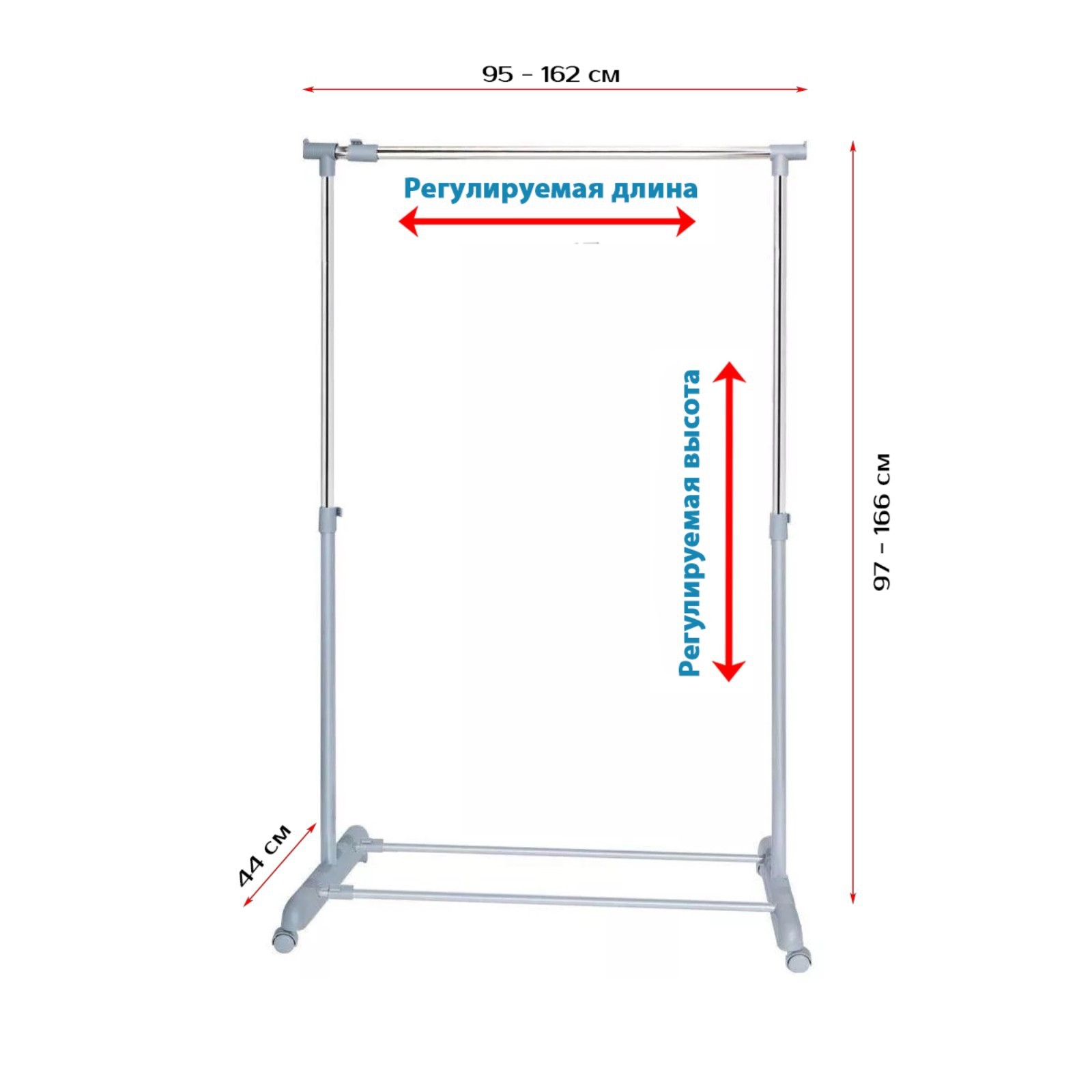 Стойка для одежды Neil, 950(1500) X 440 X 965(1660) мм, раздвижная, на колёсиках