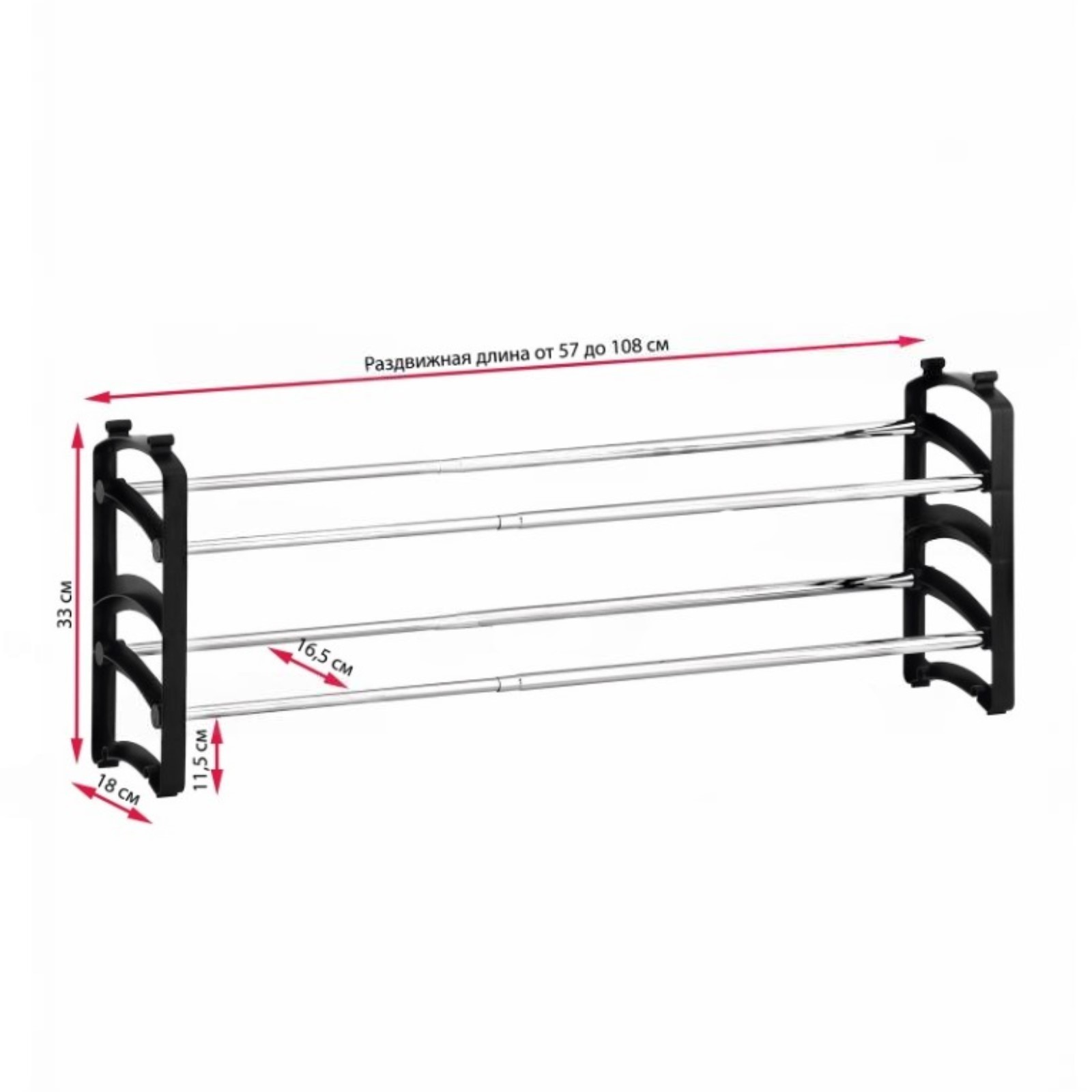 Этажерка для обуви Duo, 570(1080) X 180 X 330 мм, 2-х ярусная, раздвижная