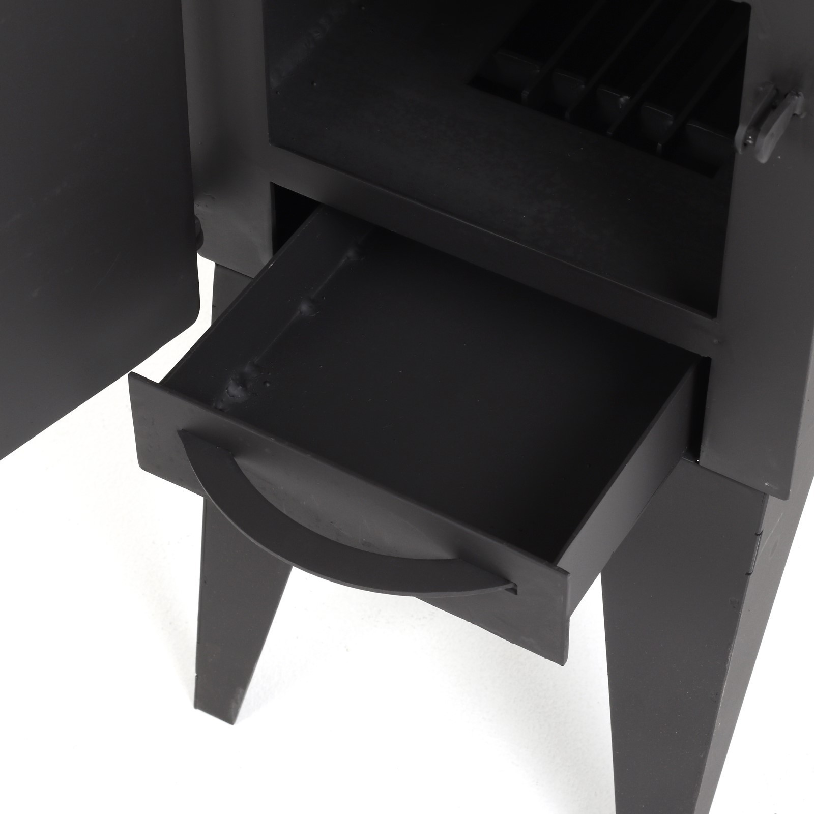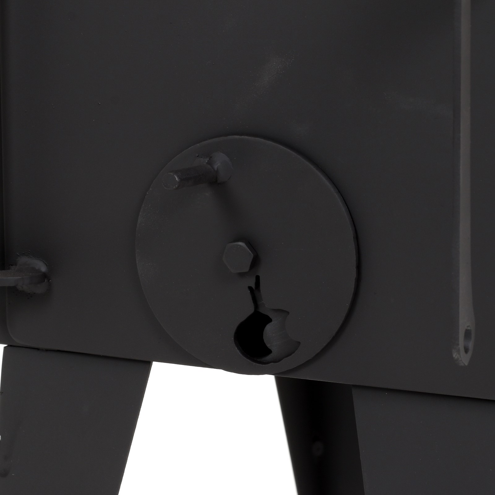 Материал: сталь толщиной 3ммКонструкция топки: закрытая – Д21*Ш25*Г34 смДымоход диаметром 10 смЗольник выдвижной – Ш15*В4*Д30смКонструкция топки закрытая, колосник несъёмныйВес 16. 6 кг.