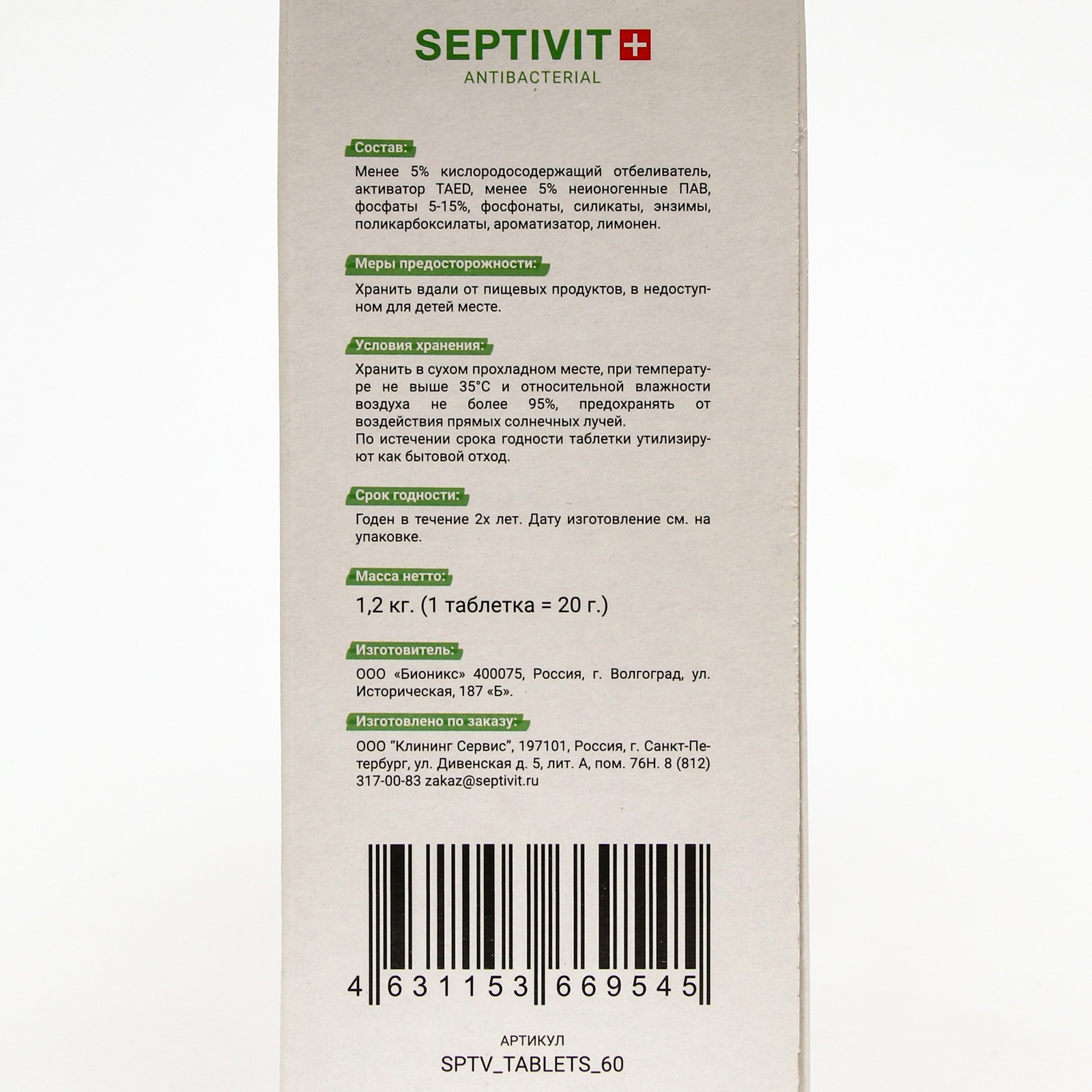 Таблетки для посудомоечных машин Septivit, 60 шт.