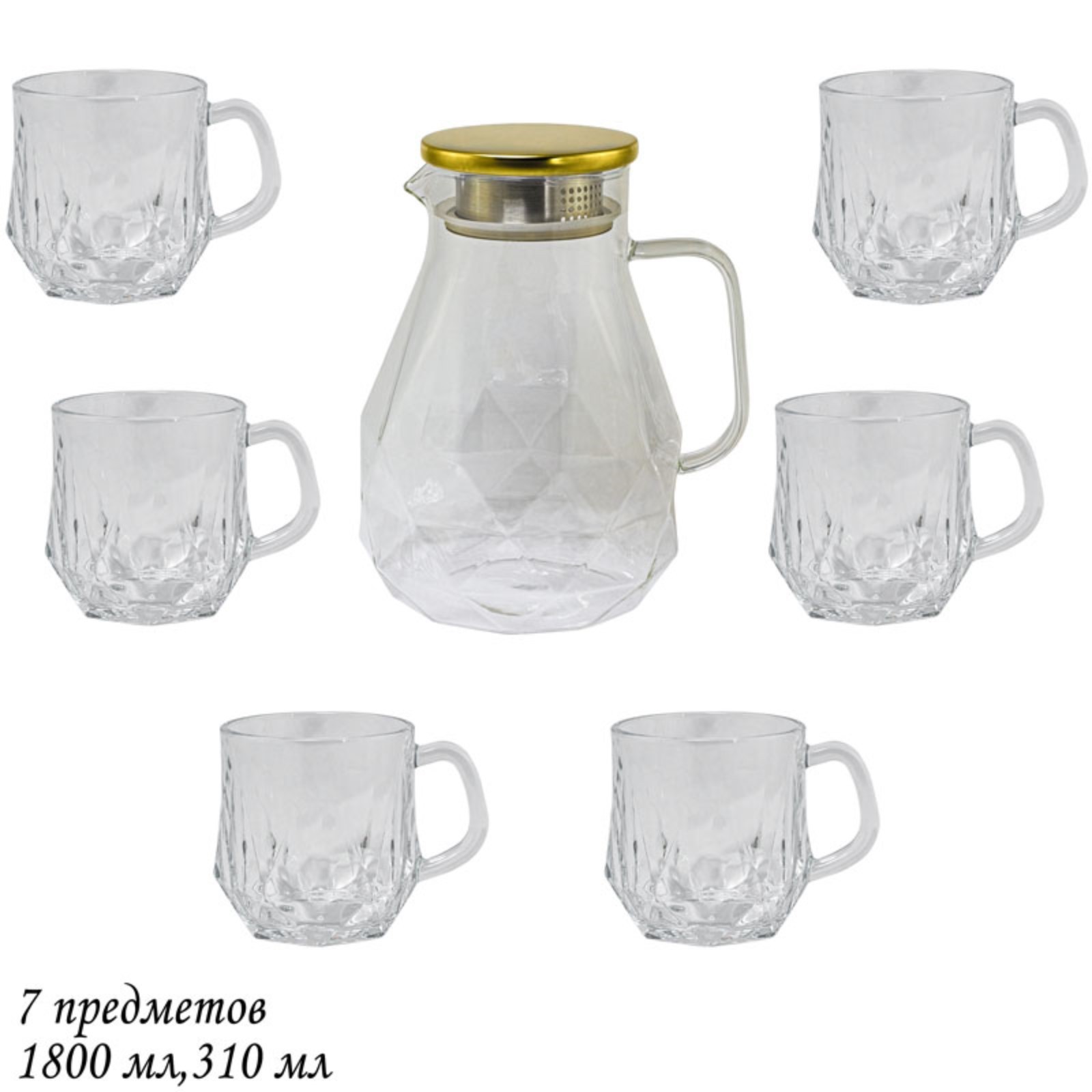 Набор из кувшина-заварника и кружек Lenardi «стеклянные подарки», цвет прозрачный