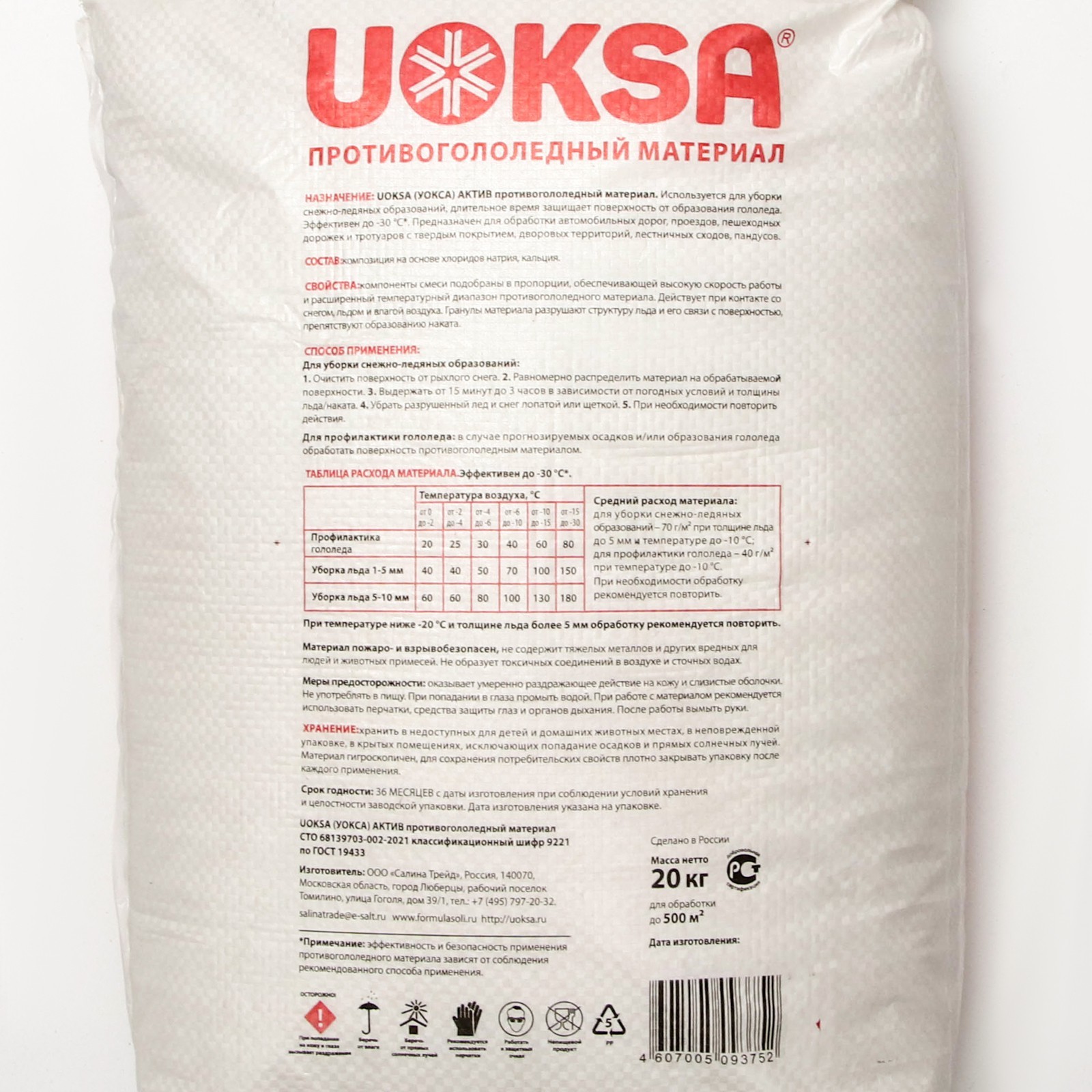 Противогололёдный материал Uoksa актив -30 с, мешок, 20 кг