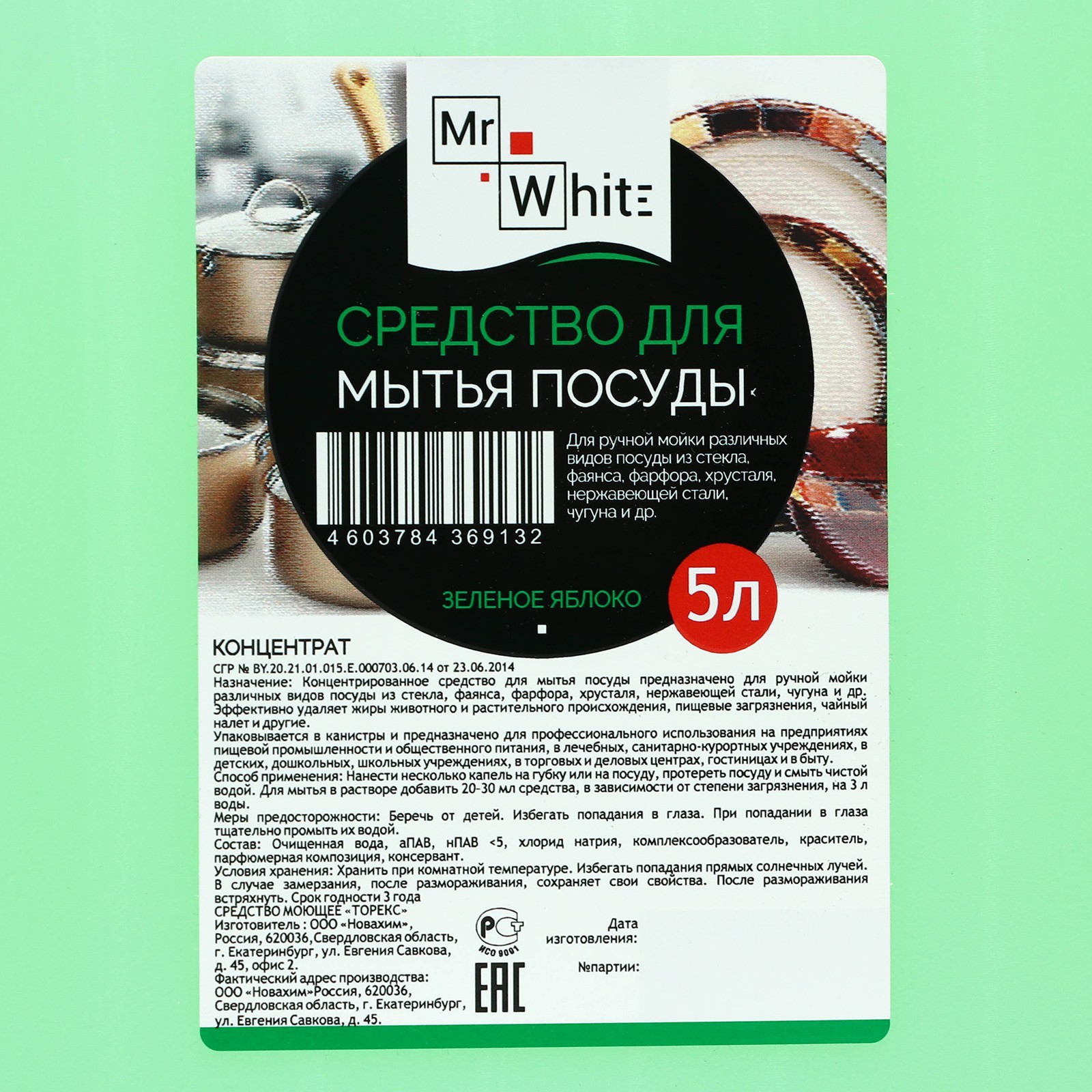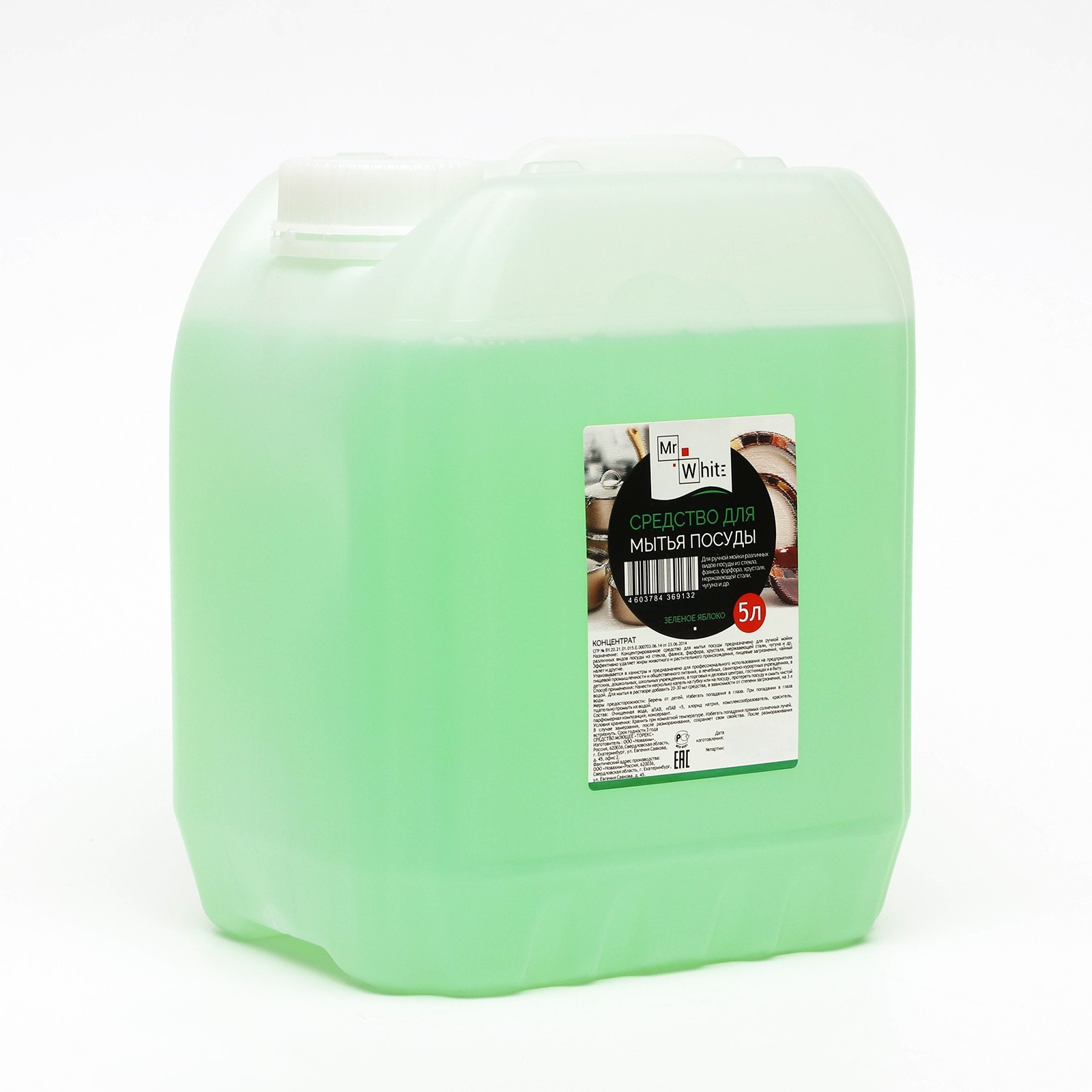 Средство для мытья посуды Mr.White "зеленое яблоко", концентрат, 5 л
