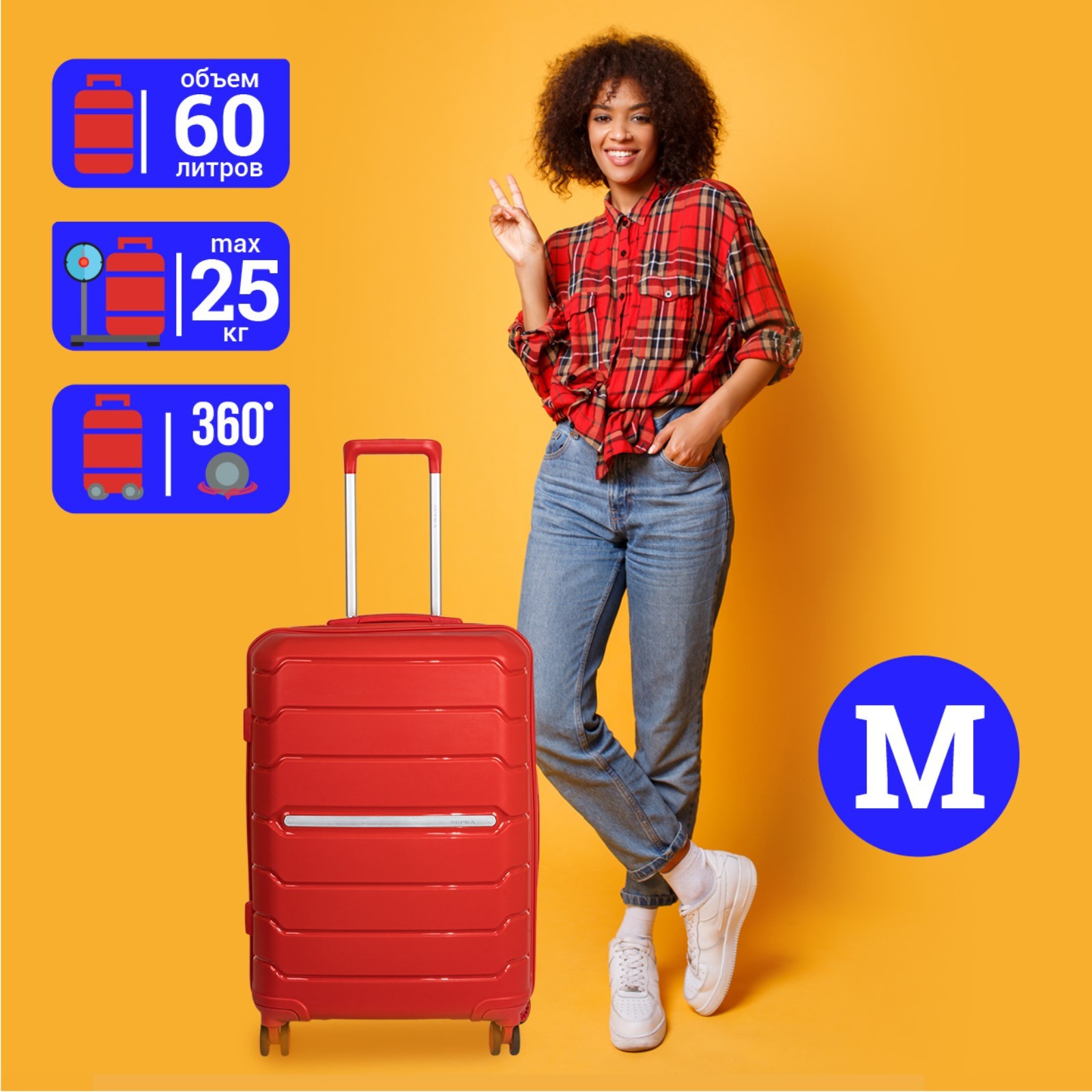 Чемодан средний 24 " на молнии, цвет красный. Цвет: Красный Количество колёс: 4 Возраст: Любой Материал: Текстиль Материал: Пластик Размер: 24" (M) Дополнительный объём: Без увеличения Вид пластика: Полипропилен  развернуть описание ▼