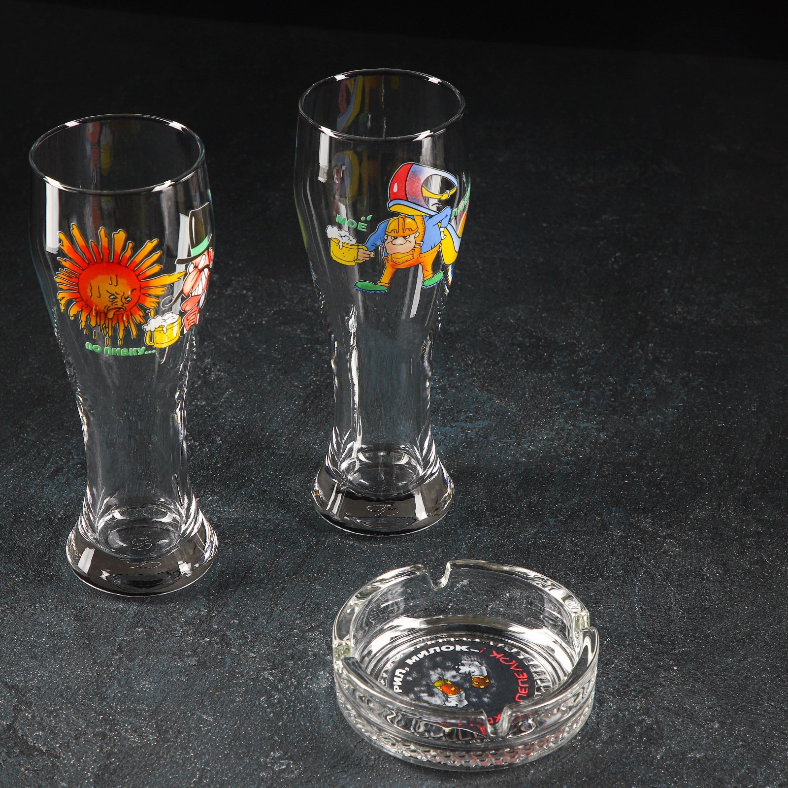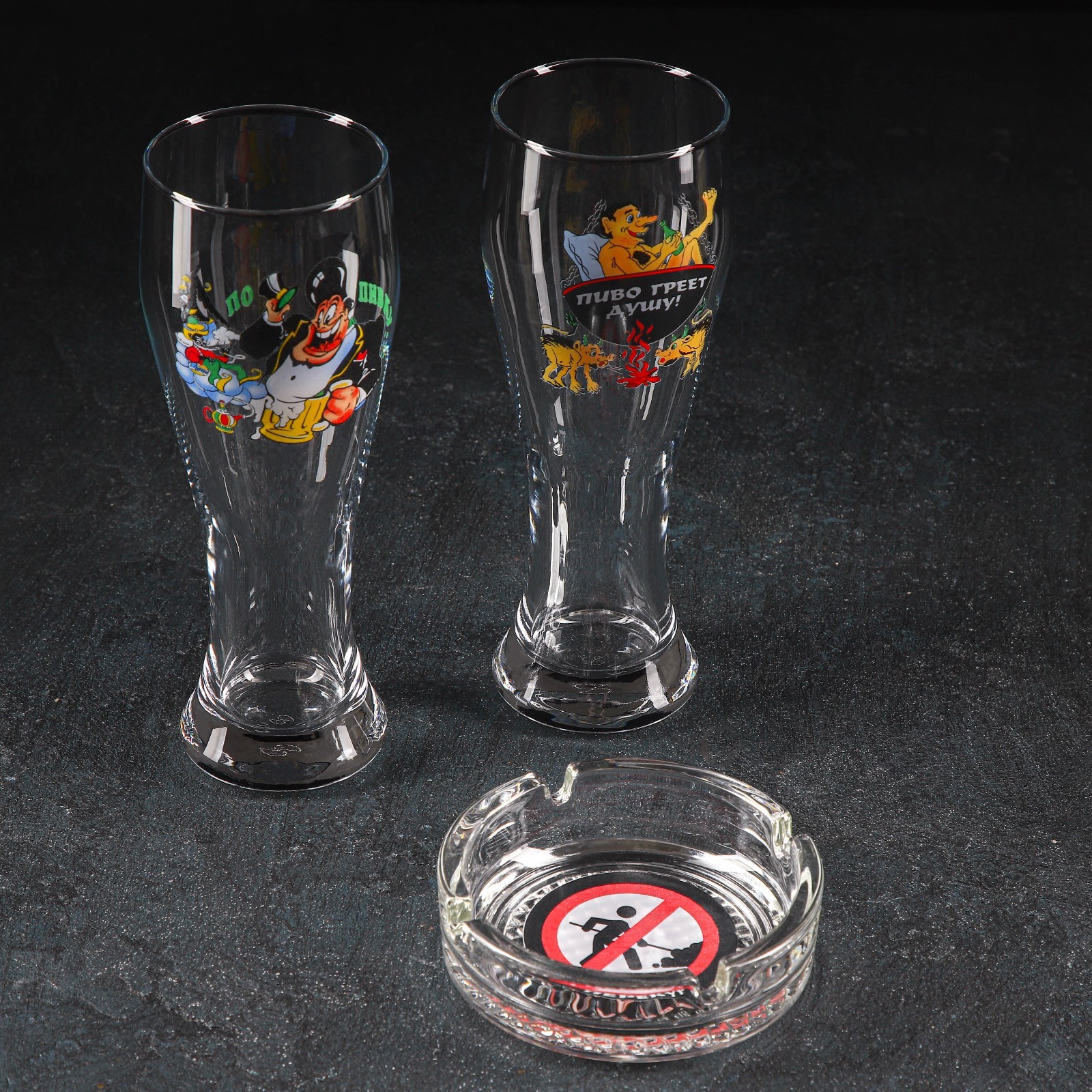 Набор «приколы», 2 бокала для пива 300 мл, пепельница