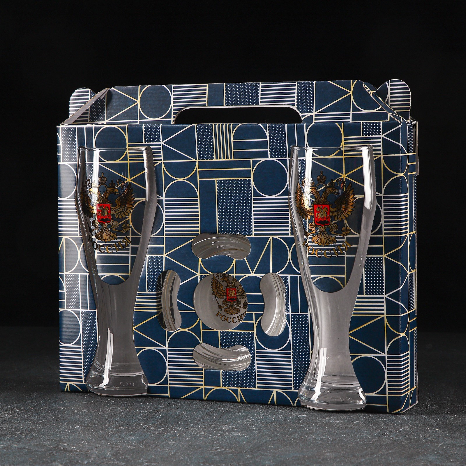 Набор «золотой герб россии», 2 бокала для пива 300 мл, пепельница
