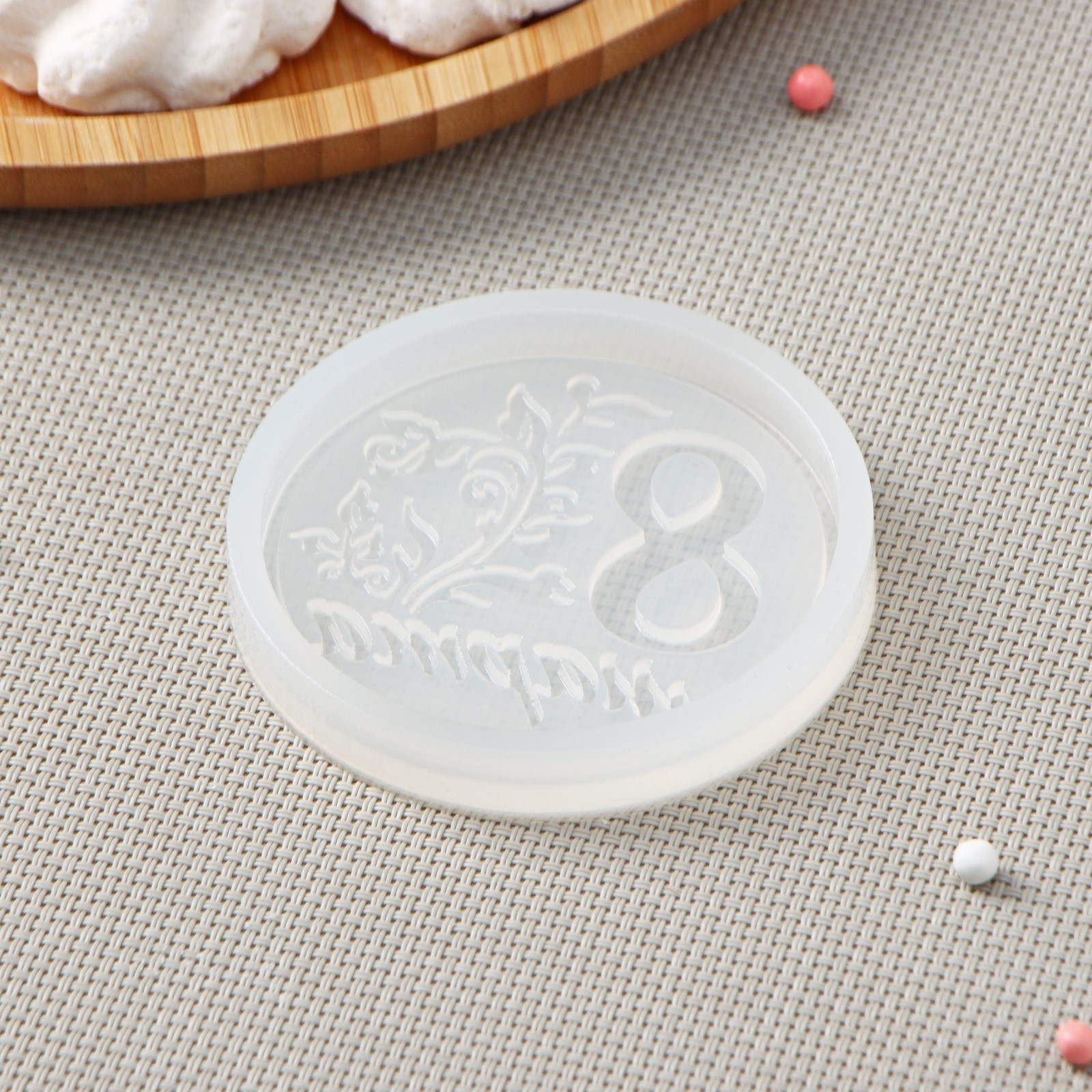 Силиконовая форма «8 марта», d=7 см, цвет прозрачный. Форма для шоколадных, карамельных, зефирных, мыльных и восковых фигур. Силиконовая форма выполнена из безопасного пищевого силикона белого цвета и подходит для работы с изомальтом. Рабочий интервал температур от -30 С° до 250 С°. Перед применением следует помыть и высушить форму. Хранить форму следует в сухом виде, вдали от солнечных лучей. Цвет: Прозрачный Форма: Круглая parts count: 0 В наборе, шт.: 1 tnved: 3926909709 Материал: Силикон Тематика: Праздничная тематика Тематика: Женская тематика Температурное ограничение: Нет Можно мыть в посудомоечной машине: Нет Вид: Кондитерские молды Форма: Круг, шар, цилиндр  развернуть описание ▼