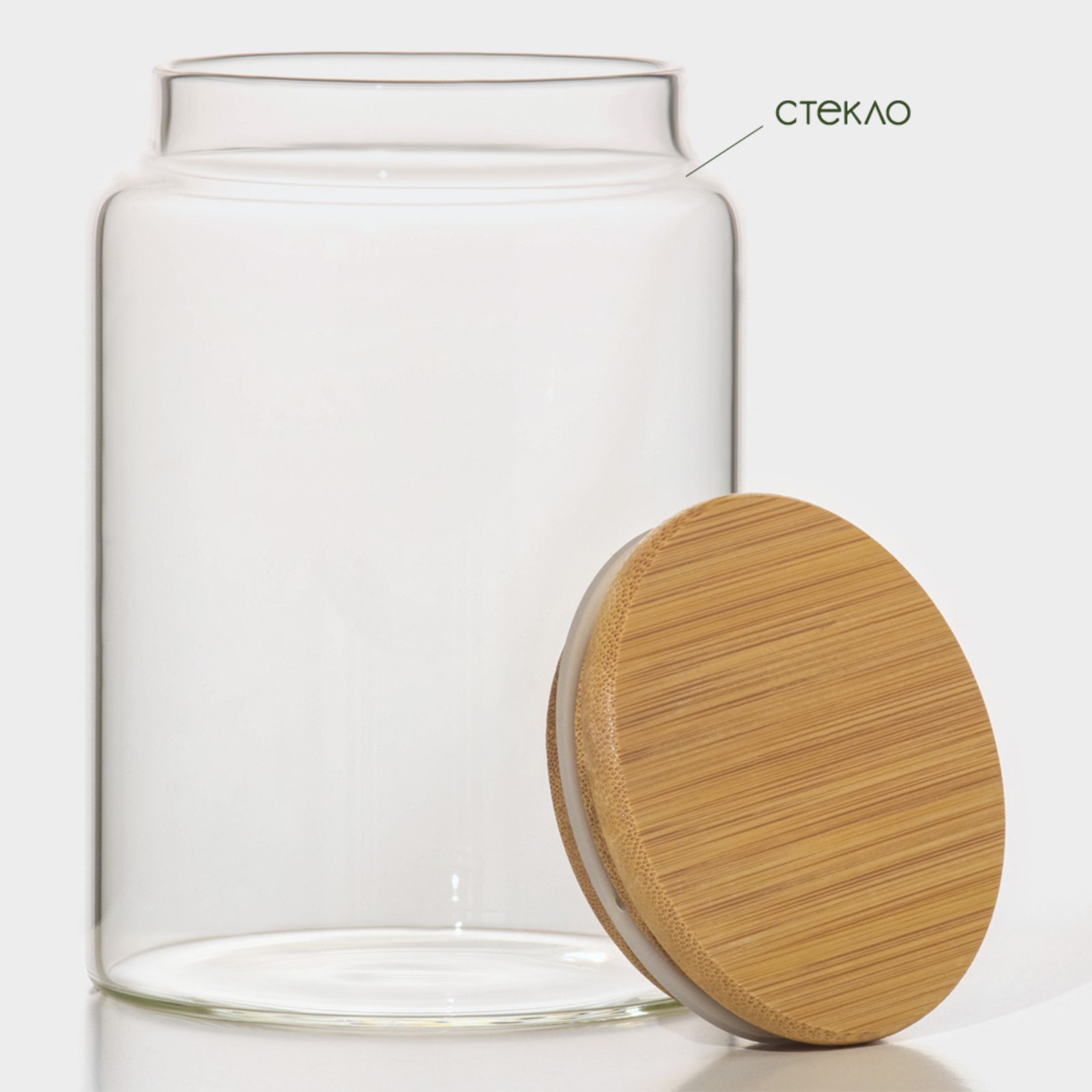 Набор банок стеклянных для сыпучих продуктов с бамбуковой крышкой Bellatenero «эко», 3 предмета: 350/800/1200 мл