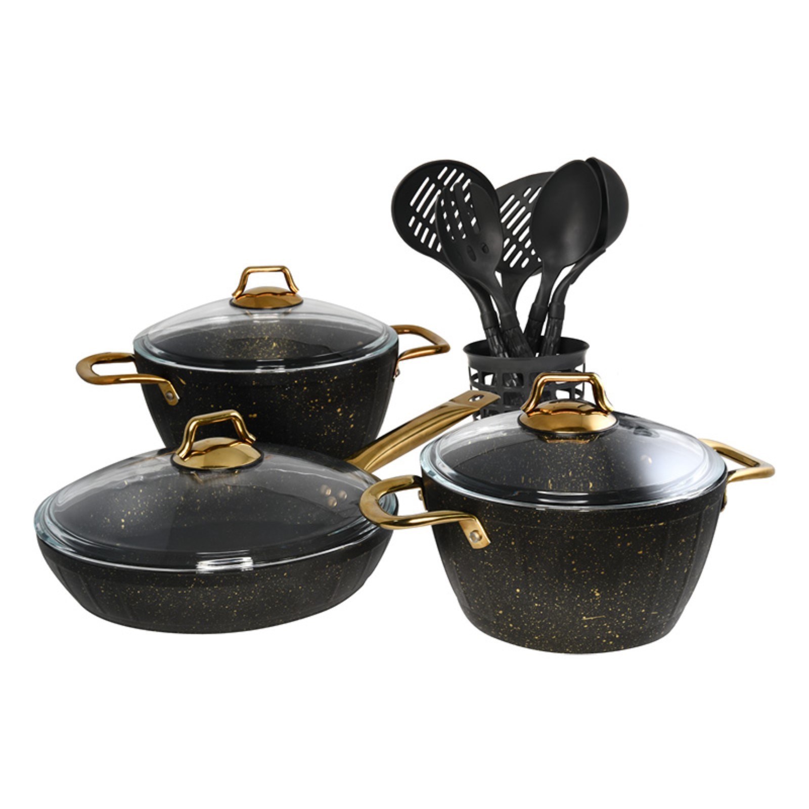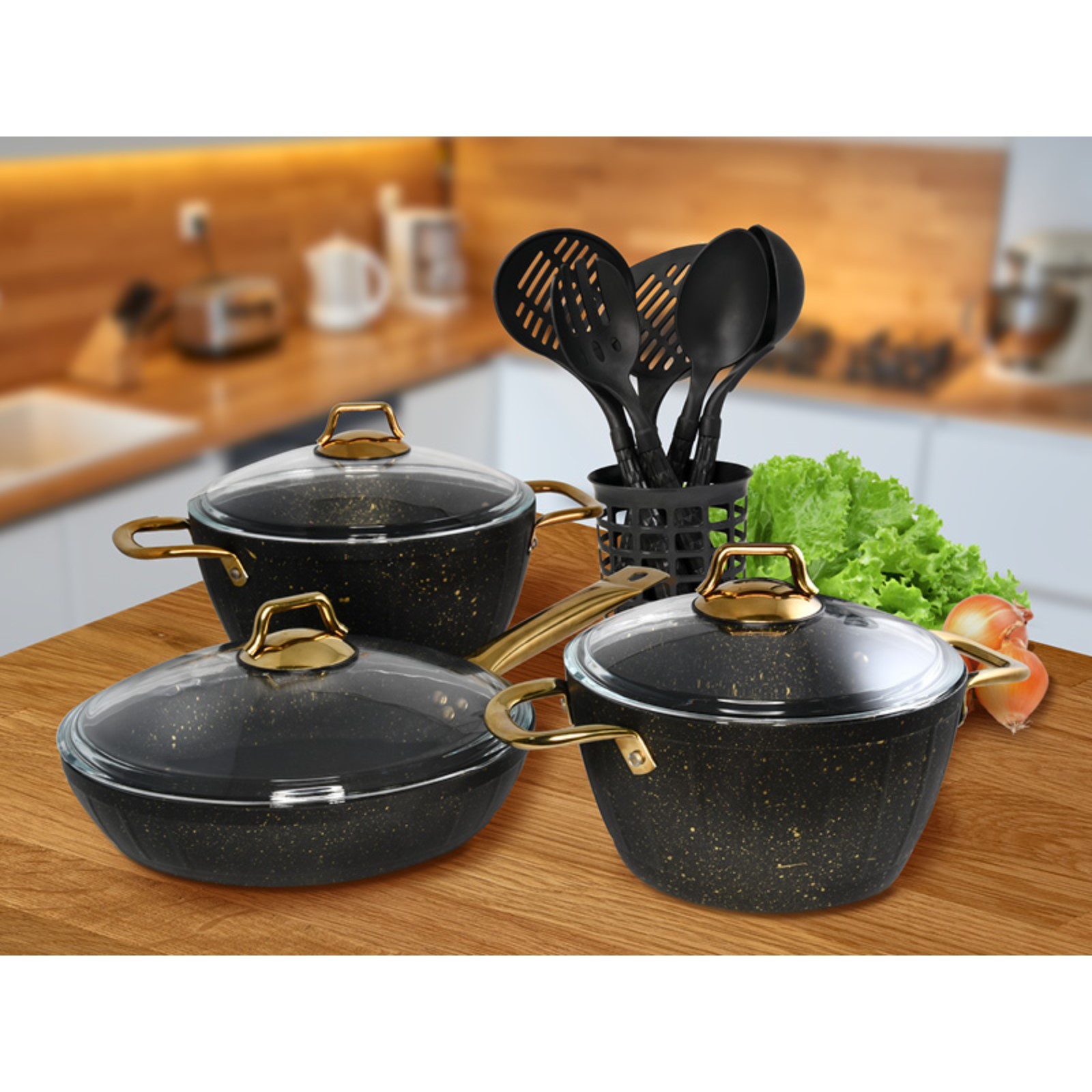 Набор посуды из 3 предметов: 2 кастрюли, сковорода, цвет чёрный, 2.8/4.3 л/26 см