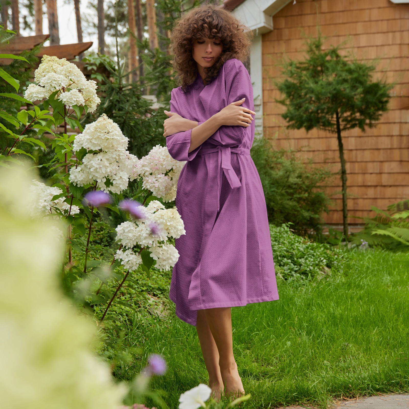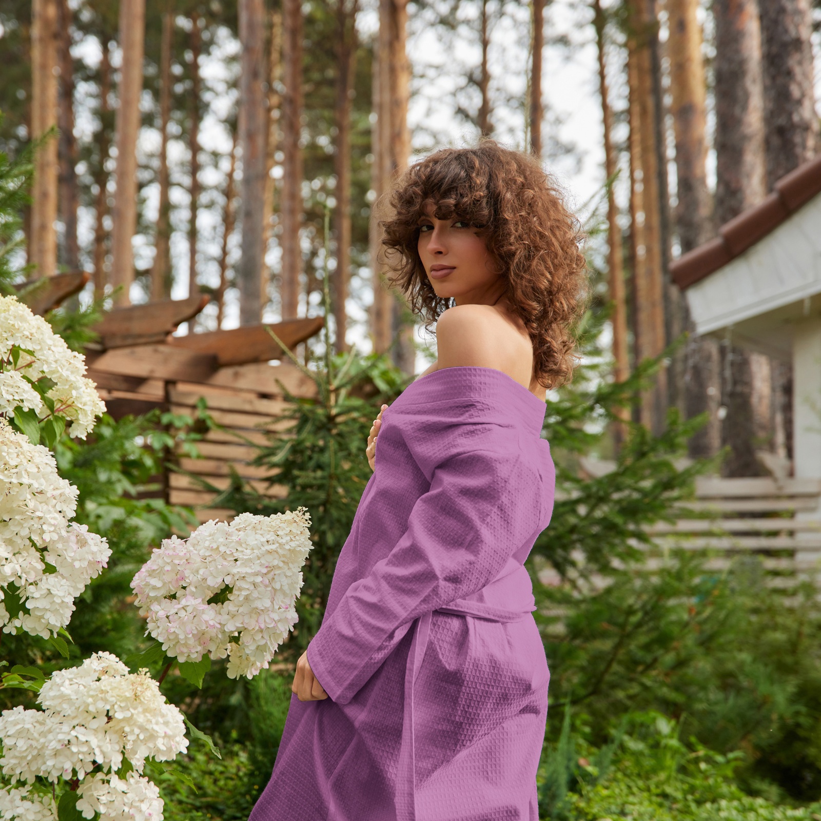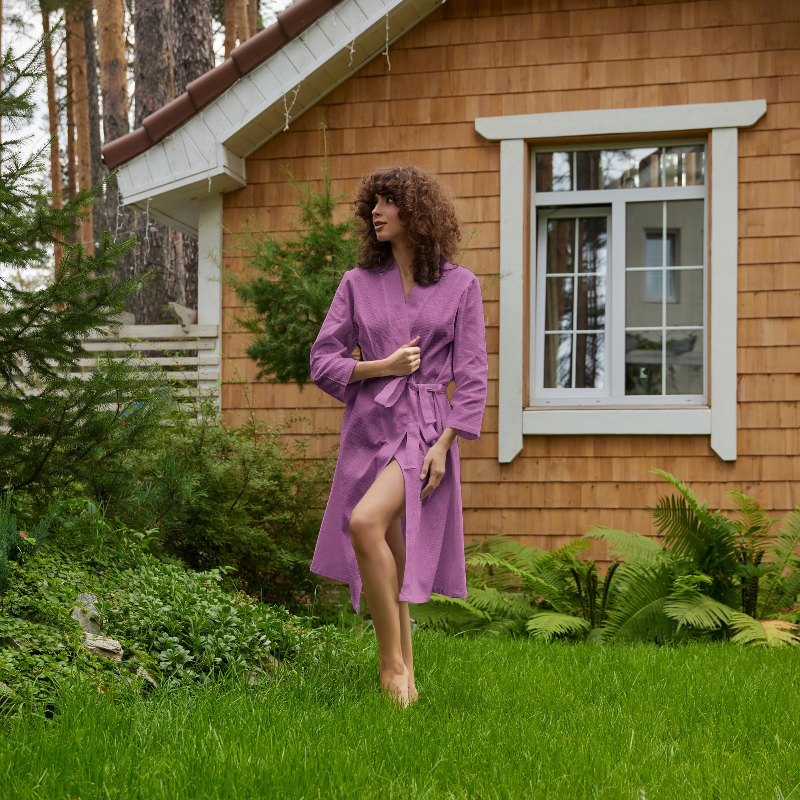 Халат вафельный женский экономь и я рукав 3/4 цвет лаванда, размер 42-44, 100% хлопок, 200 г/м2