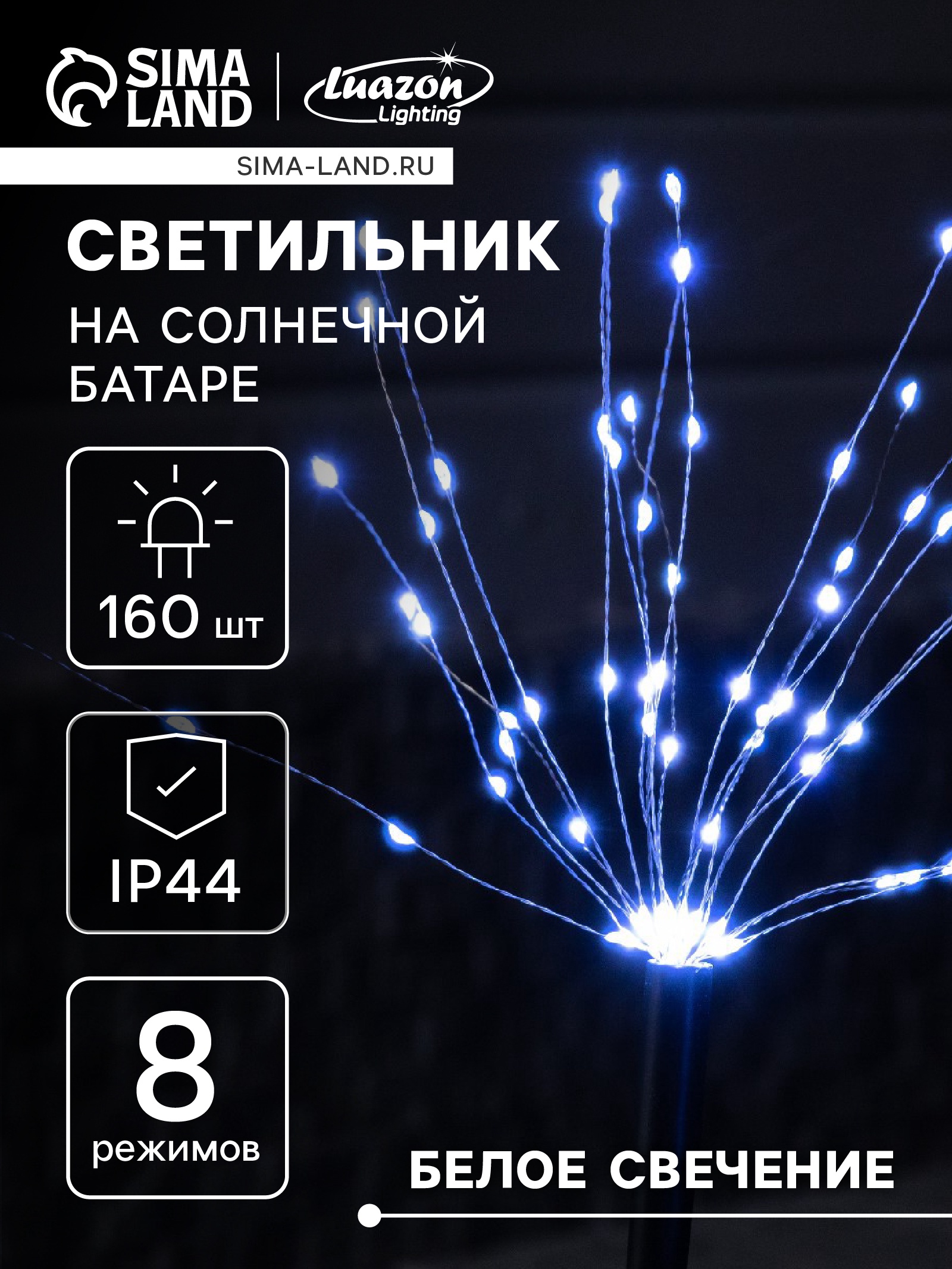 Садовый светильник «одуванчики», уличный, на солнечной батарее, 2 шт, 78 см, 160 led, свечение белое. Цвет свечения:Белый|Количество ламп:160|Цоколь:Встроенные LED|Гарантийный срок, мес.:12|Материал:Металл|Материал:Пластик|Степень защиты:IP44|Материал основания:Металл|Материал основания:Пластик|Цвет корпуса:Хромированный|Температурный режим:от -10 до +35 °С|Страна:Китай  развернуть описание ▼