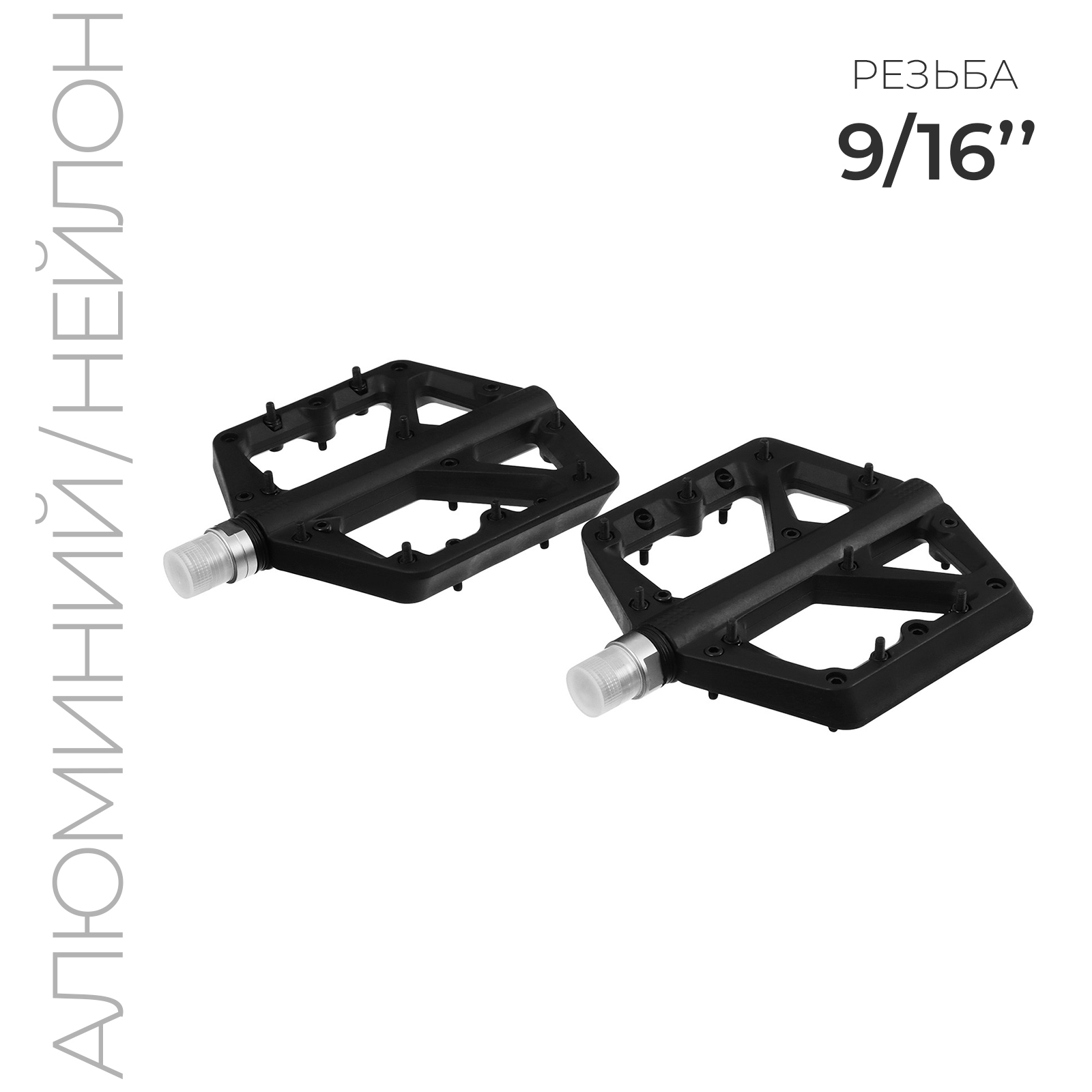 Педали 9/16" с подшипником, нейлон, съёмные шипы, цвет чёрный