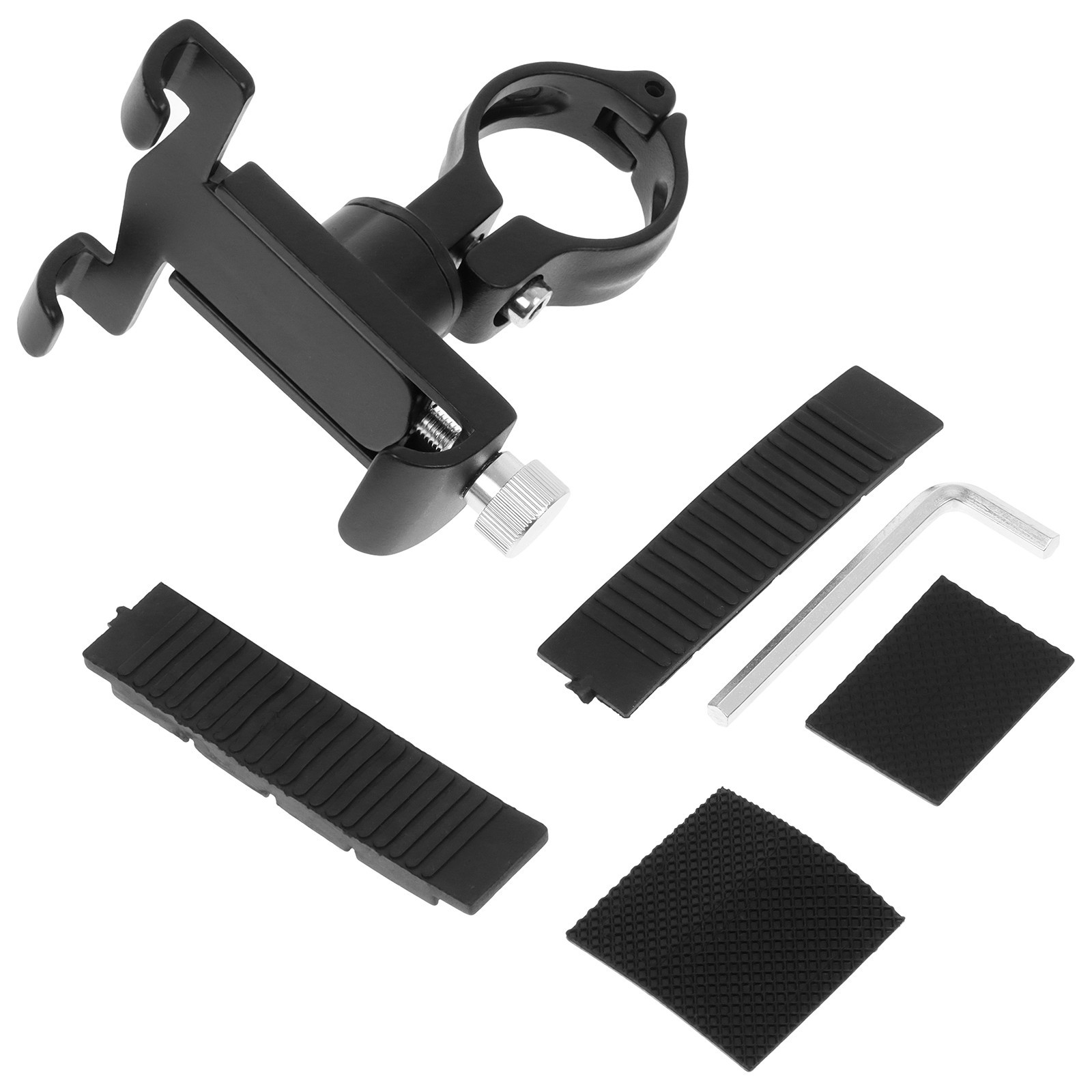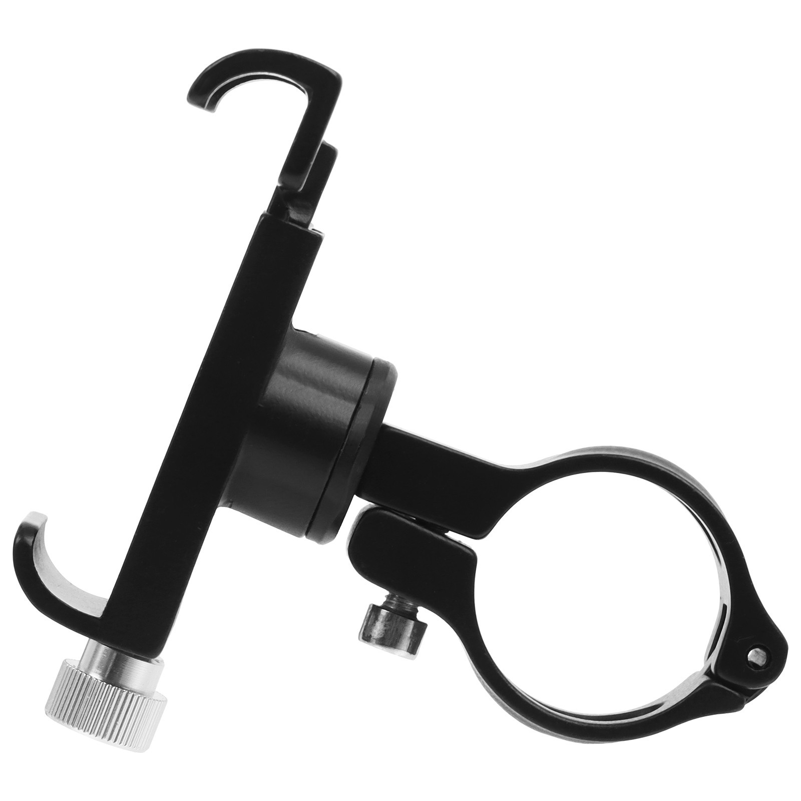 Держатель для телефона на руль, цвет чёрный. Держатель предназначен для установки на руль велосипеда, самоката, детской коляски. В комплекте есть уплотнительные резиновые прокладки для разных диаметров руля. Цвет: Чёрный Материал: Пластик  развернуть описание ▼